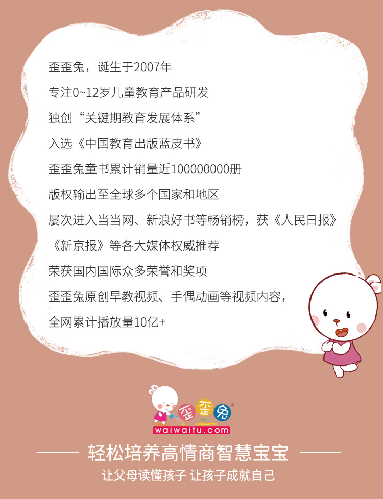 - 歪歪兔,诞生于2007年,专注0-12岁儿童教育产品研发。原创童书销量逾1亿册,音视频播放总量10亿+。