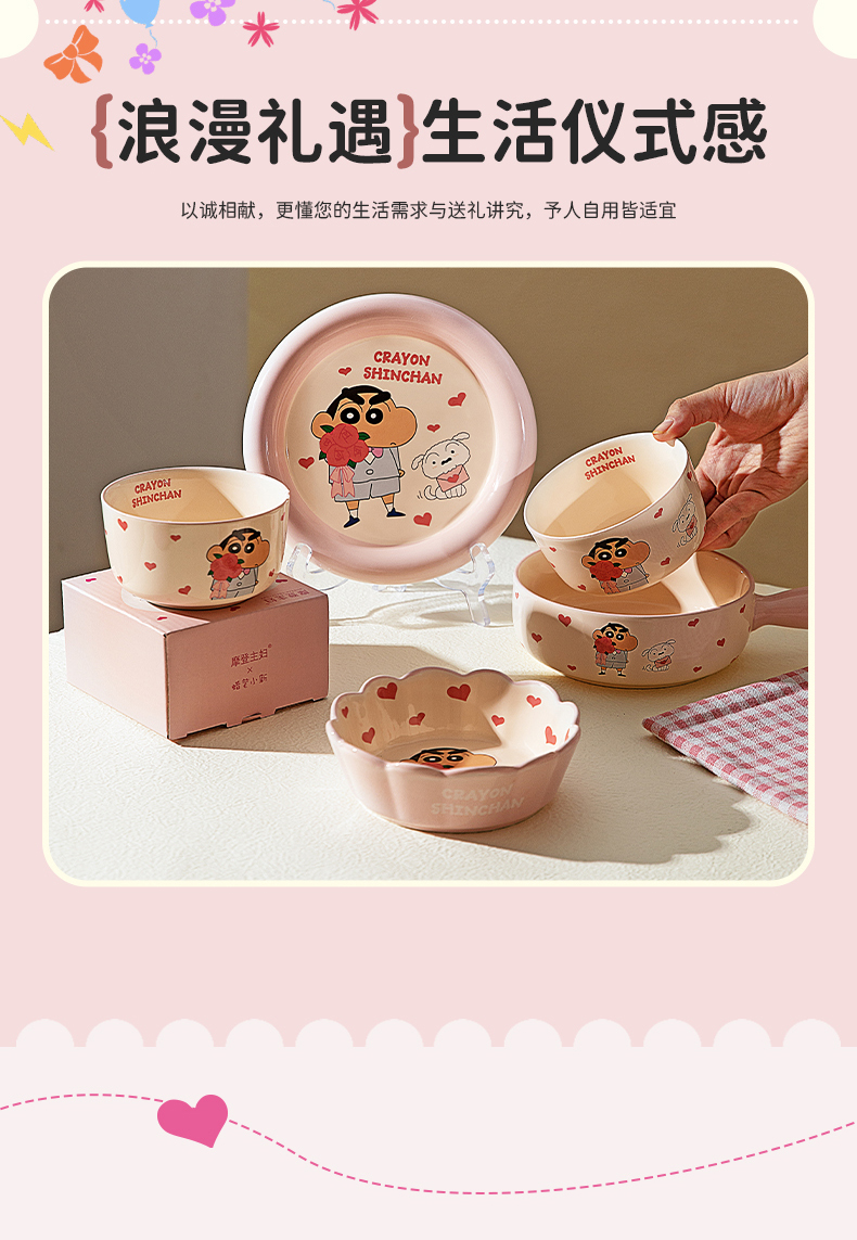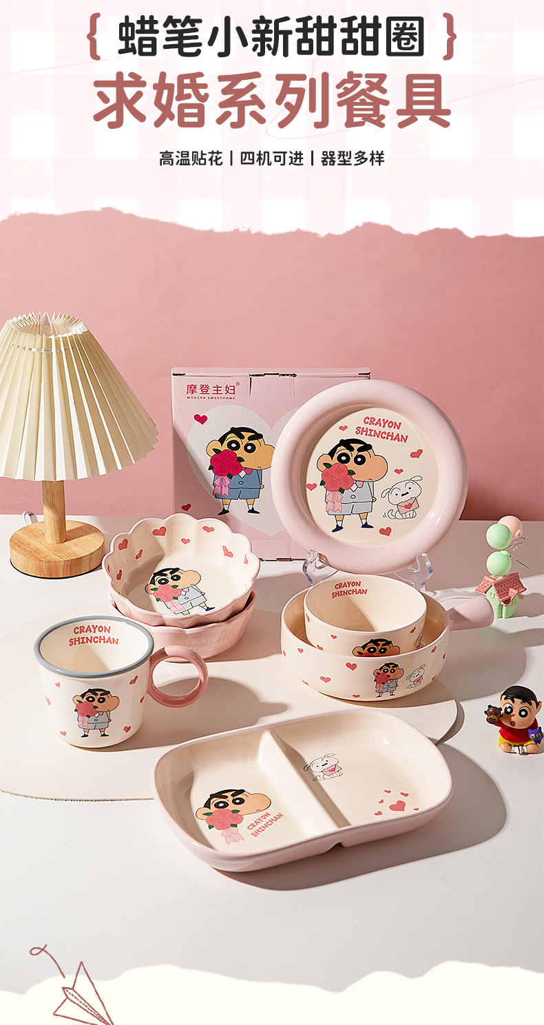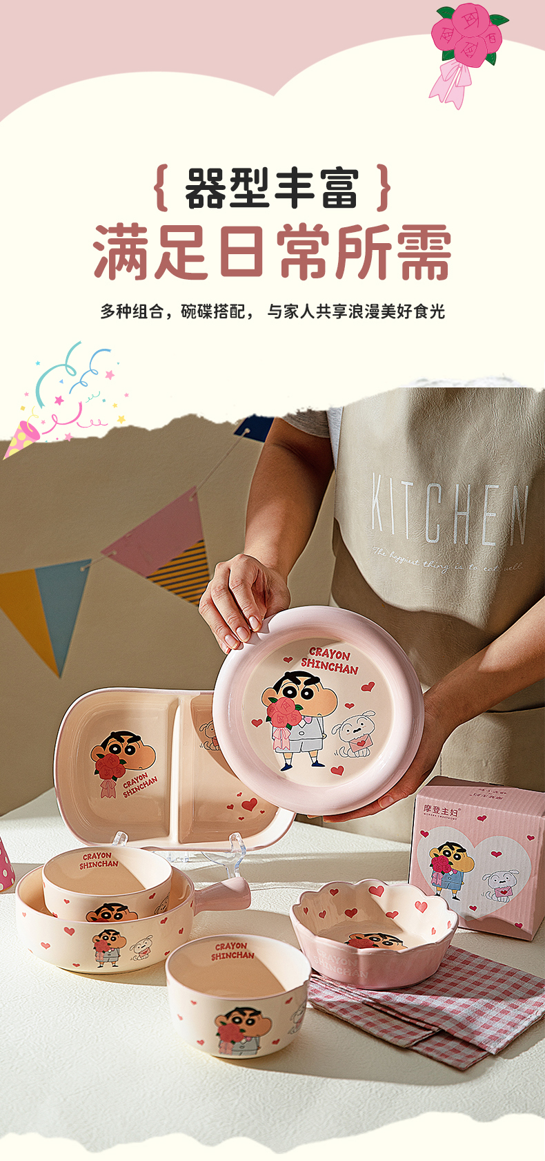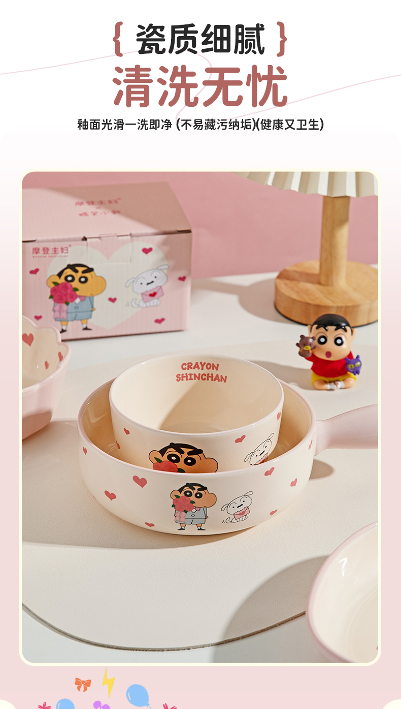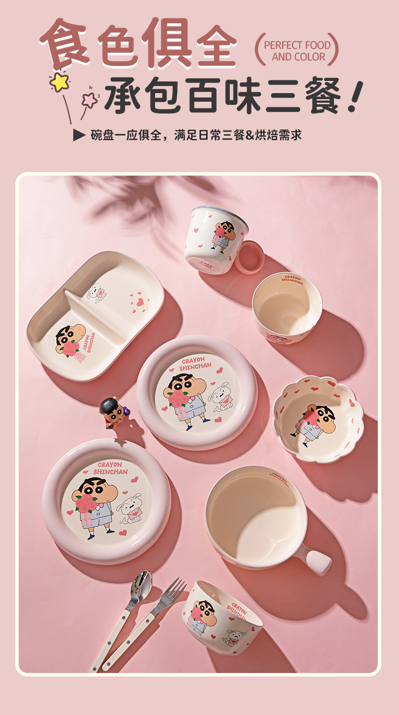 摩登主妇&蜡笔小新 可爱儿童碗盘子餐具碗具陶瓷饭碗家用餐盘