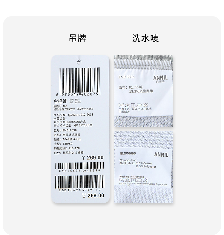 男女童全腰针织单裤春季新款安奈儿童装EM616696