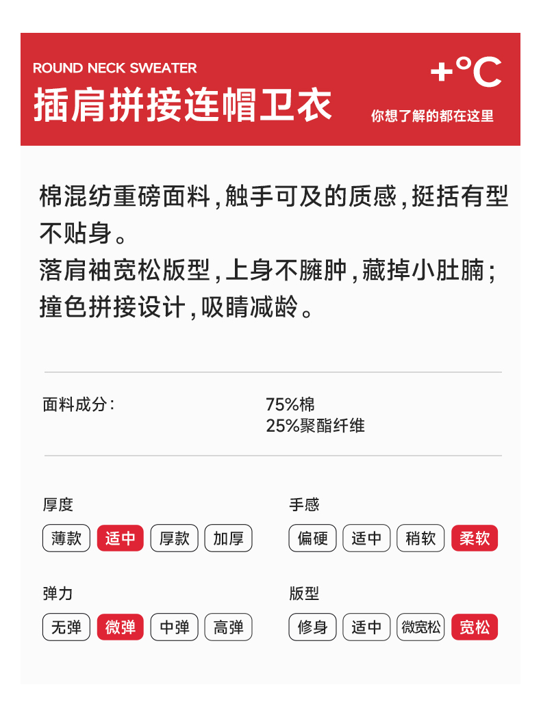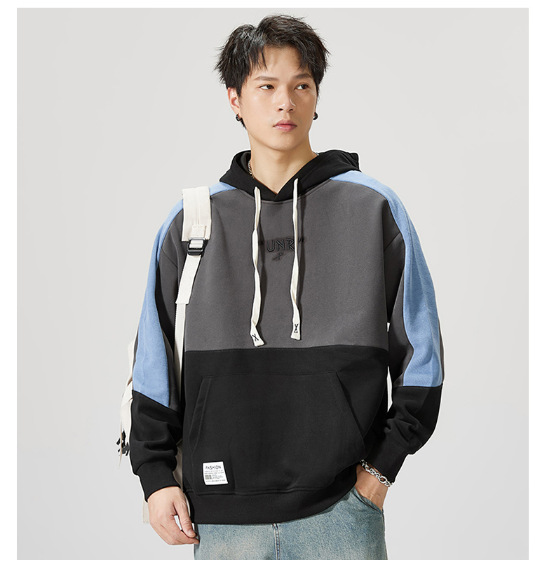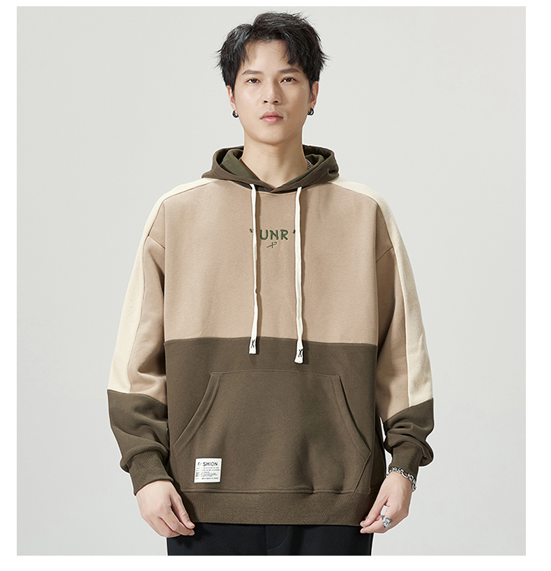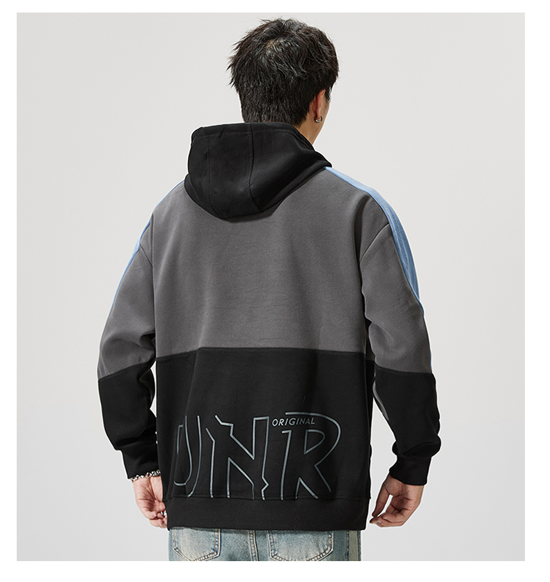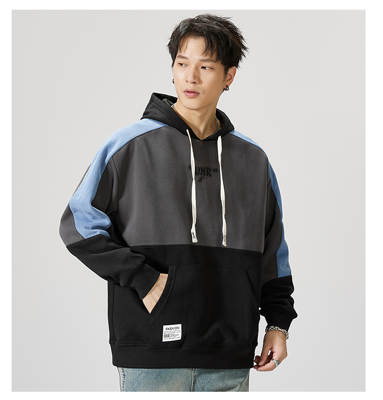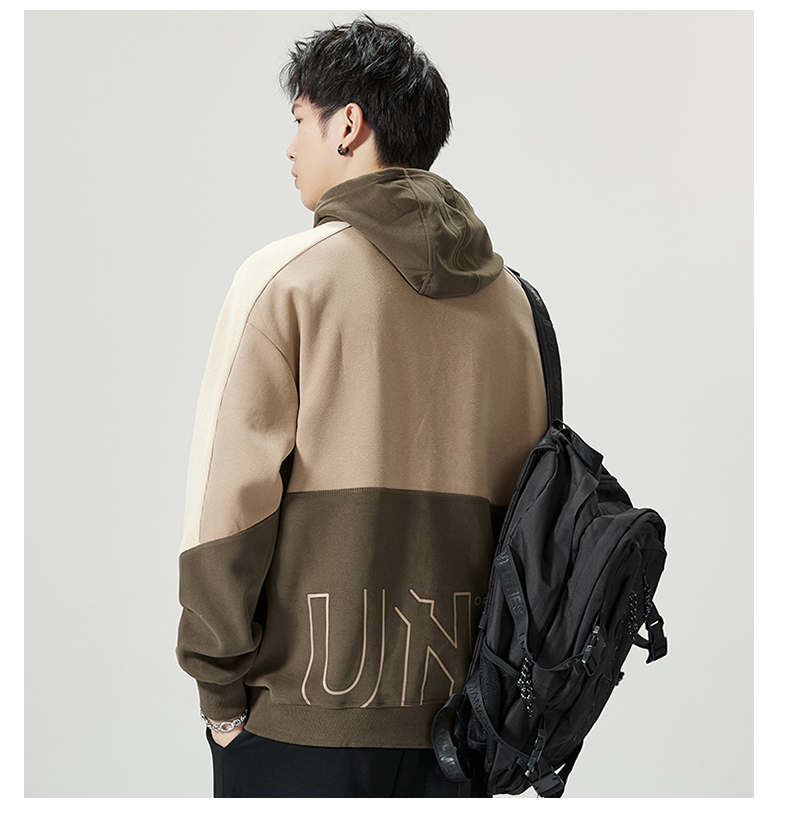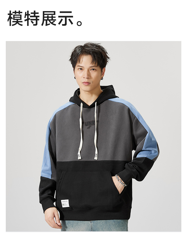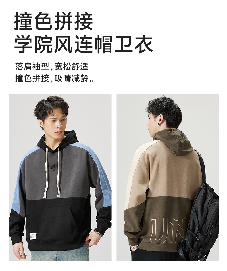 【圈】【重磅】【新款DQ】大依优型大码男装连帽卫衣长袖撞色插肩袖潮胖简约宽松休闲男士打底上衣