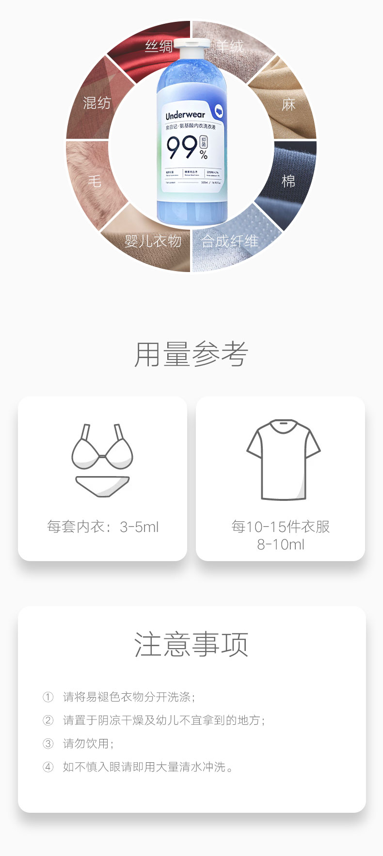 泉日记氨基酸内衣洗衣液 洗内衣内裤专用女士去血渍贴身衣物洁净护衣液 500ml/瓶