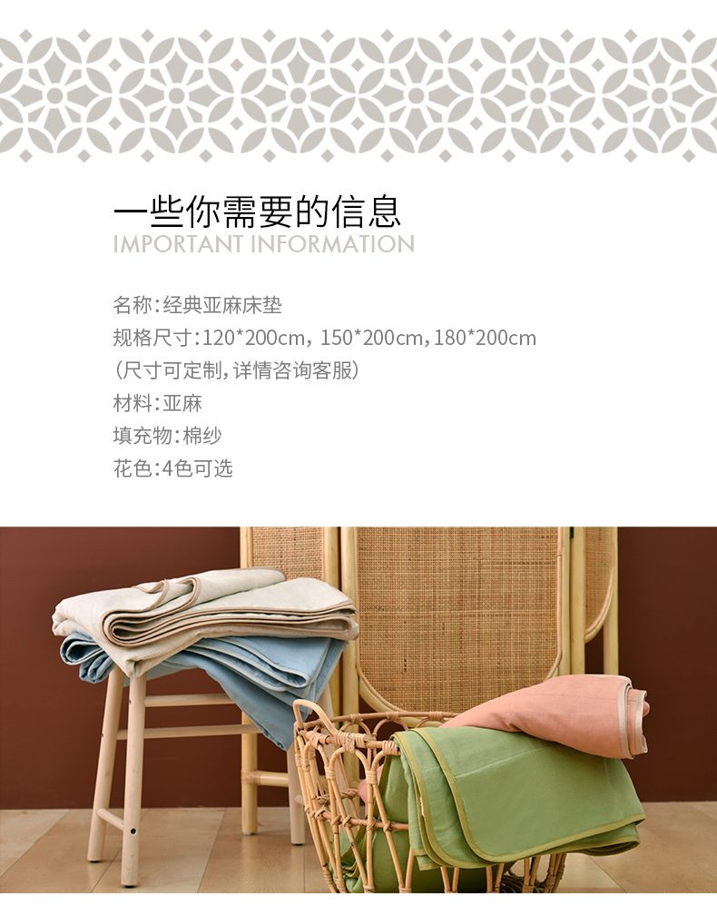 经典亚麻夏季薄款床垫软垫可定制