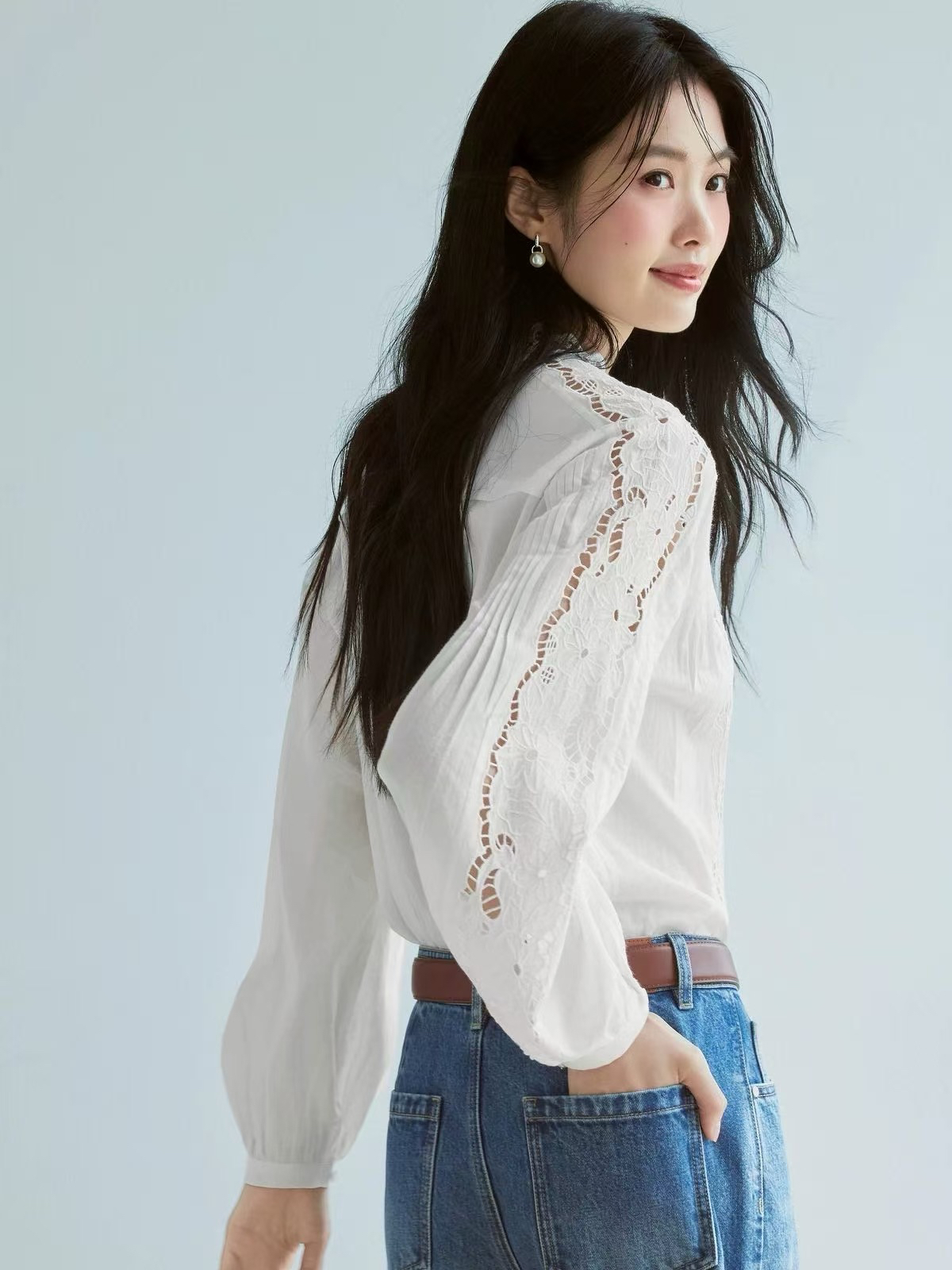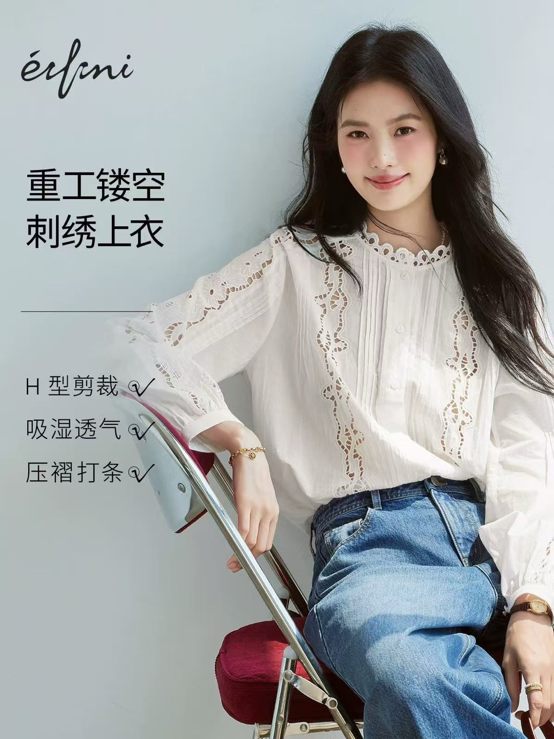 🔺商场同款伊芙丽重工镂空刺绣花边上衣