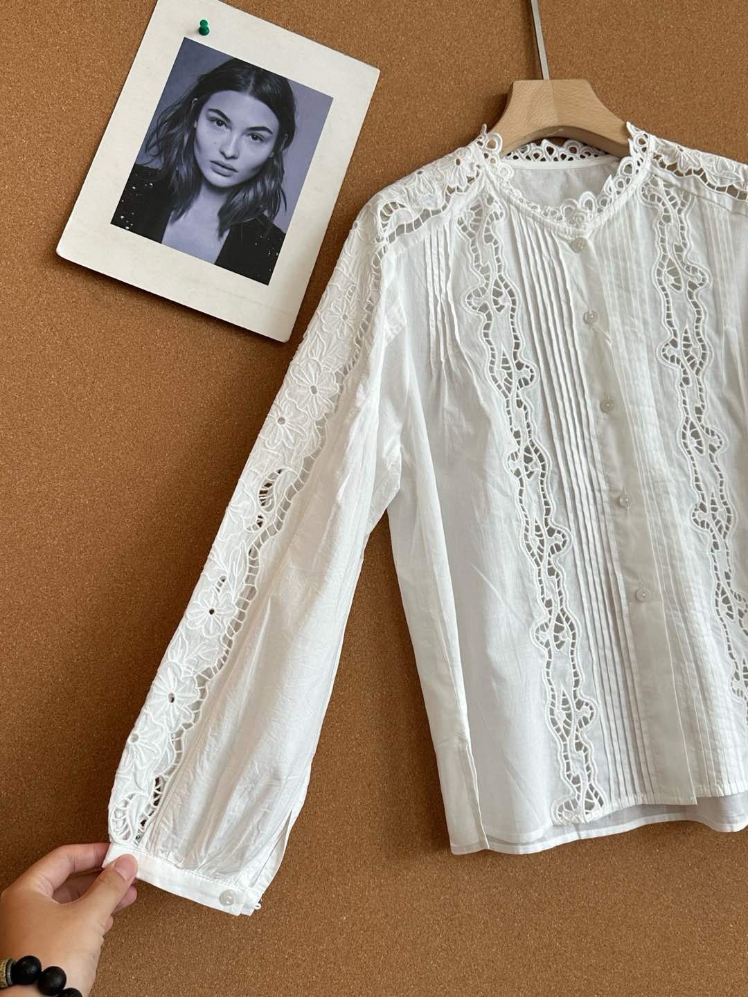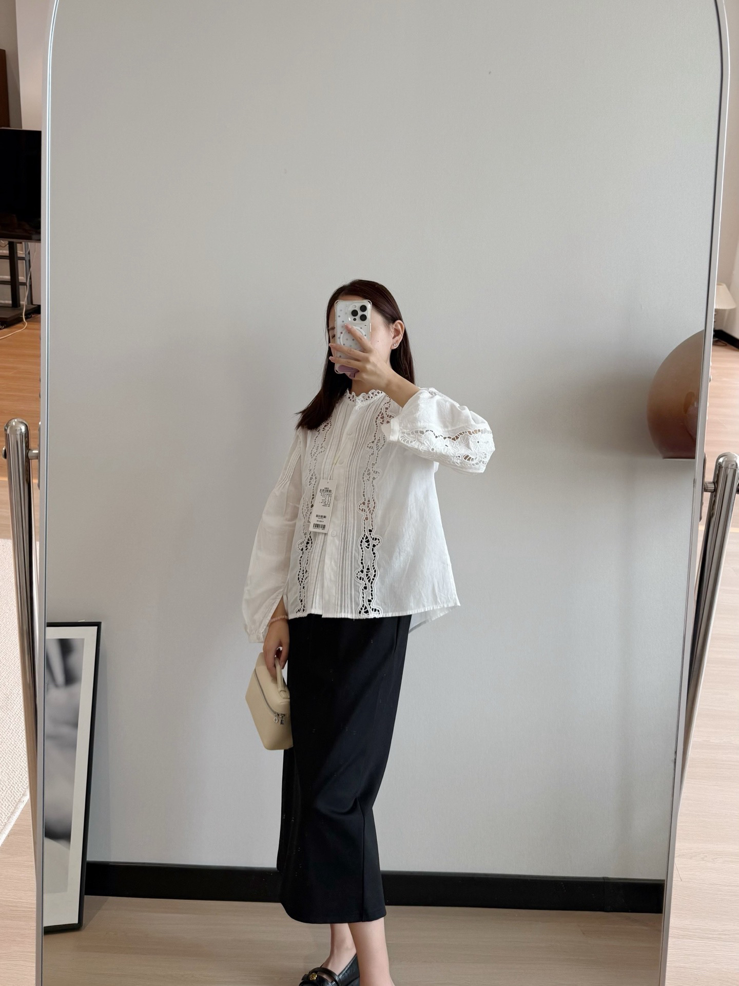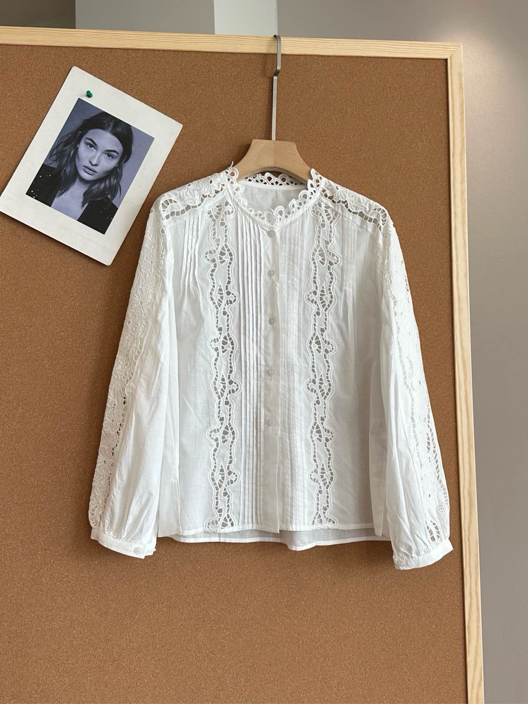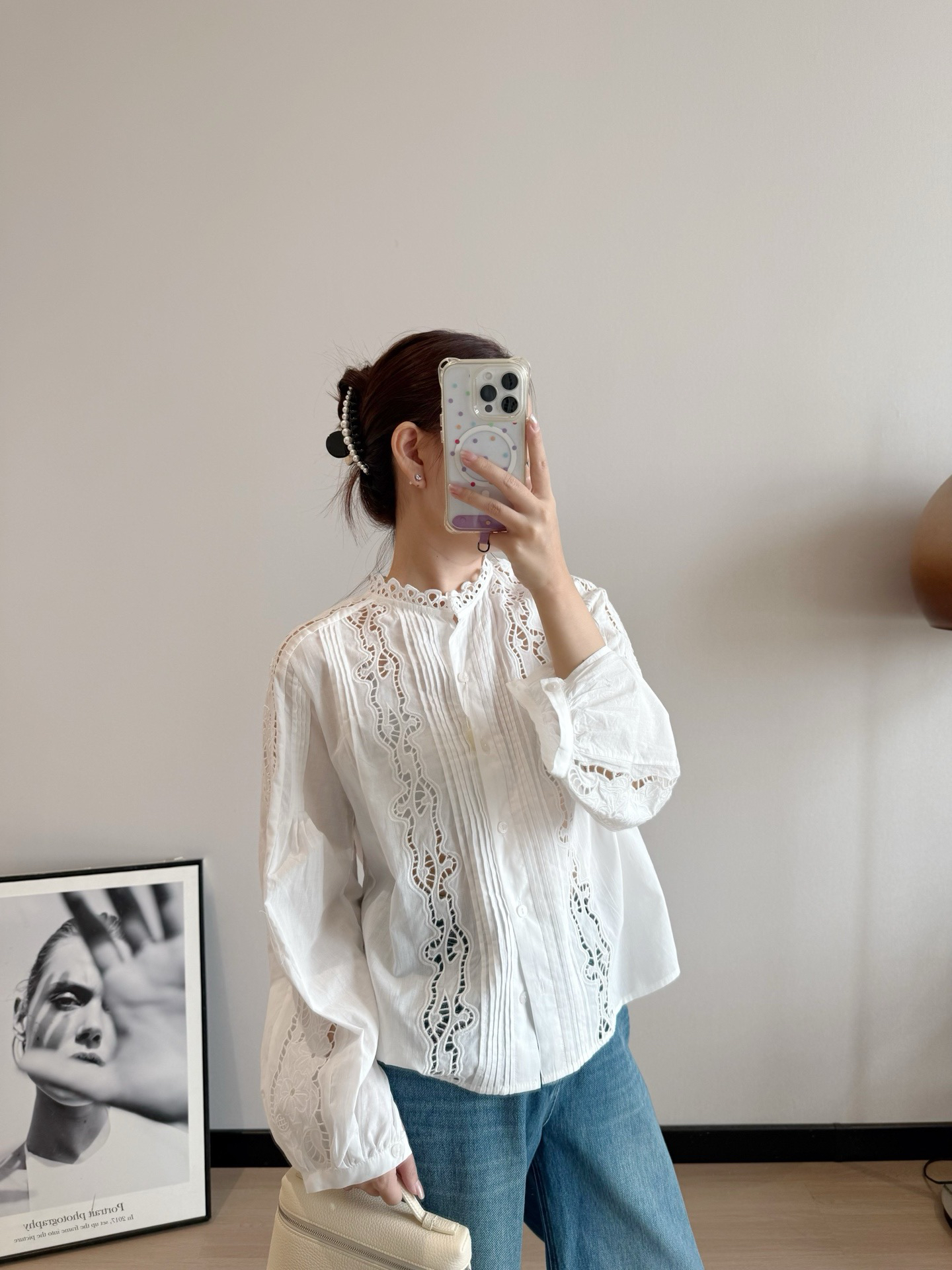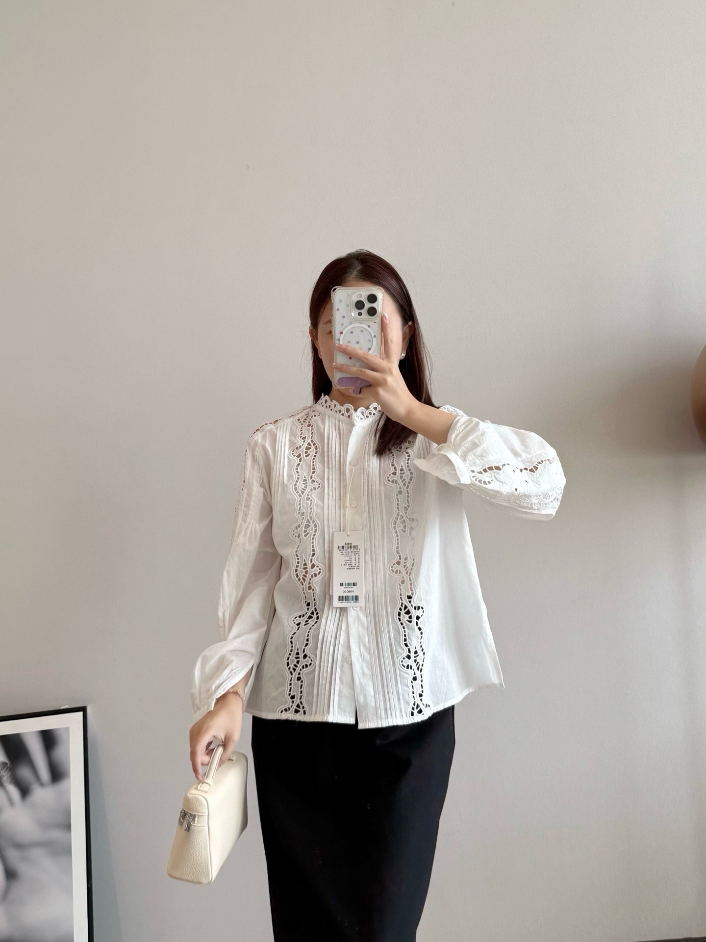 伊芙丽重工镂空刺绣上衣衬衫082804
