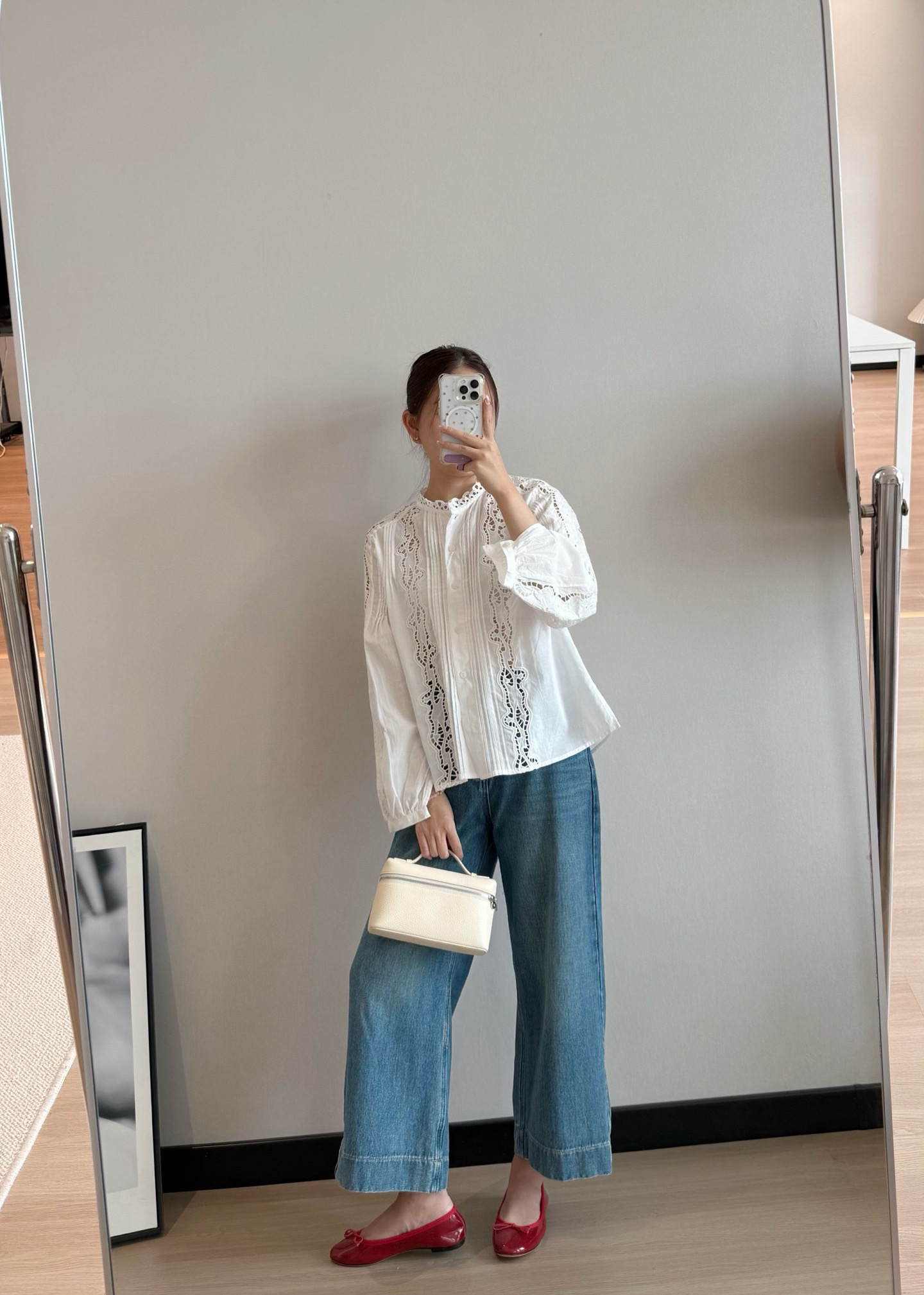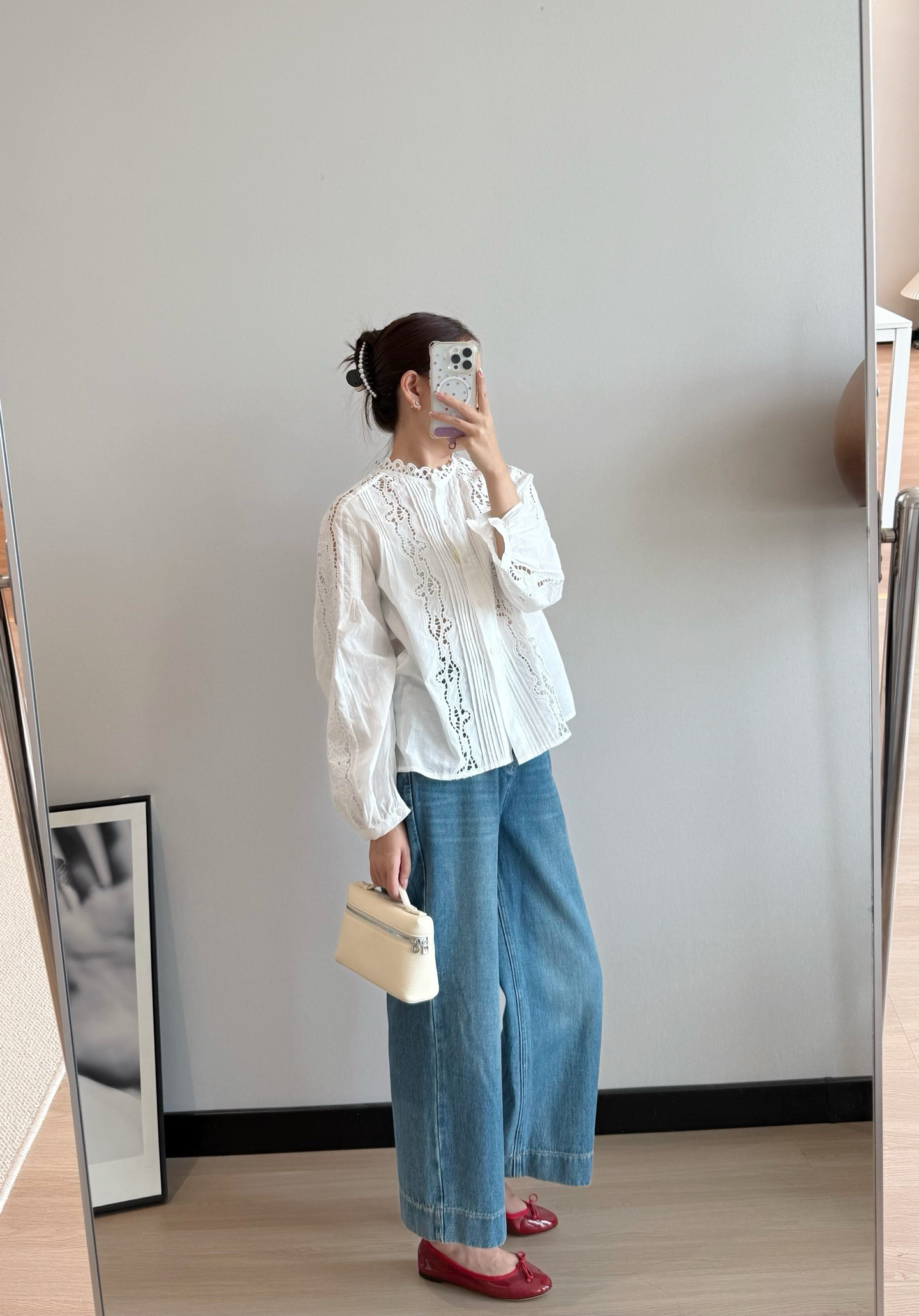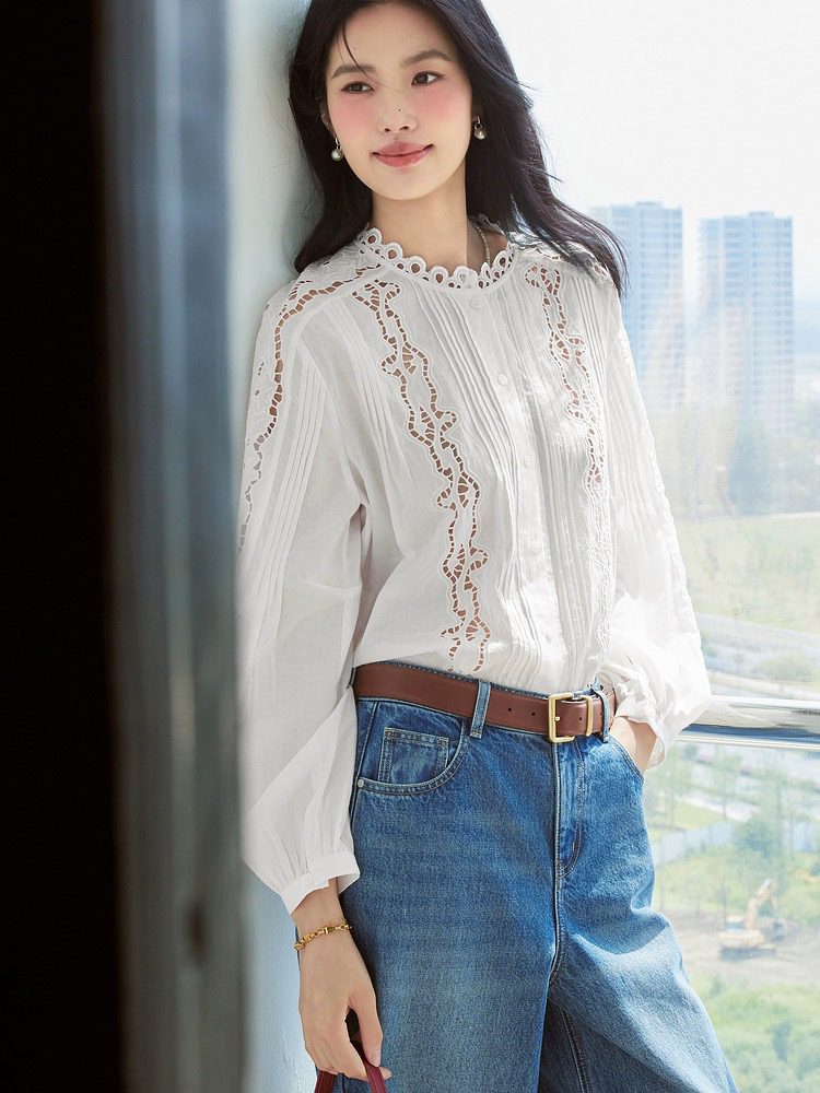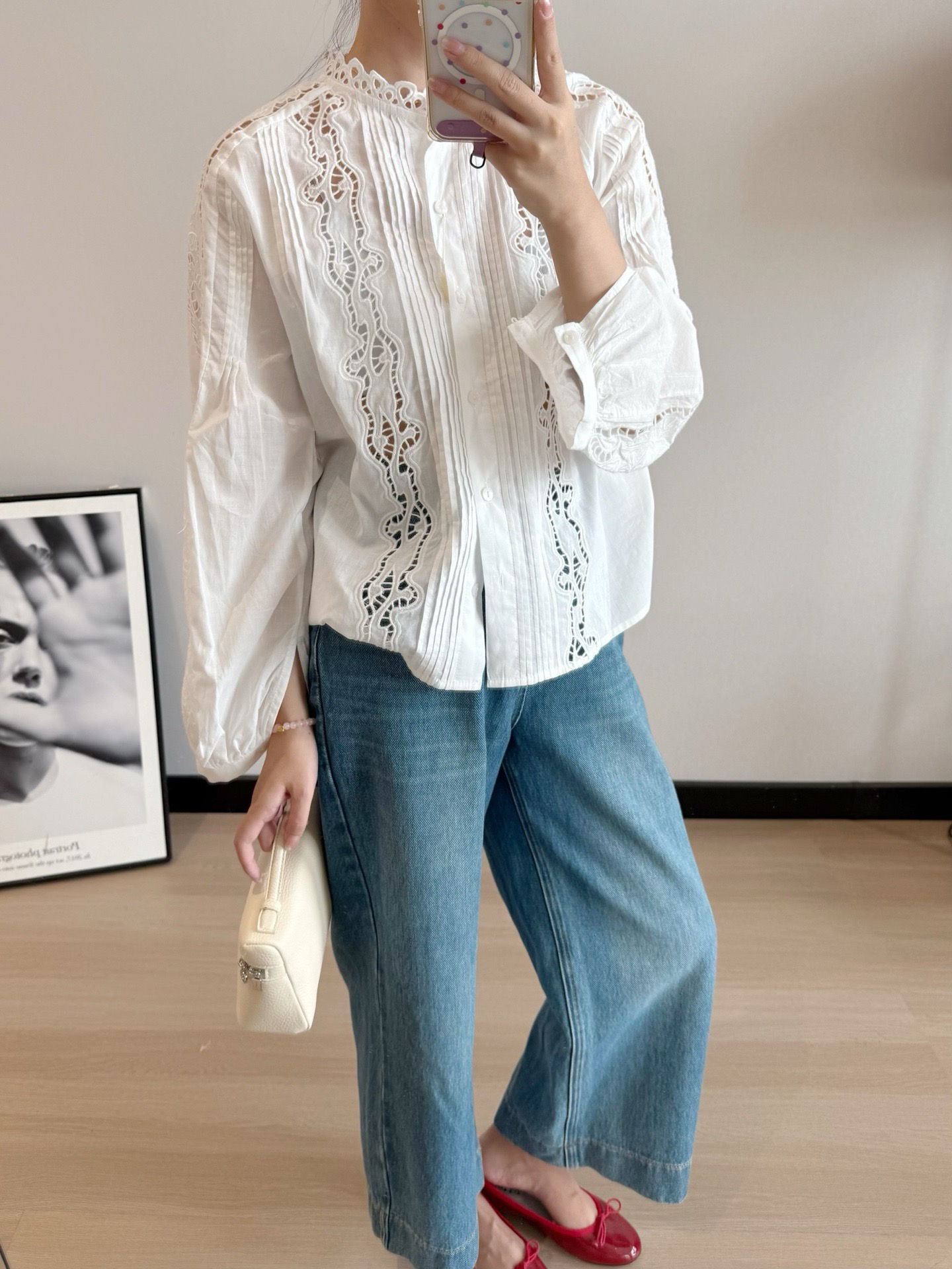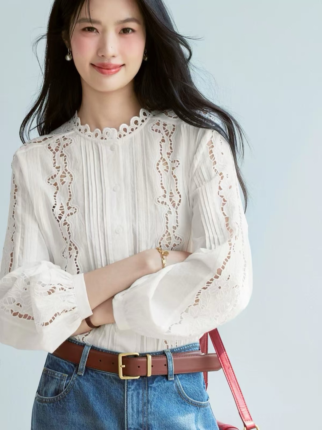 伊芙丽重工镂空刺绣上衣衬衫082804