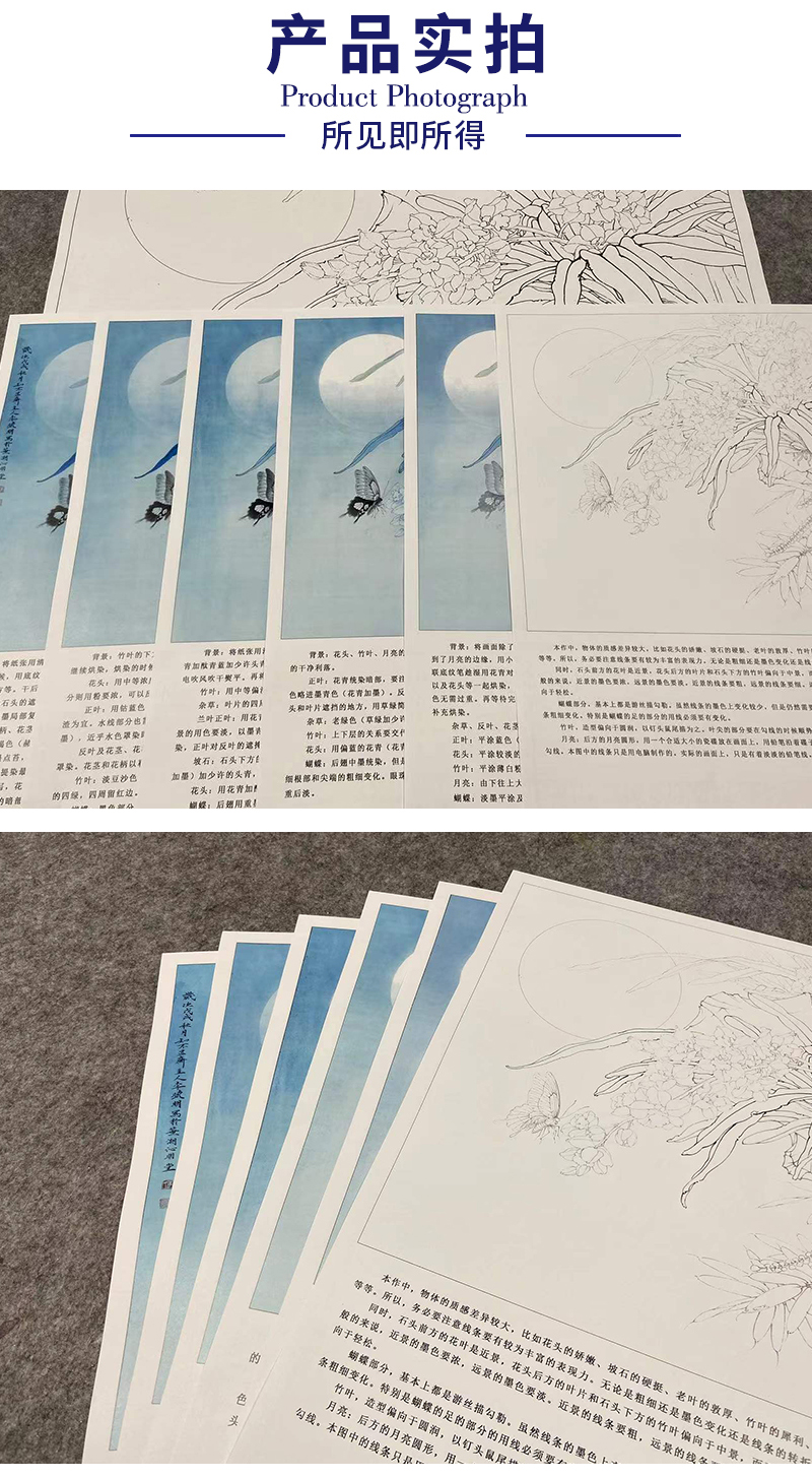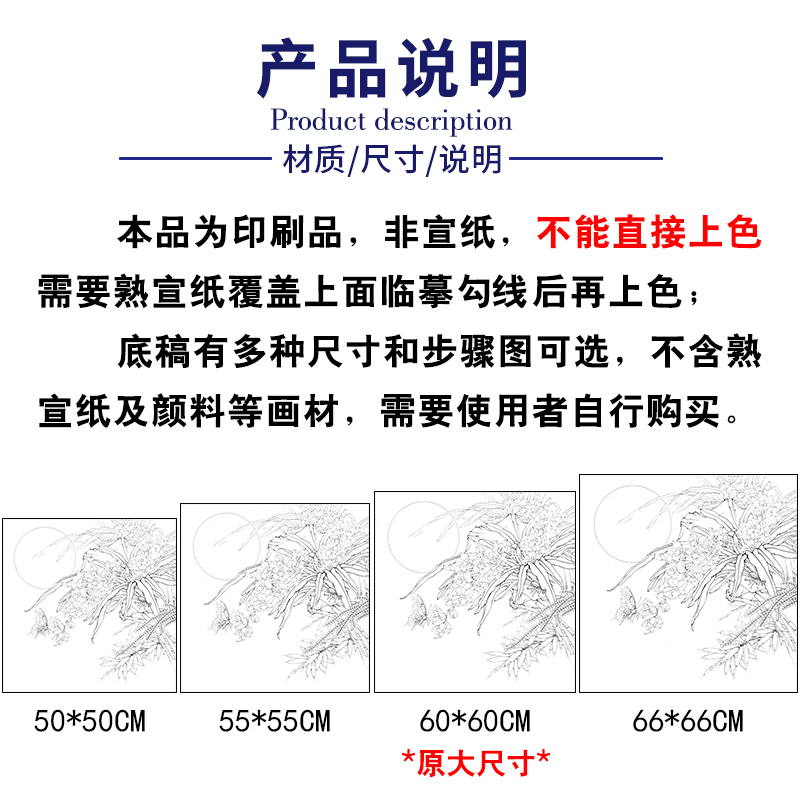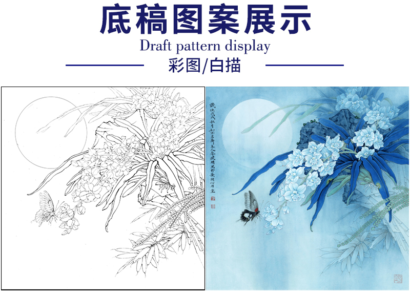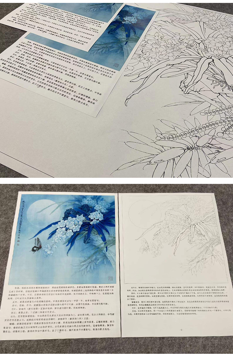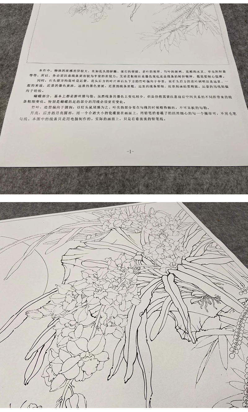 【有步骤、大彩图】李晓明工笔画白描底稿斗方小品《露冷风清花自香》蝴蝶兰花初学者临摹花鸟线稿KL25