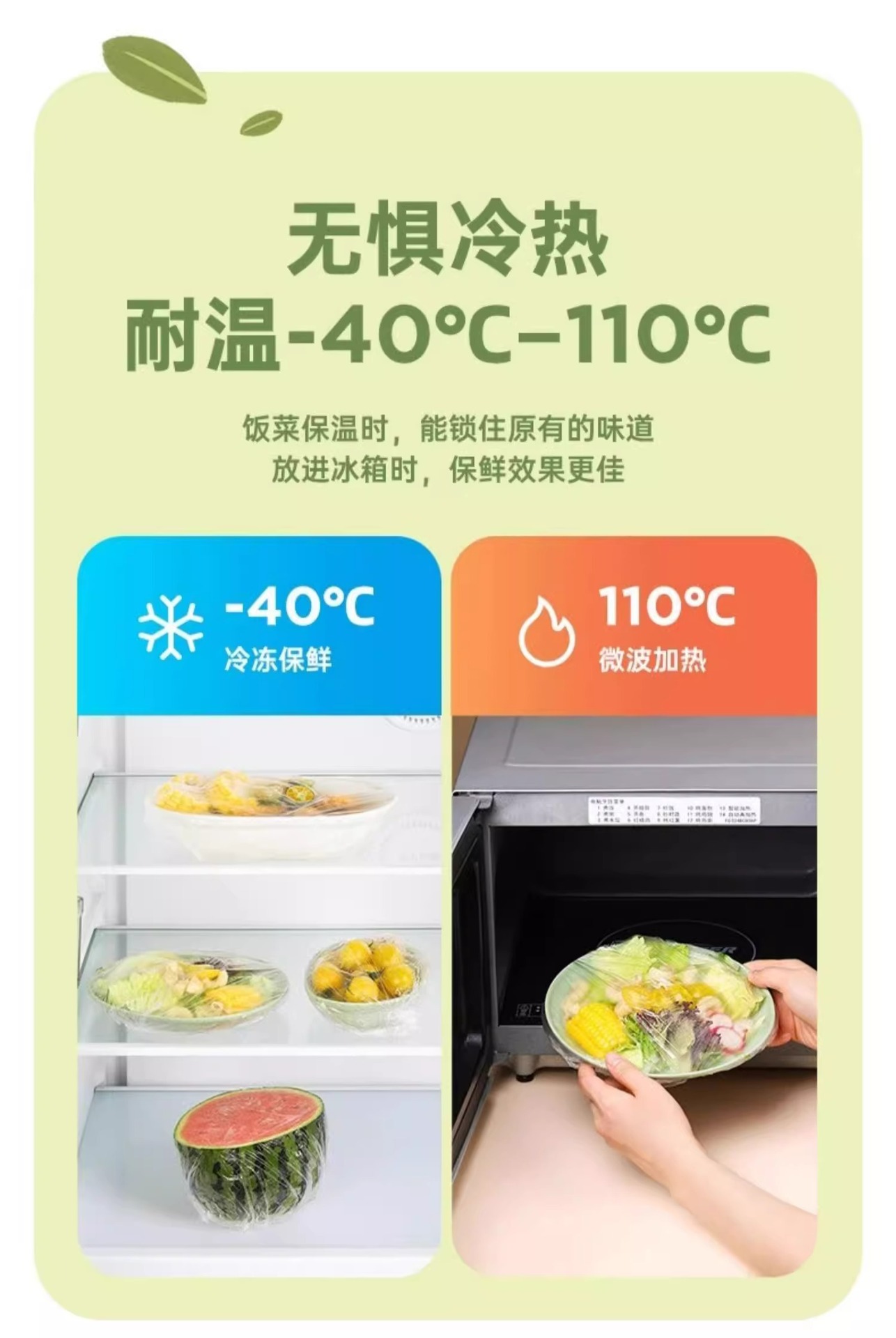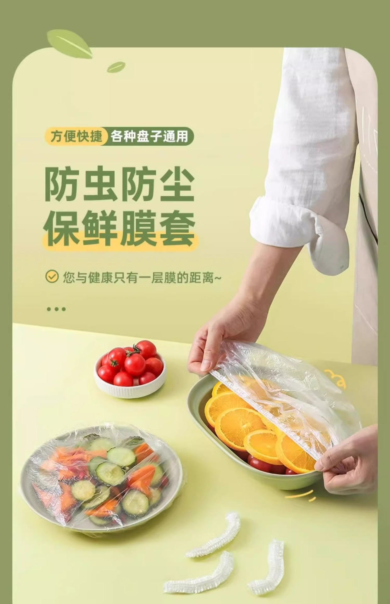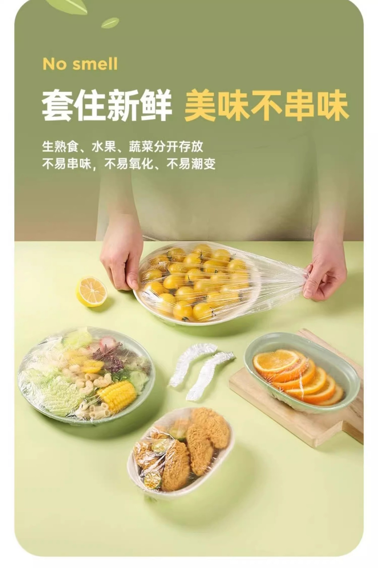 9.9抢500个【一次性保鲜膜套,限量送挂钩!】冰箱/微波炉通用 食品级PE材质 弹性皮圈隔绝污染 密封保鲜,大盘子小碗碟都合适