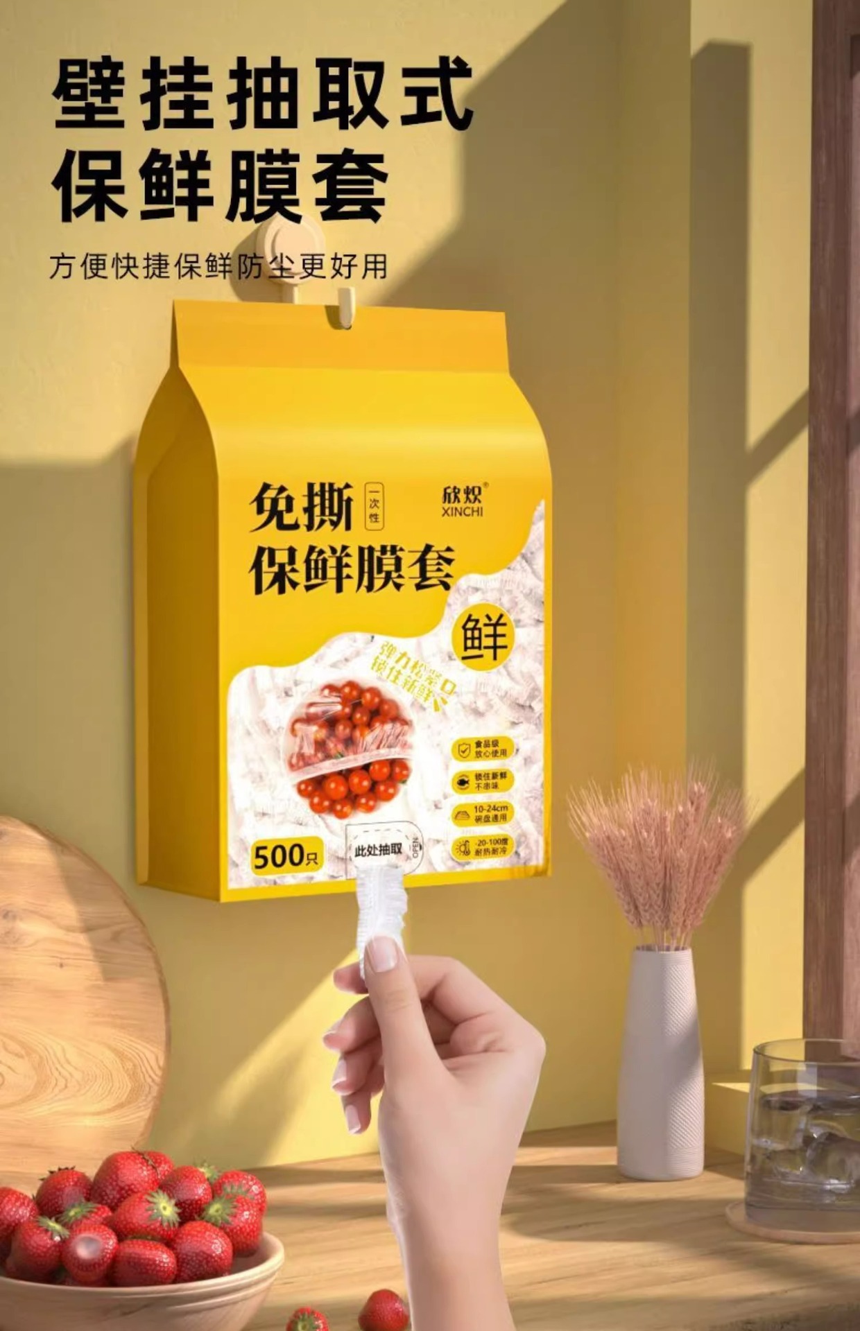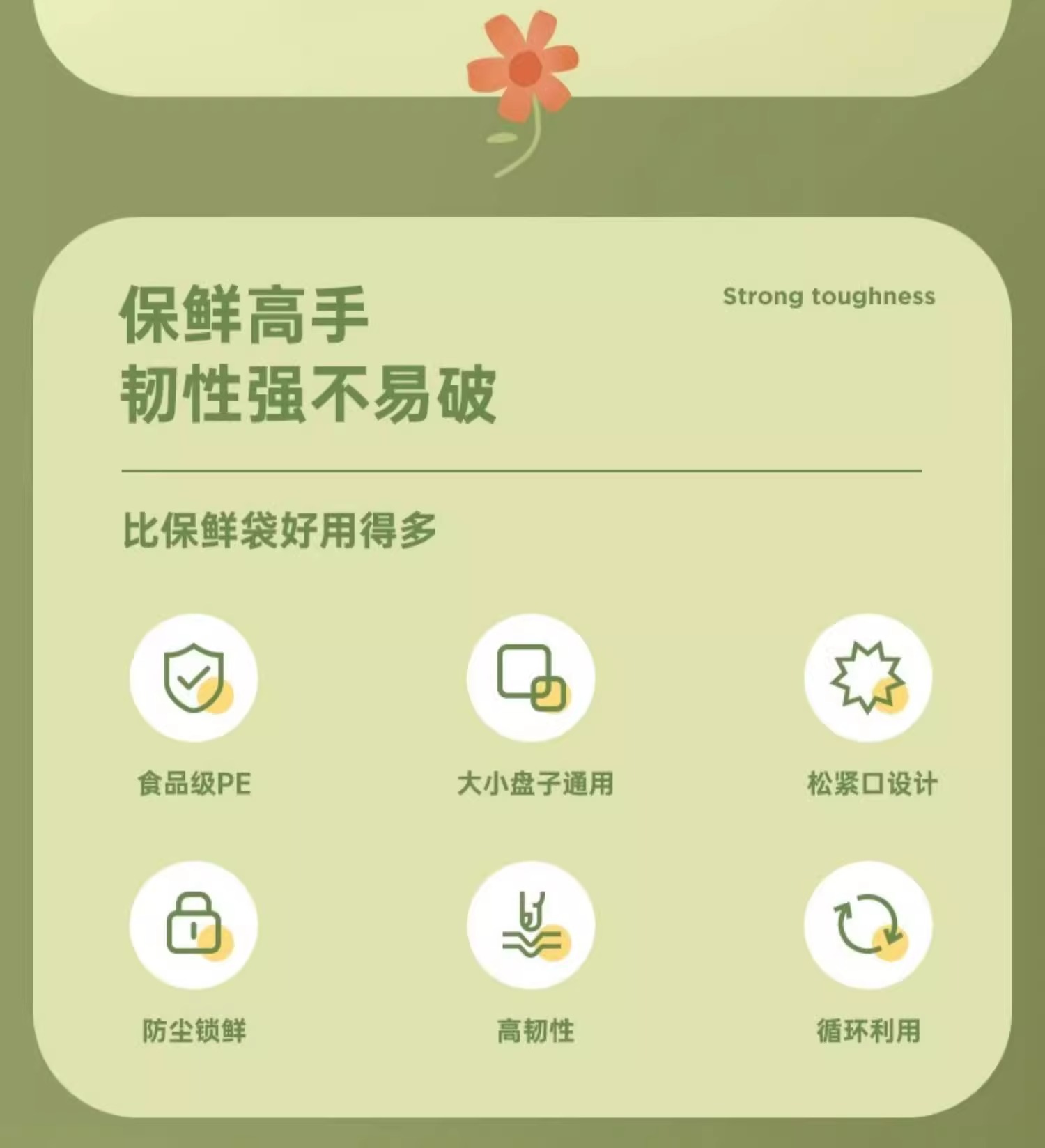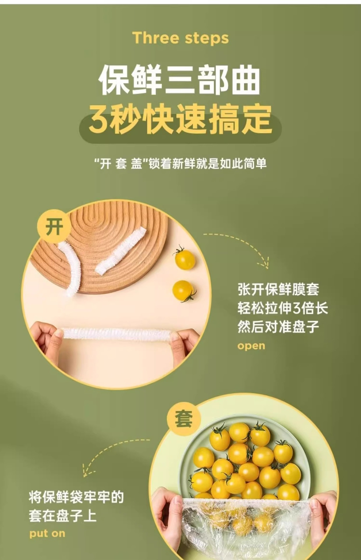 9.9抢500个【一次性保鲜膜套,限量送挂钩!】冰箱/微波炉通用 食品级PE材质 弹性皮圈隔绝污染 密封保鲜,大盘子小碗碟都合适