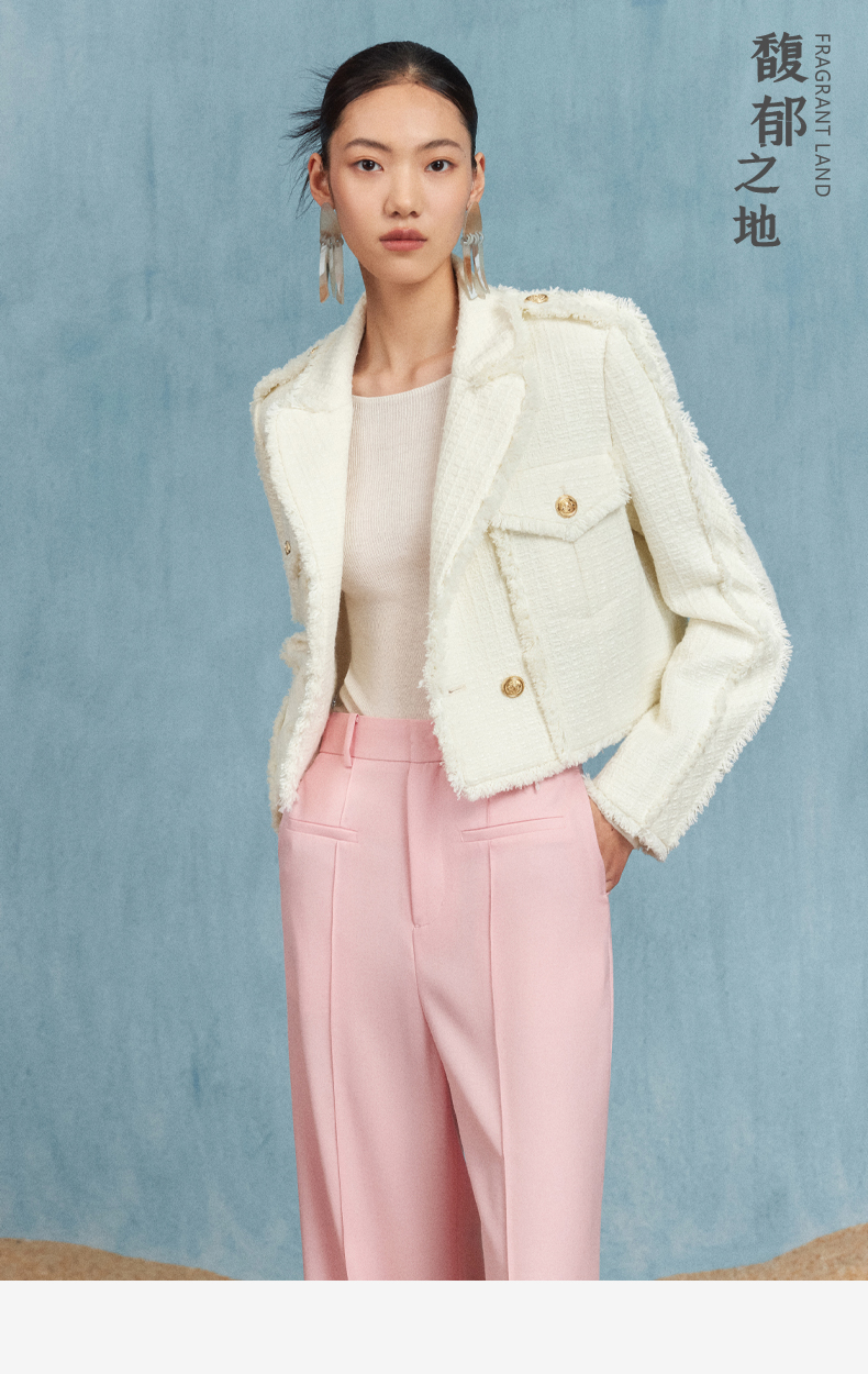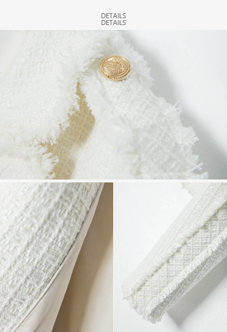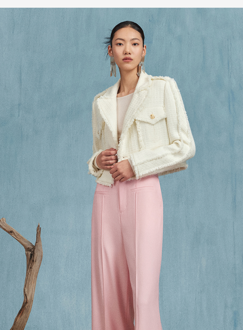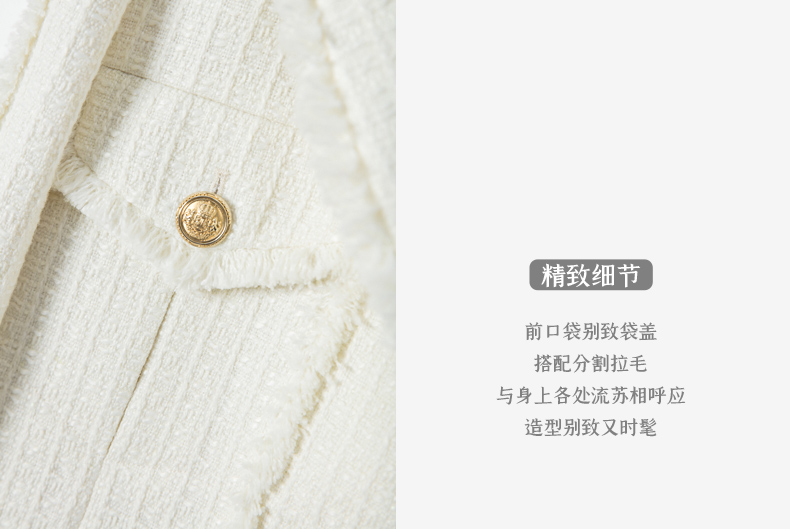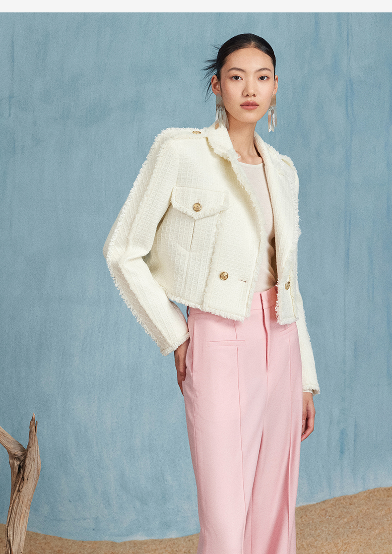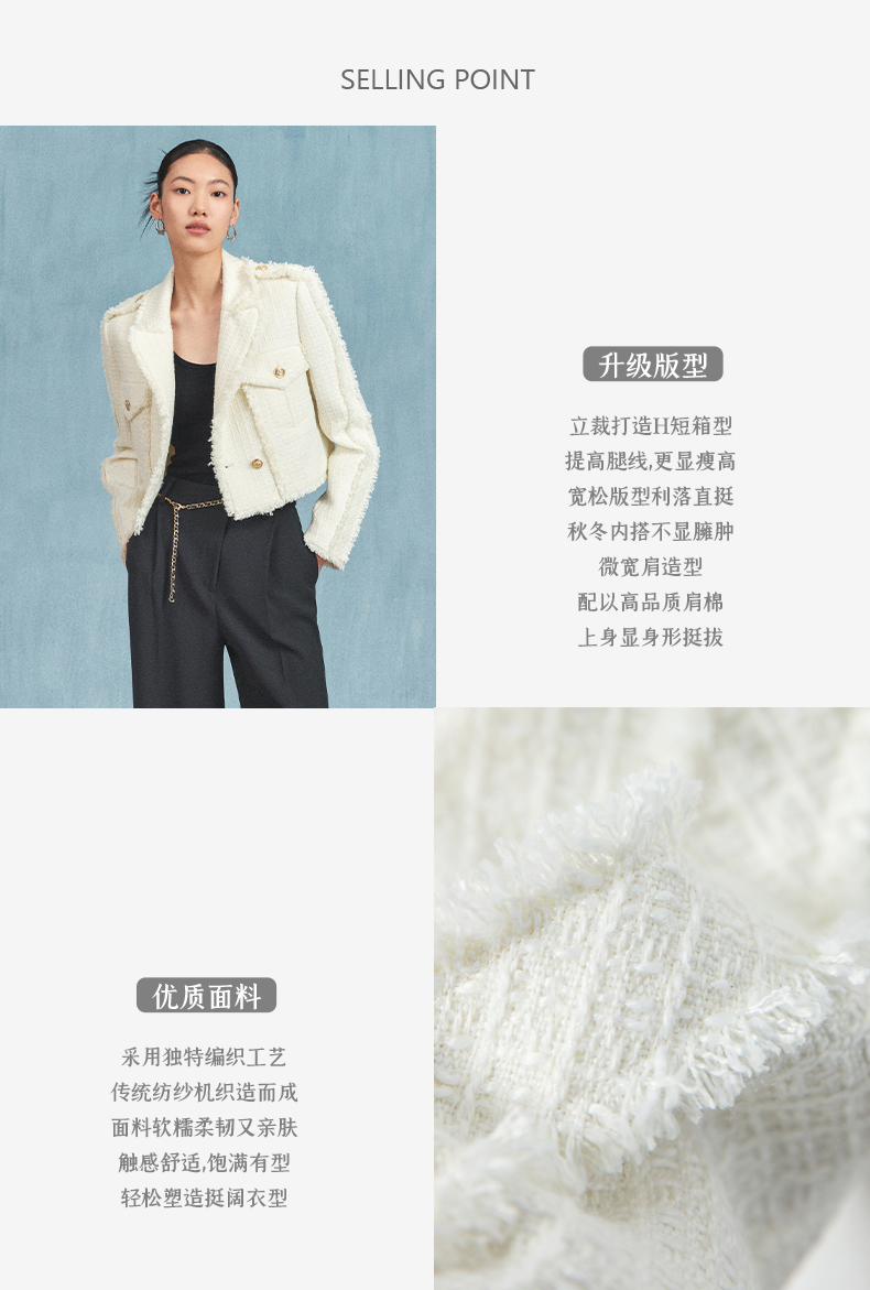 西嘉西嘉短款白色小香风外套女名媛气质小个子秋季翻领流苏拉毛粗花呢WT2303006