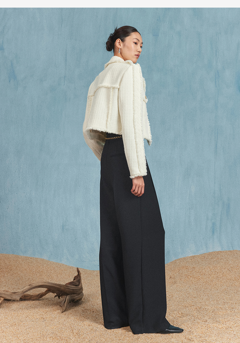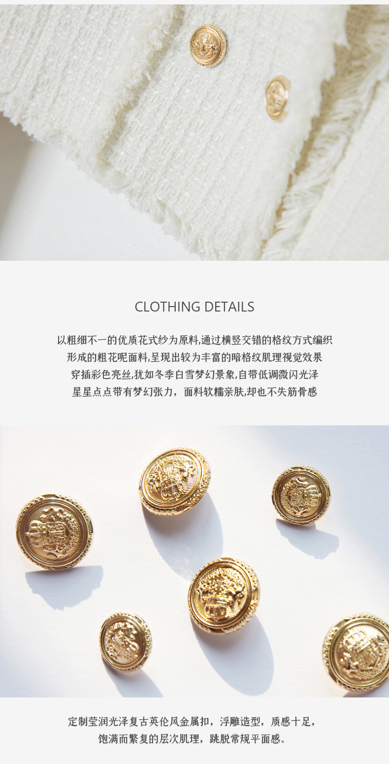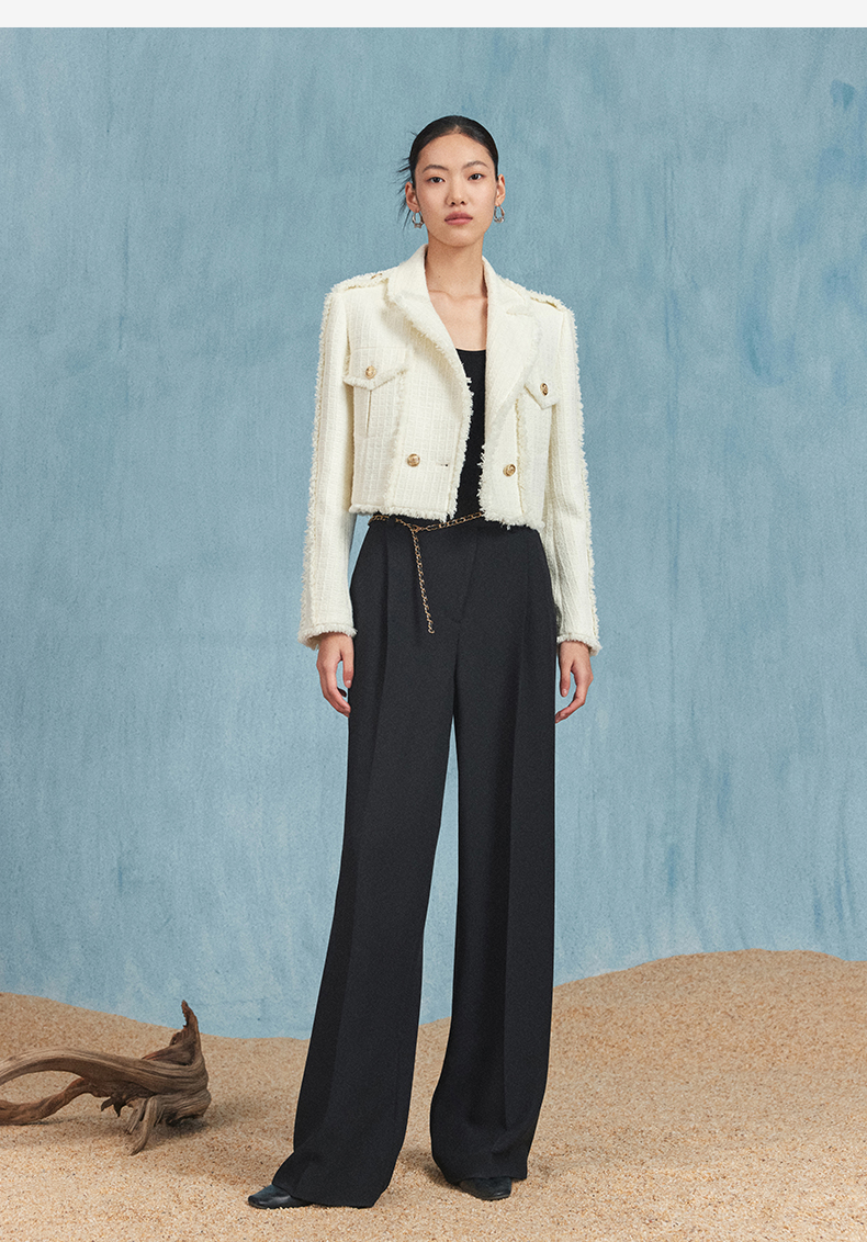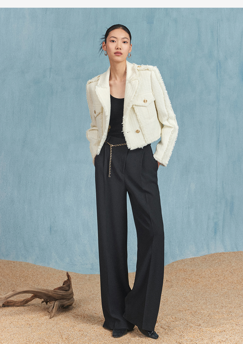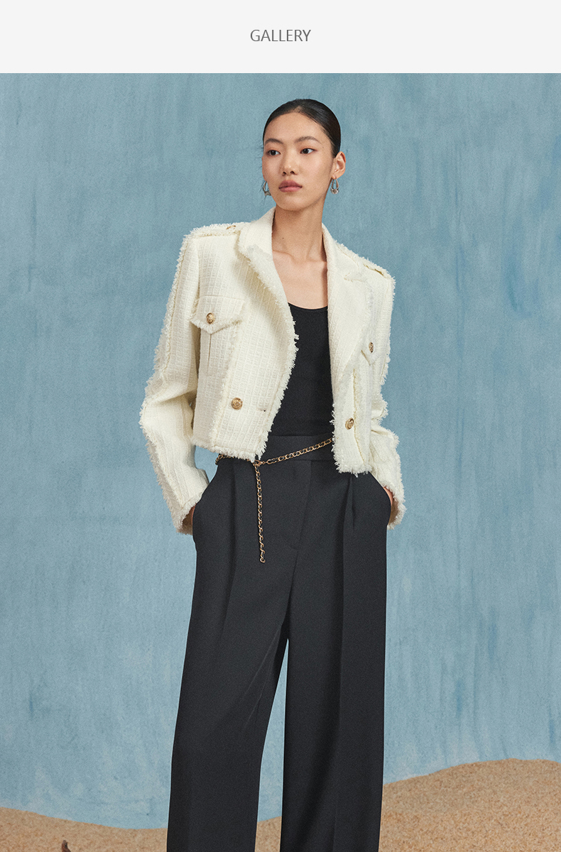 西嘉西嘉短款白色小香风外套女名媛气质小个子秋季翻领流苏拉毛粗花呢WT2303006