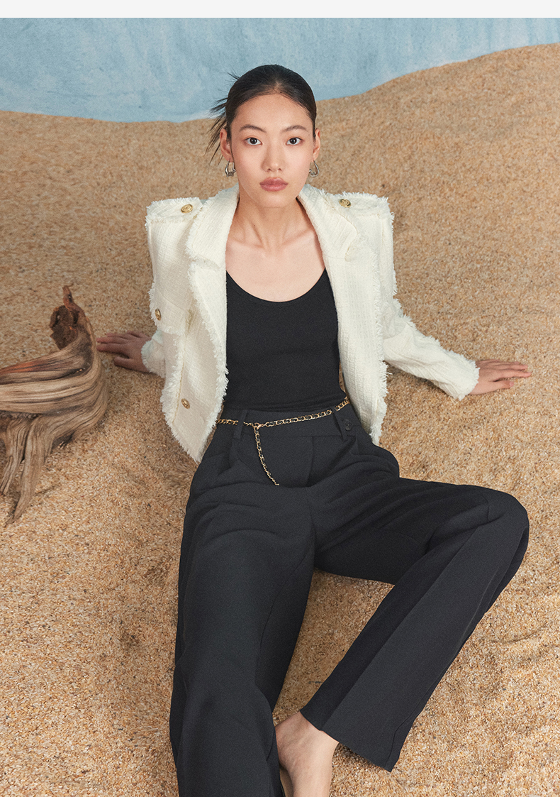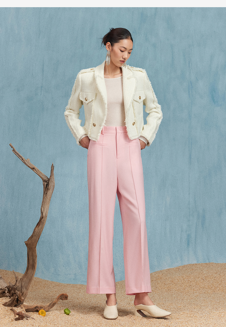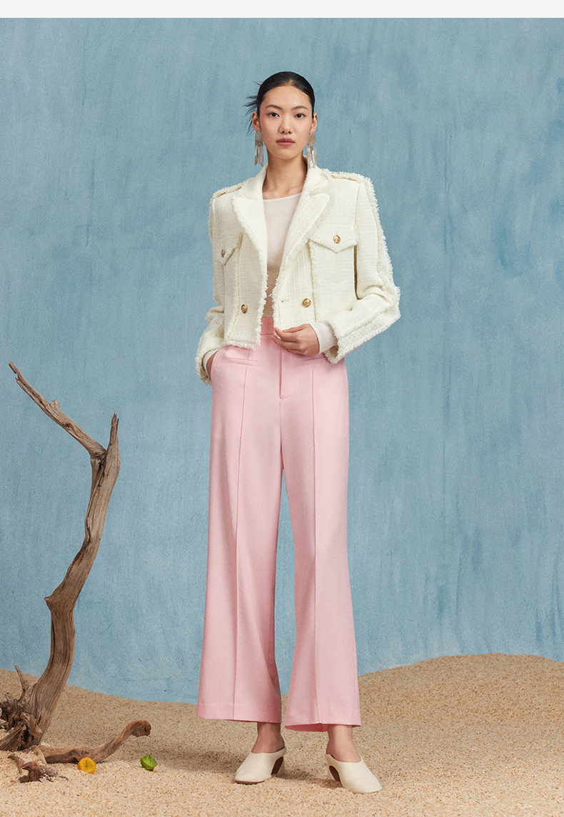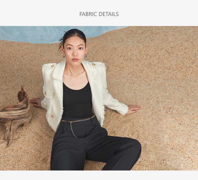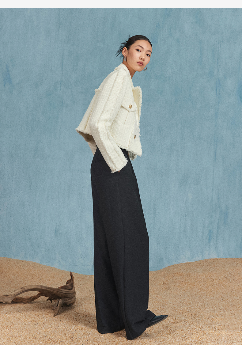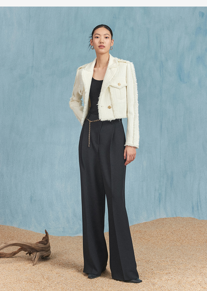 西嘉西嘉短款白色小香风外套女名媛气质小个子秋季翻领流苏拉毛粗花呢WT2303006