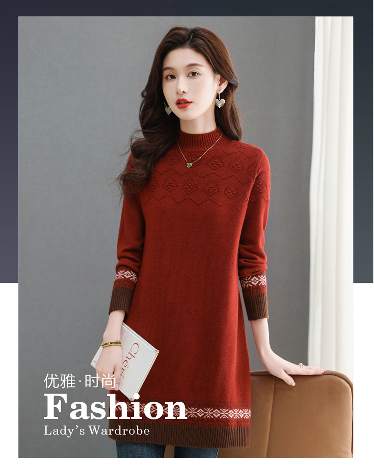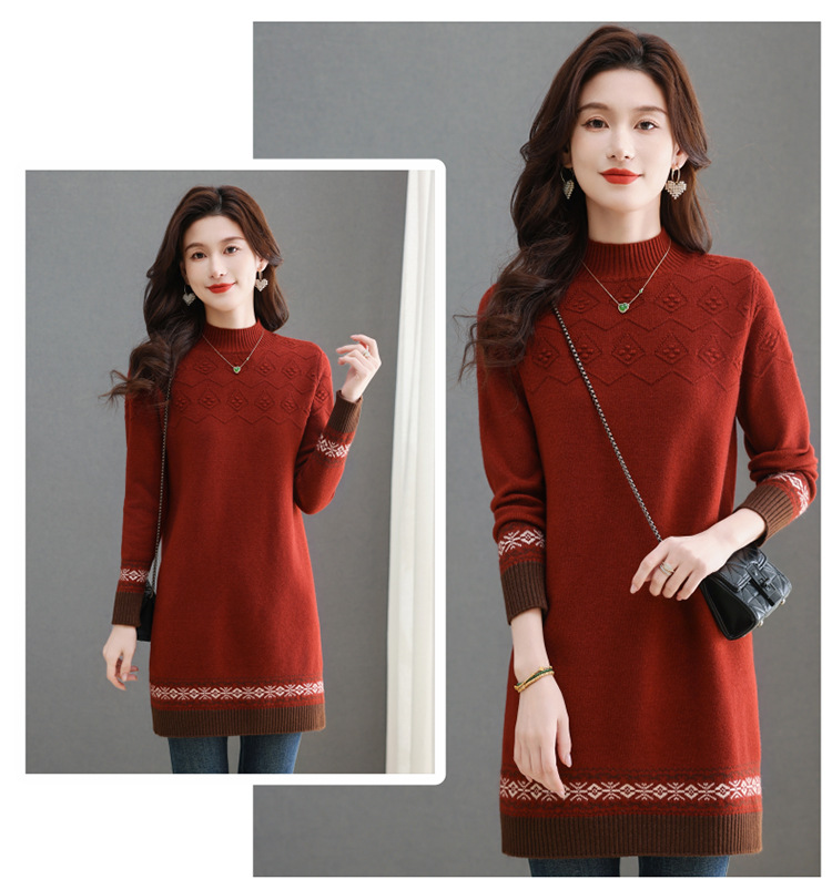 CC-101-92409中长款毛衣女遮屁股洋气上衣秋冬2024新款冬季厚款内搭针织打底衫