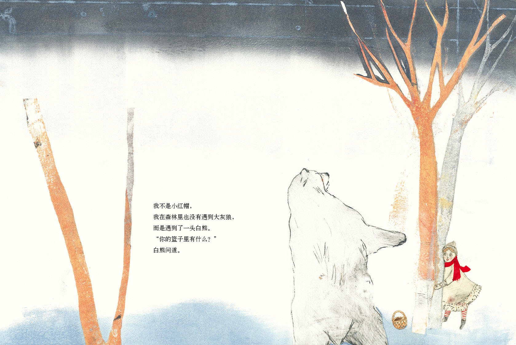 《小红帽》的故事家喻户晓,经久不衰,然而在这个故事的开篇,小女就大声宣告:“我不是小红帽!”她没有带上红色的帽子,而是系着一条红色的围巾。那么她究竟是谁呢?她在这样一个静谧的雪夜中独自来到森林,是否会遇到传说中的那个大灰狼呢?