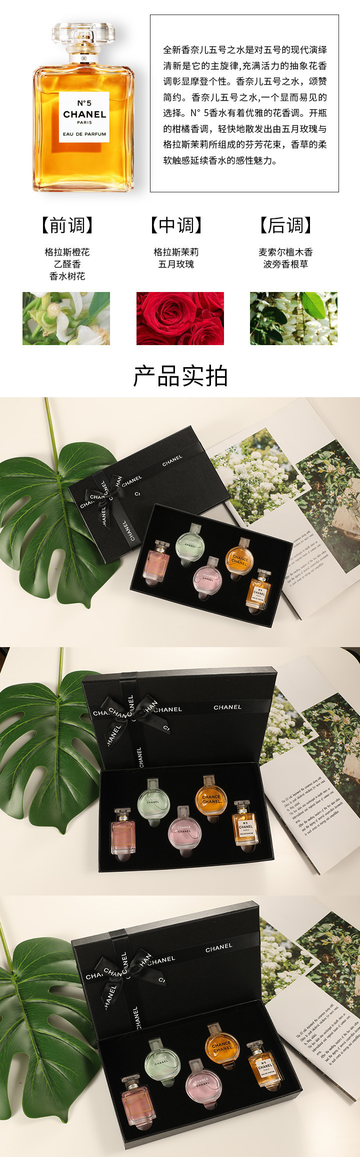 【赠送祖玛珑香水+专柜礼袋】CHANEL香奈儿黑盒邂逅五件套 小样黑盒7.5ml*5 礼盒套装 Q香无喷头