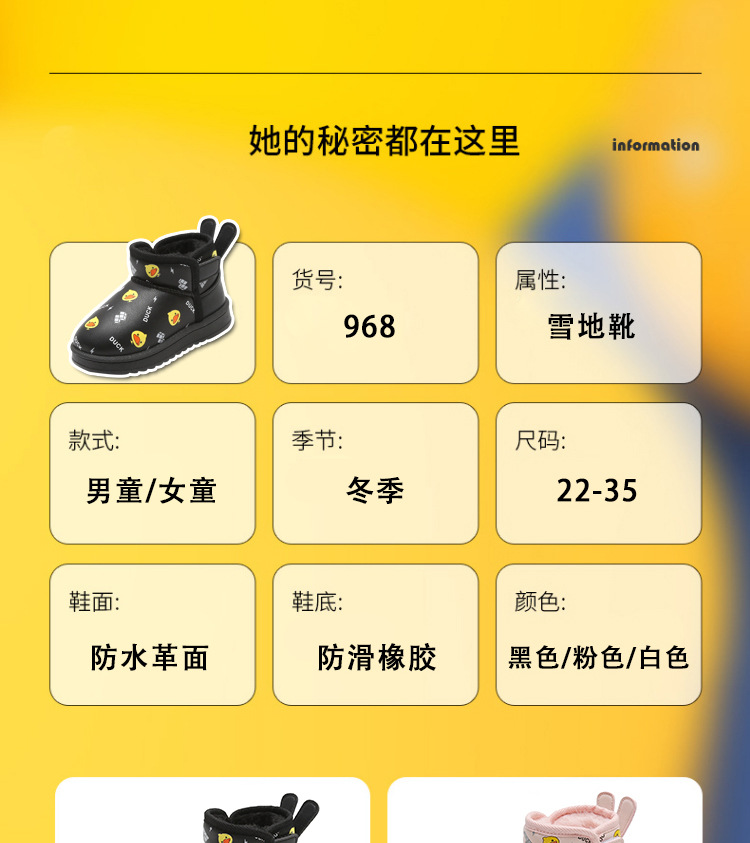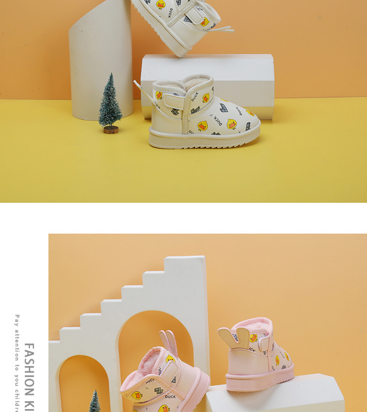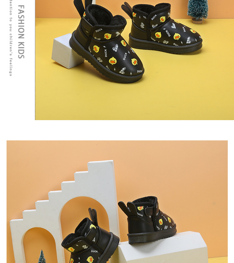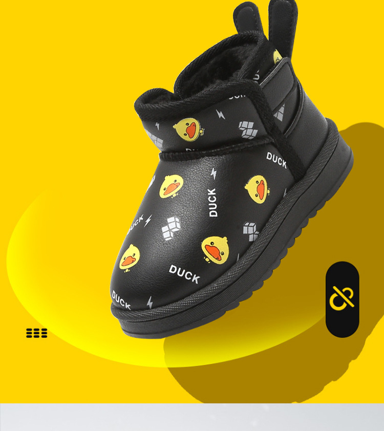【贴心加绒 带来温暖~】冬季新款 儿童雪地靴 男童防水加厚宝宝棉鞋 软底女童加绒保暖童棉靴-QQ