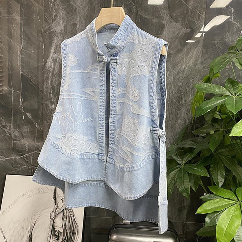 丁摩 真真原实力!芜法抗拒的复古叠穿美!牛仔马甲外套女春秋新款4ZF-11