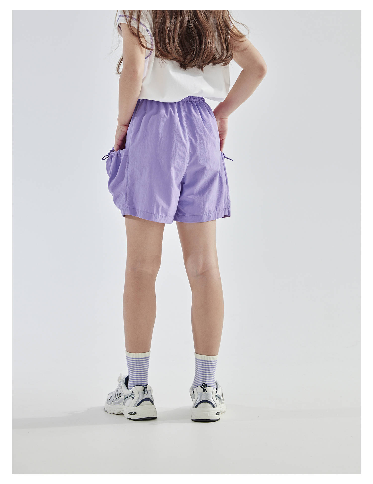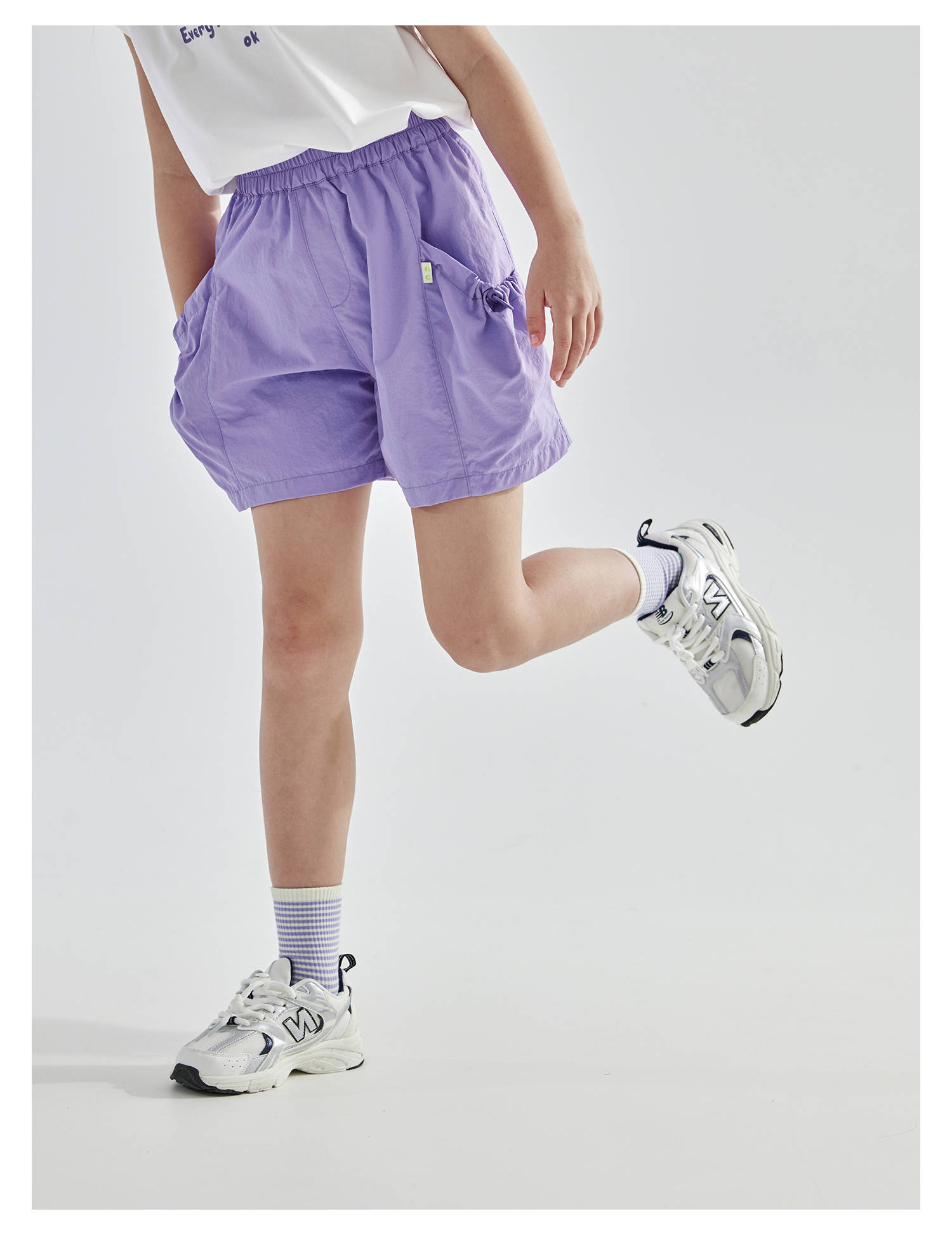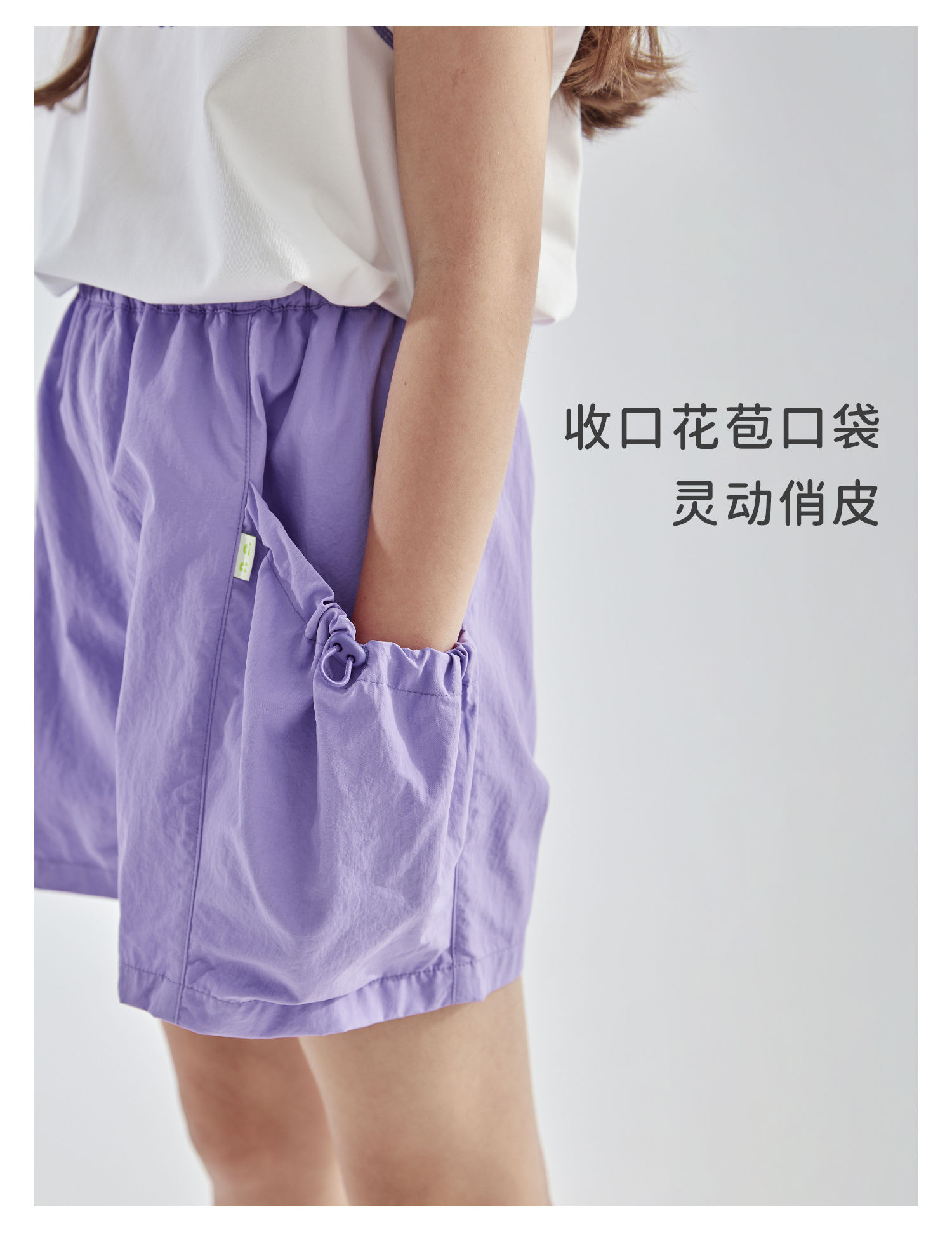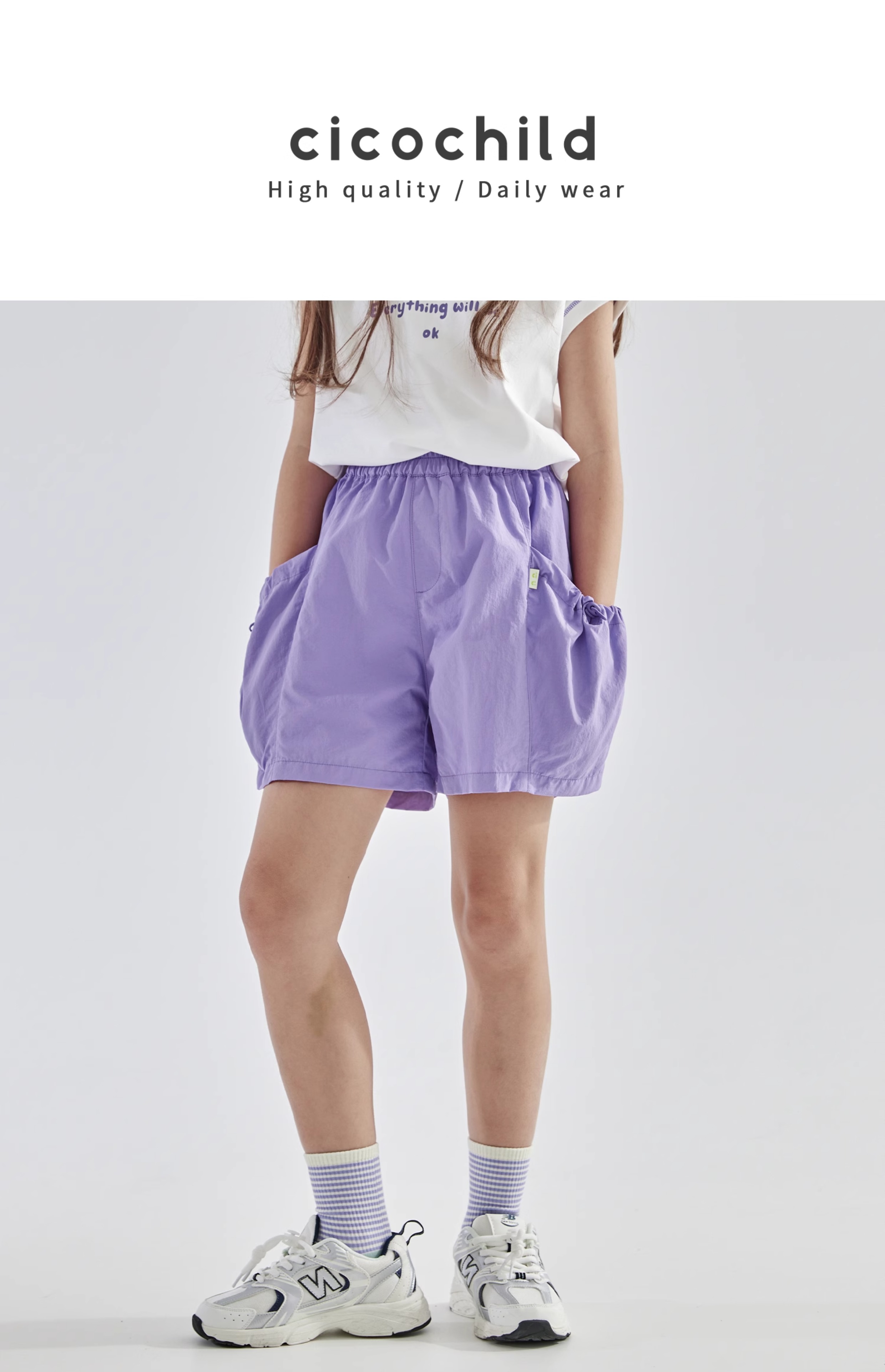 cicochild25夏季新款户外亲子中大女童轻薄花苞口袋棉纱短裤