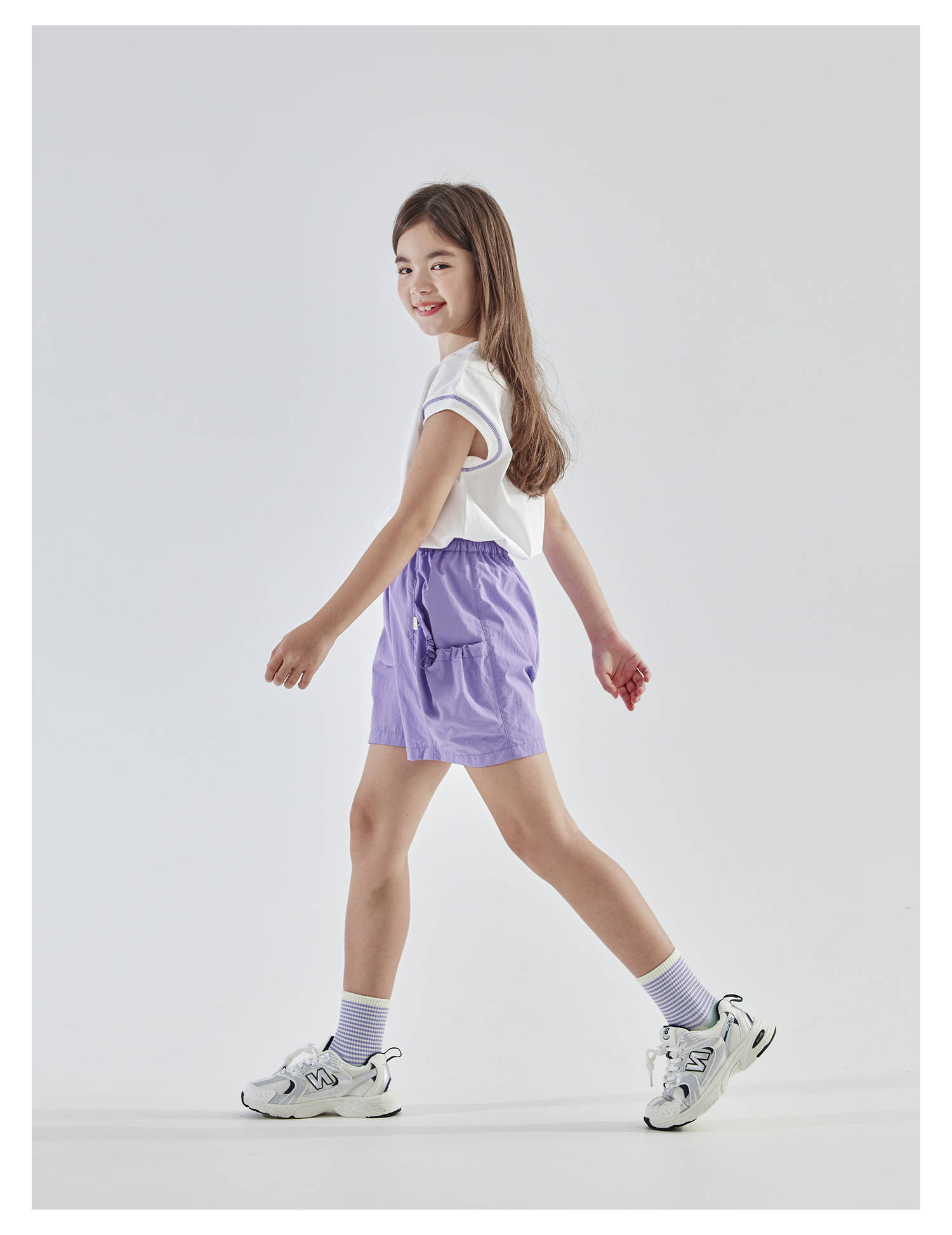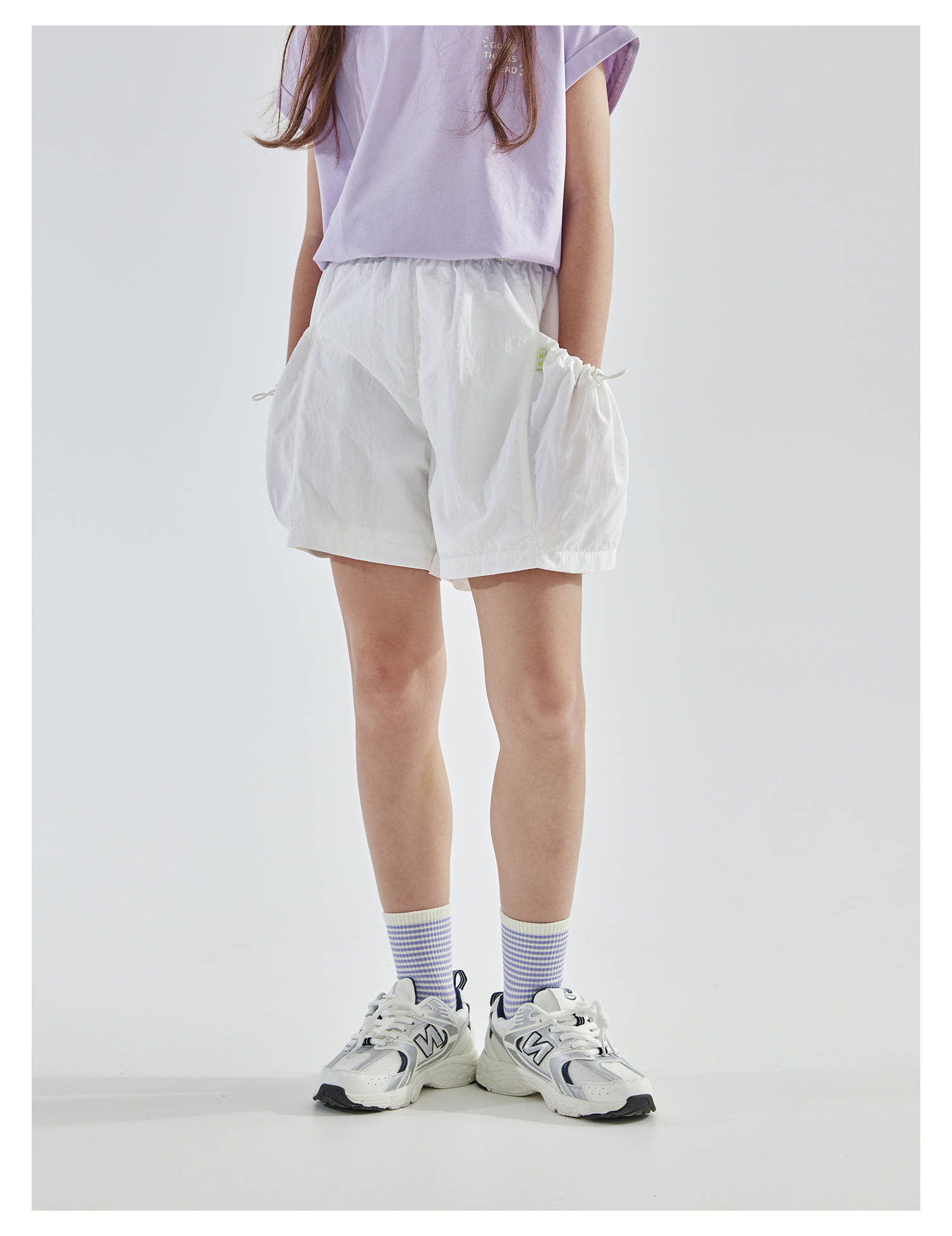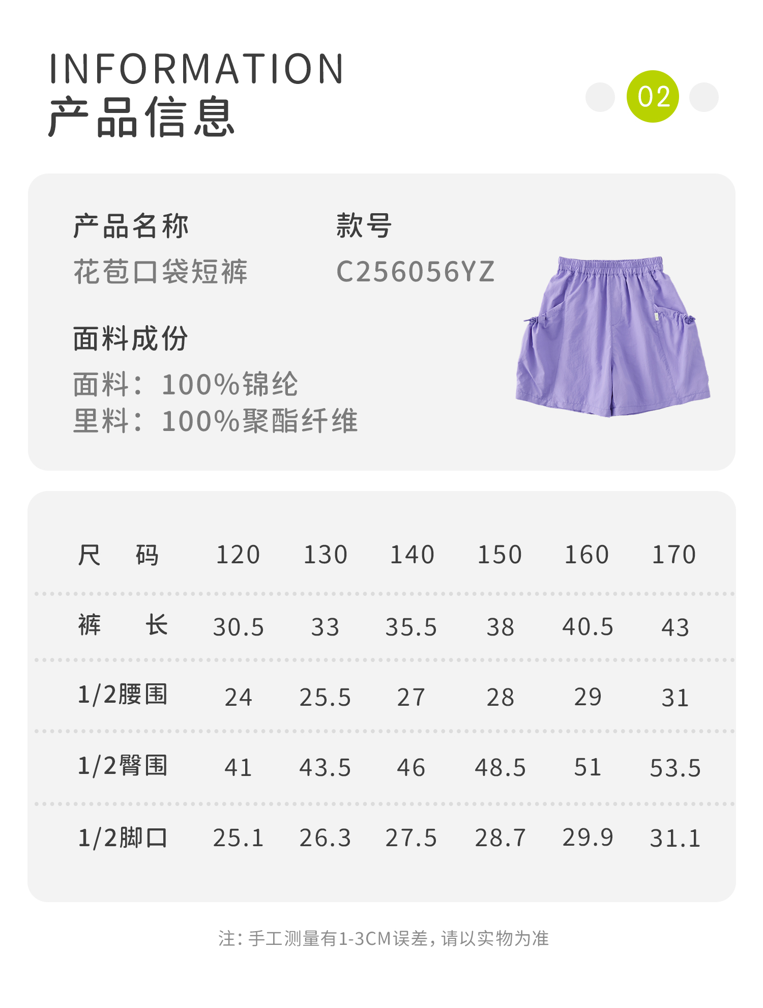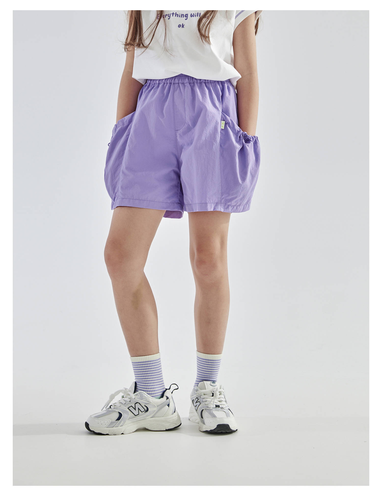 cicochild25夏季新款户外亲子中大女童轻薄花苞口袋棉纱短裤