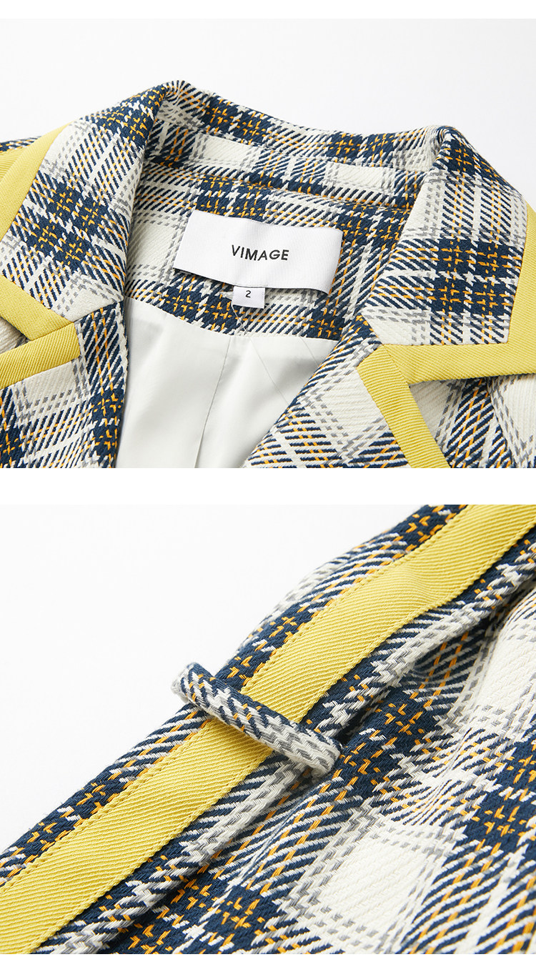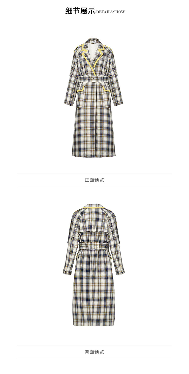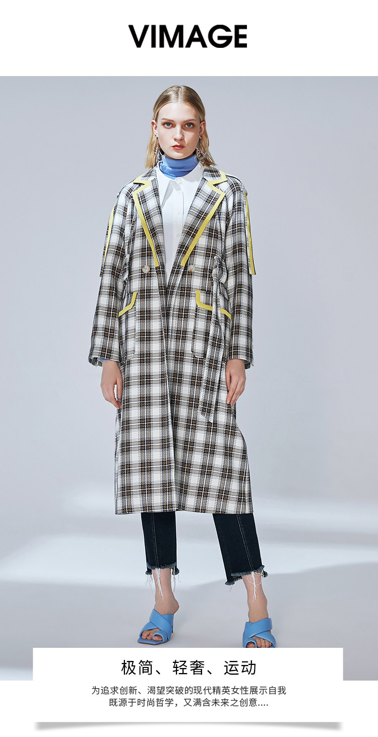 VIMAGE纬漫纪秋款帅气宽松时尚个性格纹收腰长风衣外套女V1404004