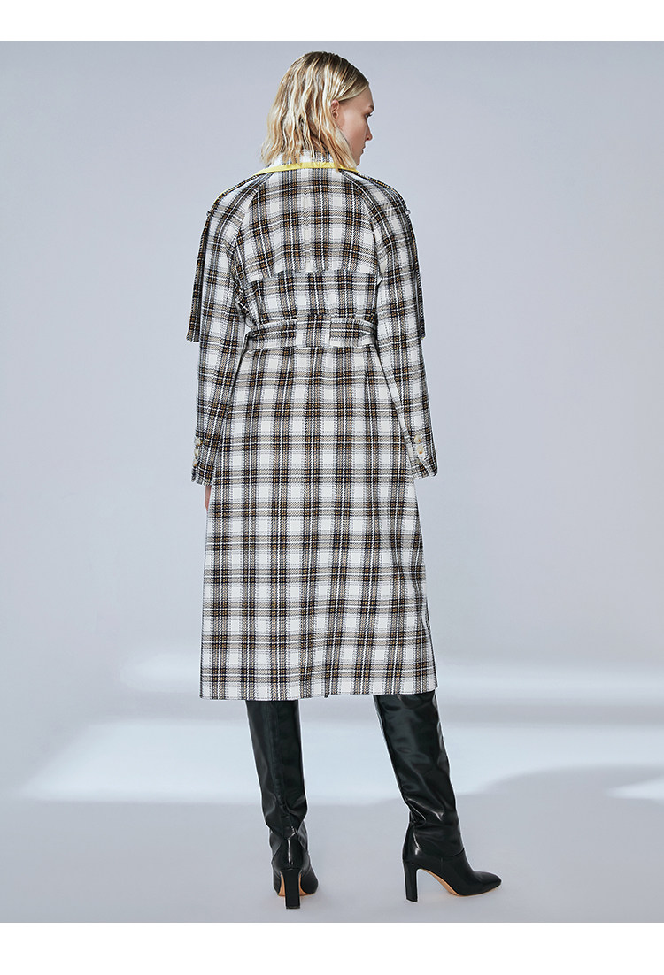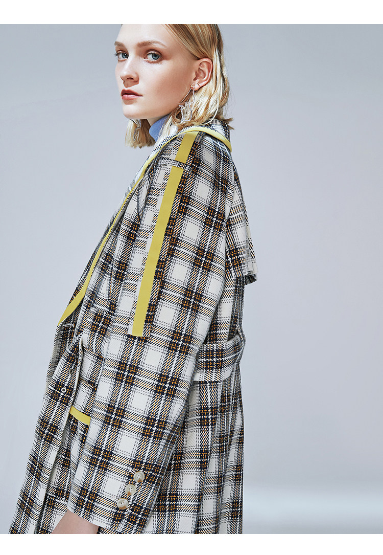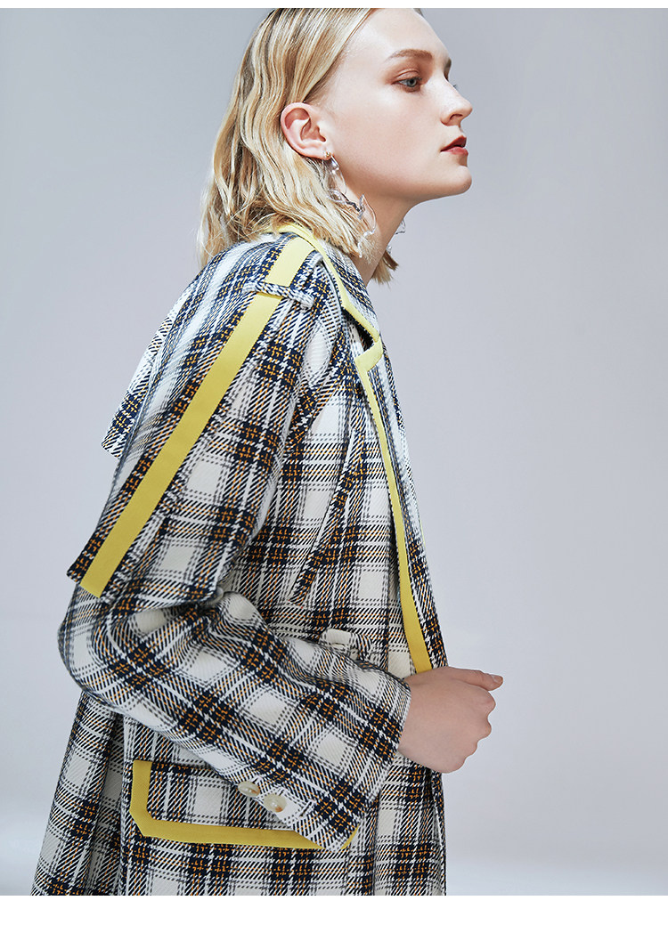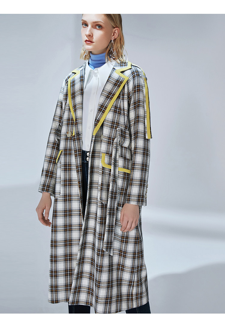VIMAGE纬漫纪秋款帅气宽松时尚个性格纹收腰长风衣外套女V1404004