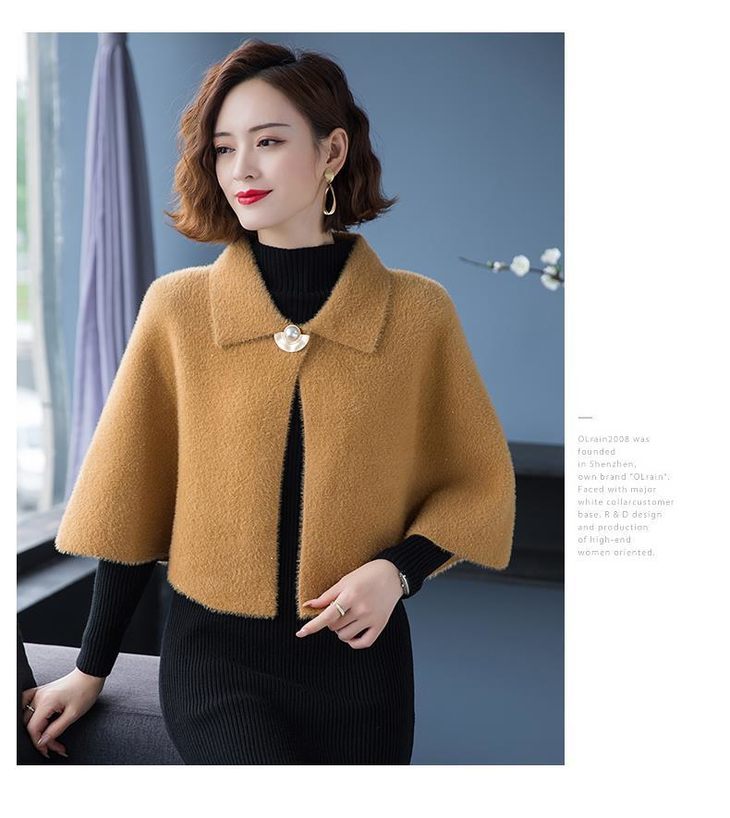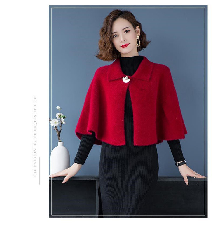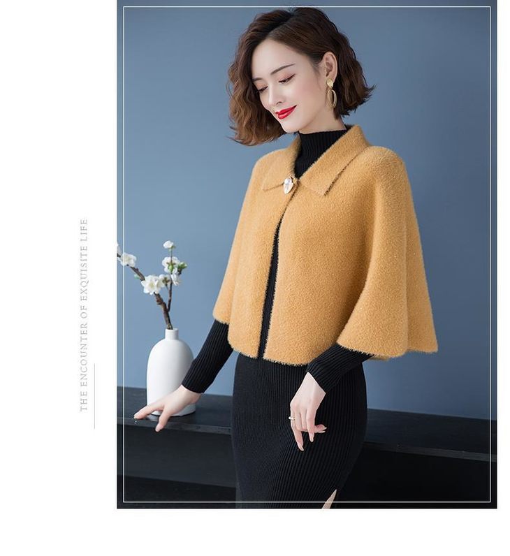 TZM-秋冬新款韩版纯色斗篷式开衫毛呢外搭