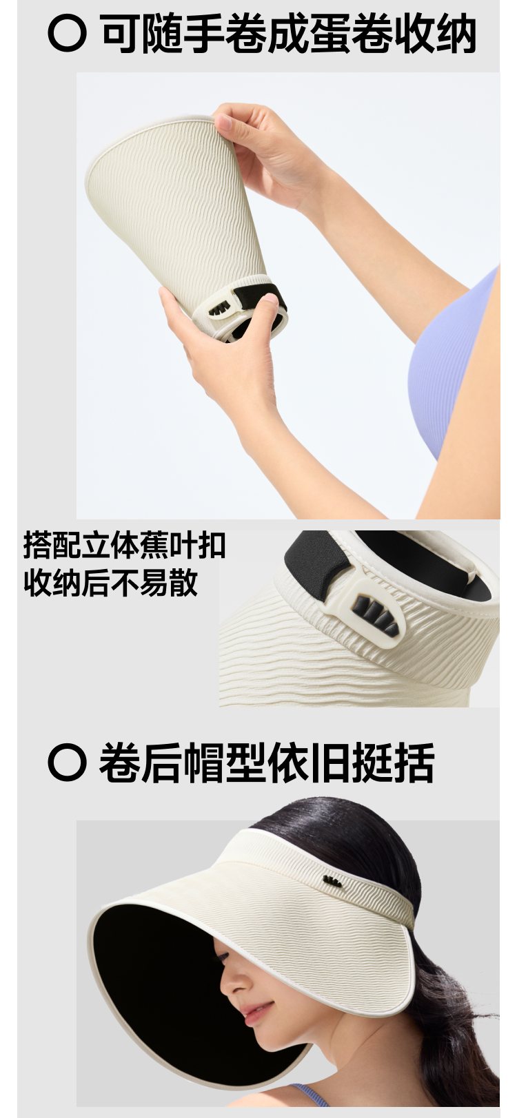 【25年新品】蕉下女士大檐黑胶空顶防晒帽BM563