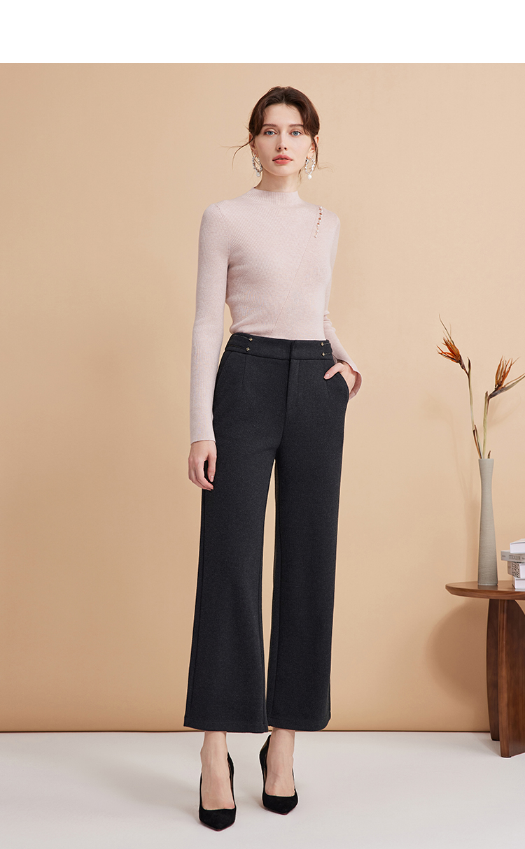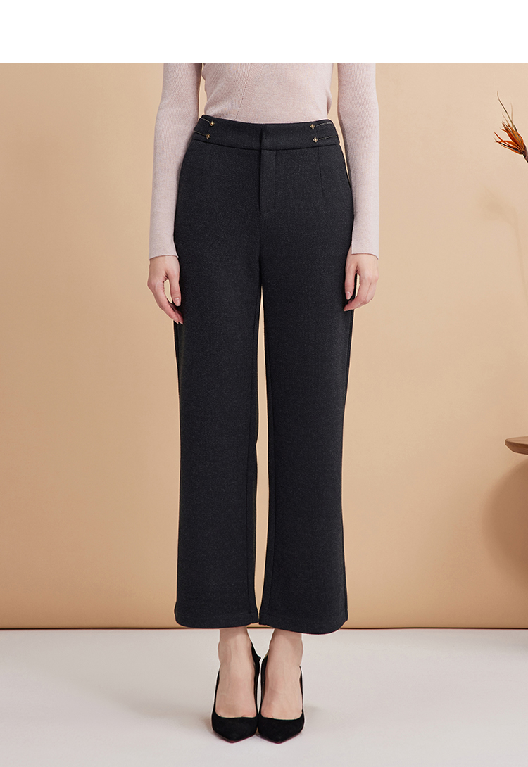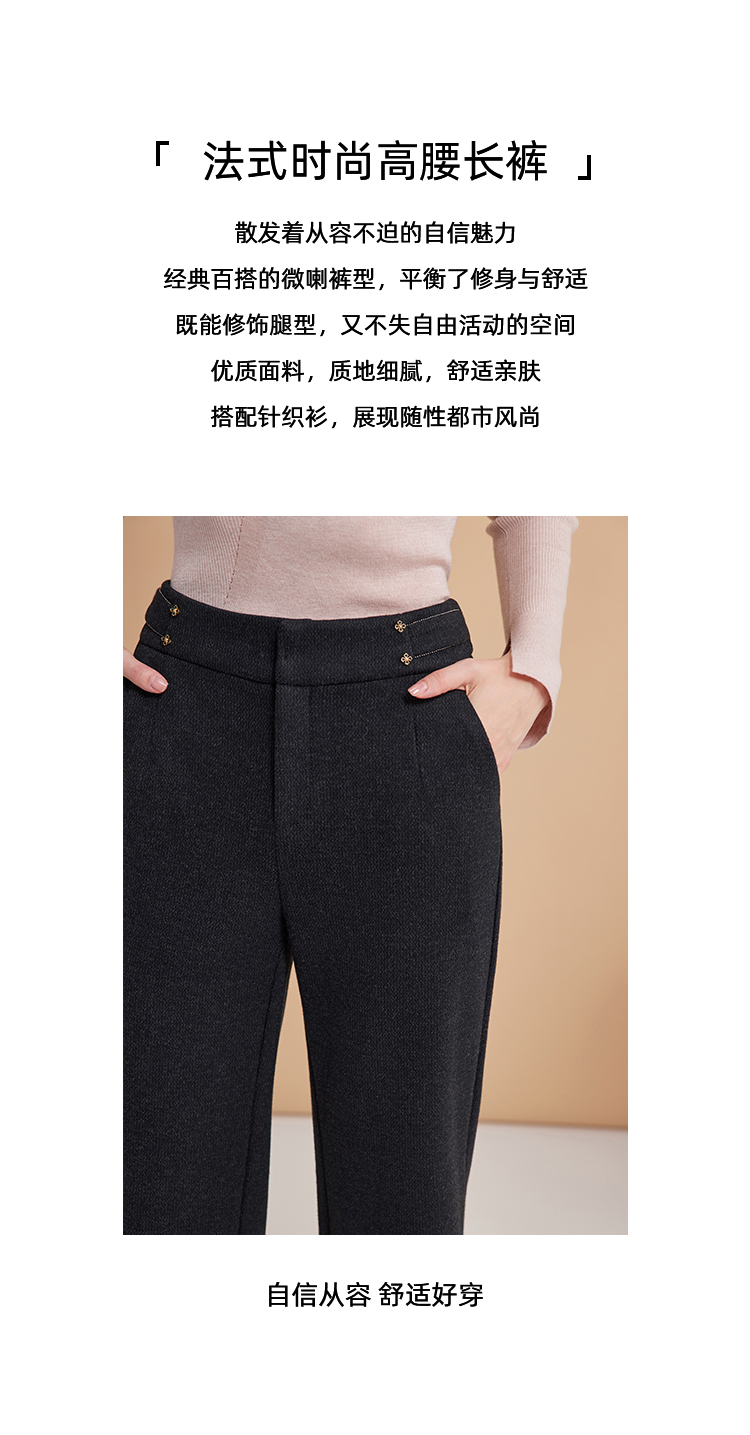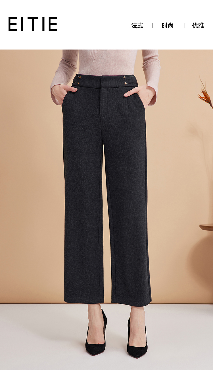 EITIE爱特爱秋季新款时尚高腰显瘦通勤干练百搭长裤D2405401