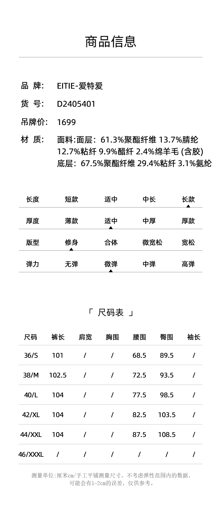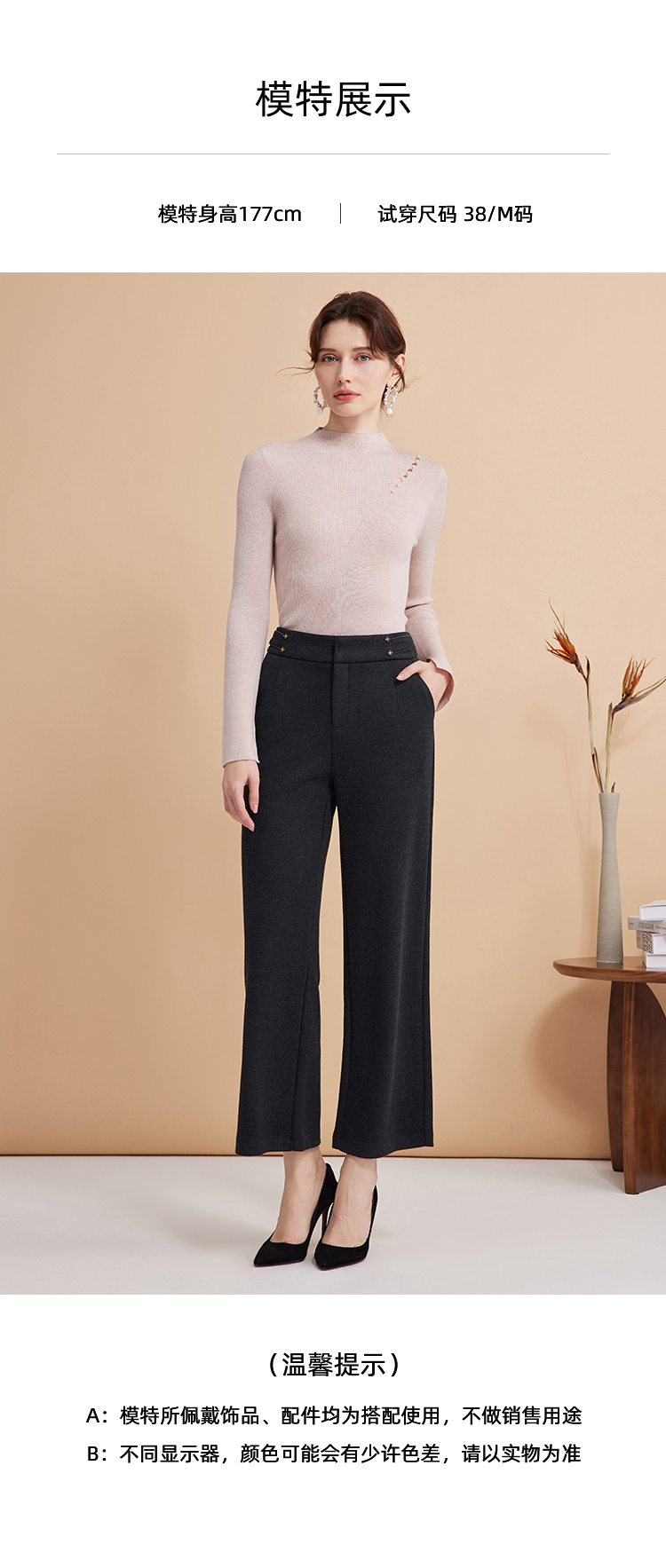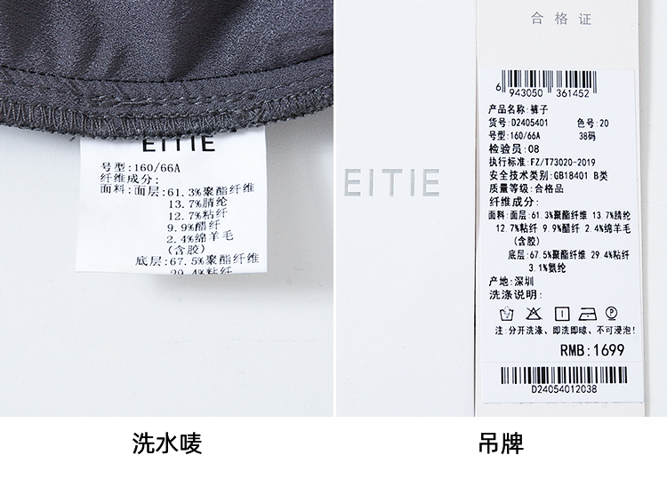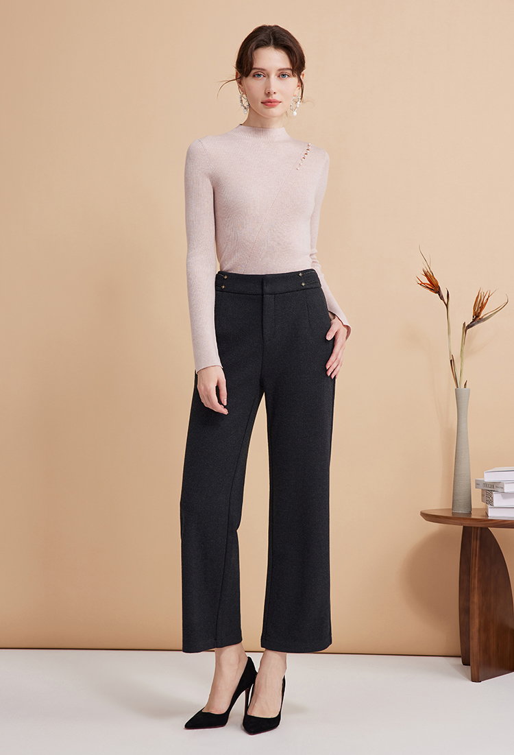 EITIE爱特爱秋季新款时尚高腰显瘦通勤干练百搭长裤D2405401