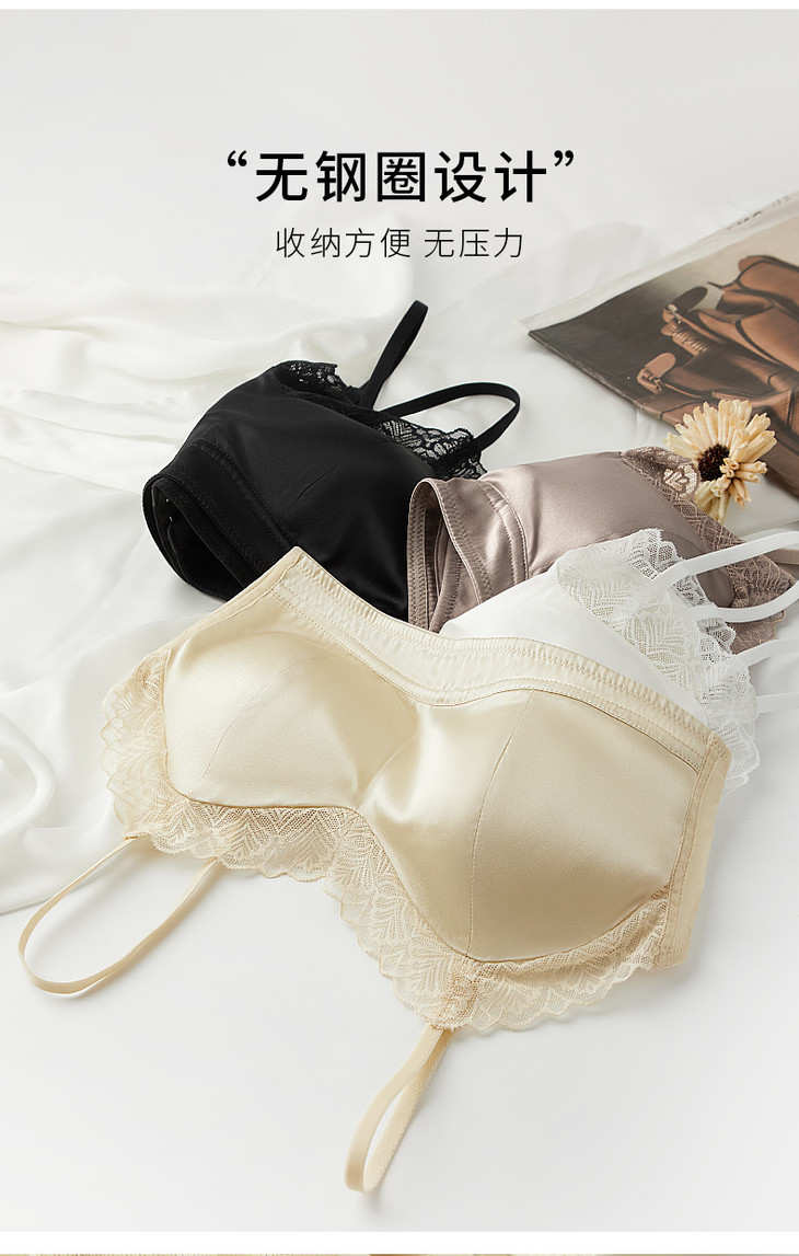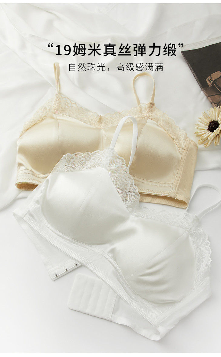 真丝缎面蕾丝性感内衣,无钢圈桑蚕丝大胸显小文胸TG02S231