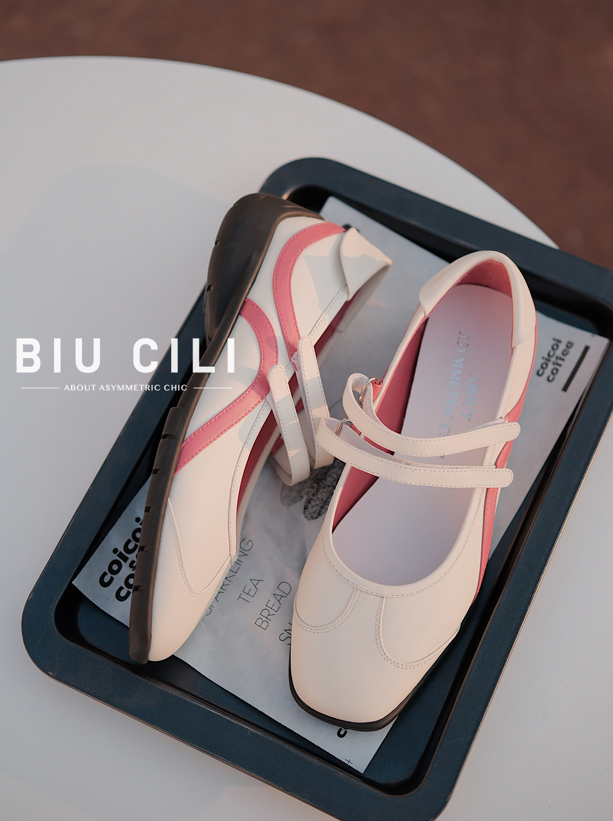 BIUCILI原创设计 反绒运动风玛丽珍浅口魔术贴休闲单鞋
