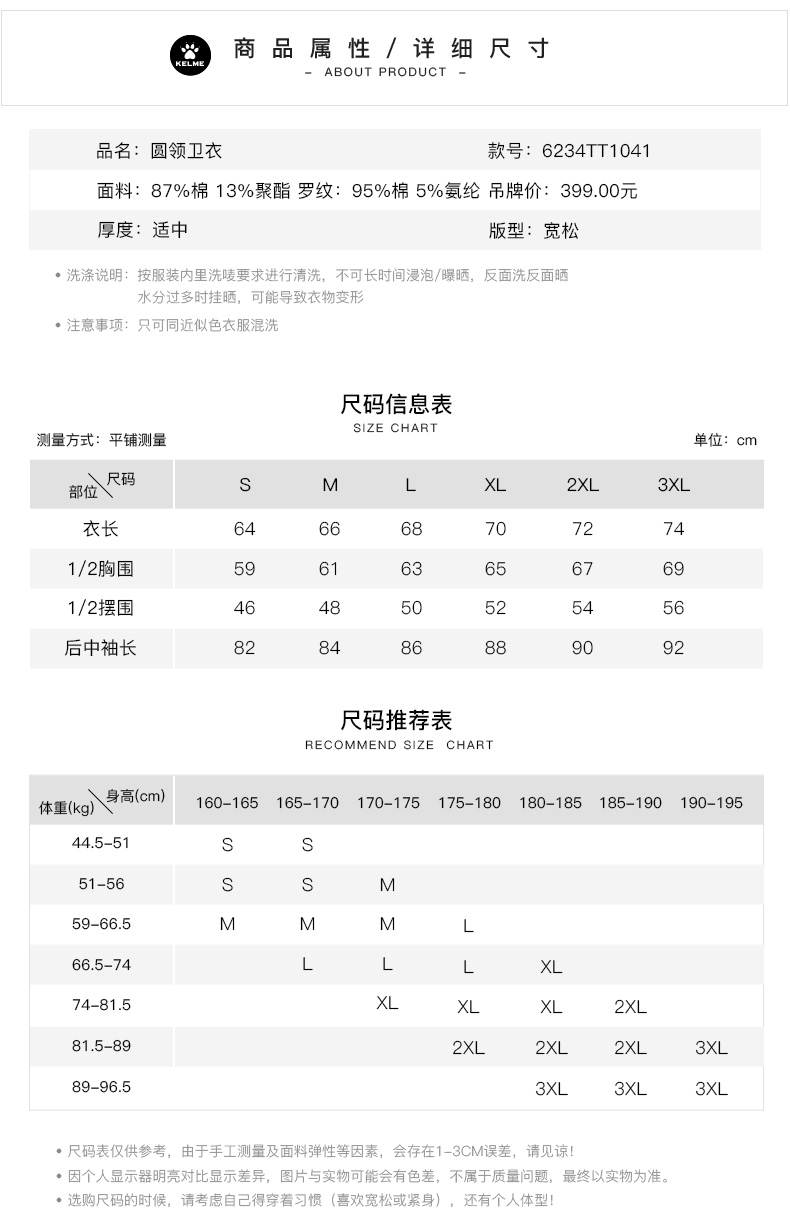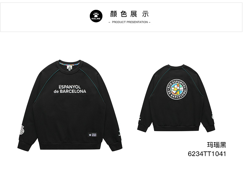 卡尔美圆领卫衣秋新款休闲百搭上衣潮牌情侣长袖T恤外套