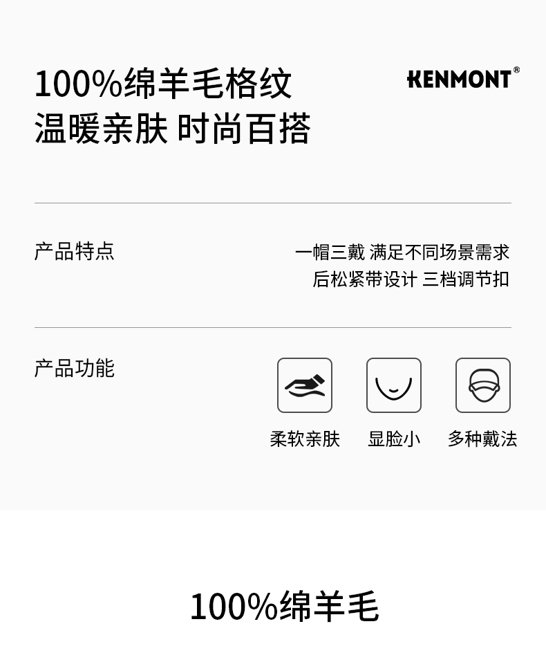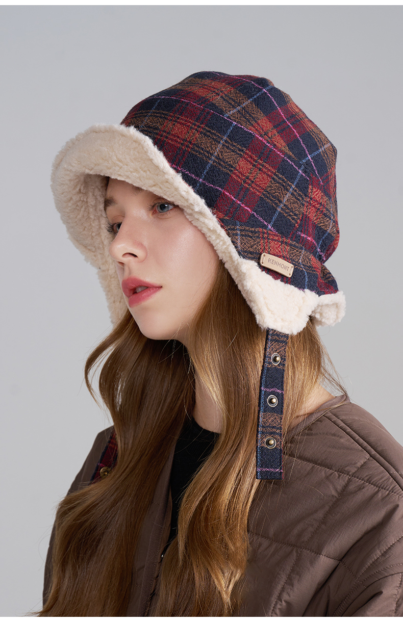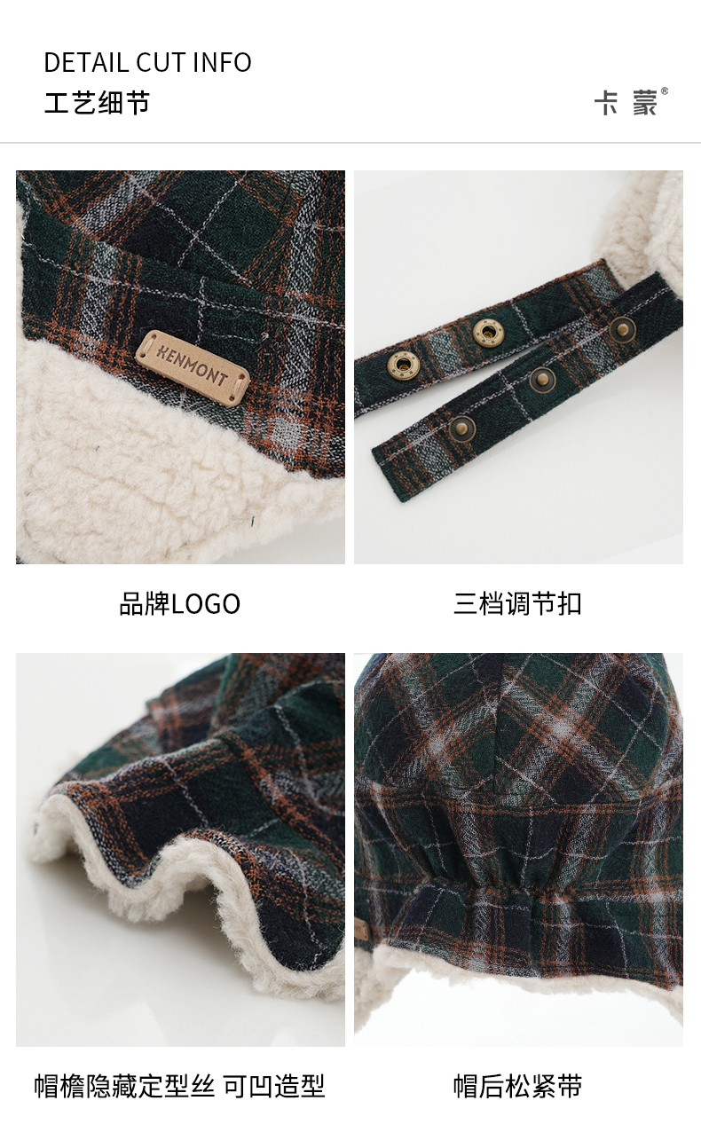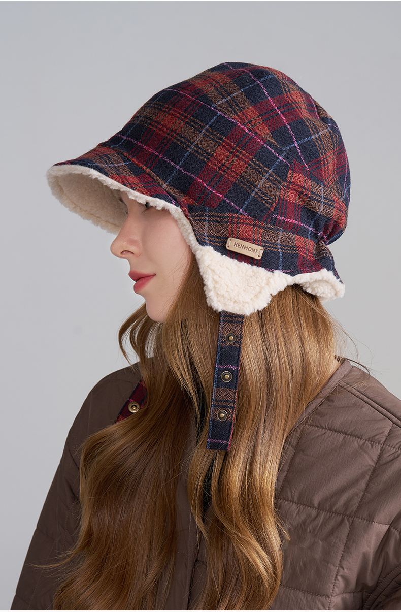 卡蒙绵羊毛格纹时尚保暖帽KM-5274