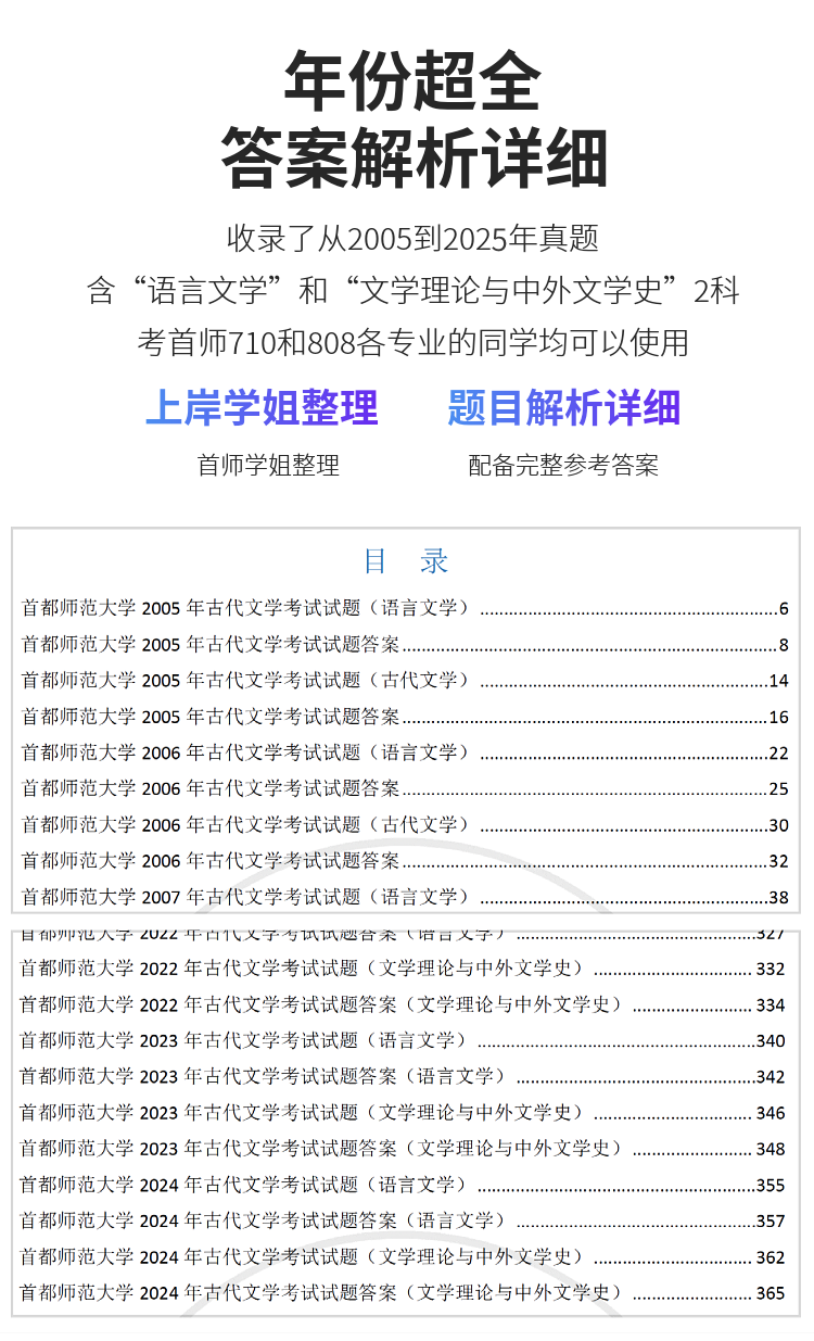 2027版首都师范大学文学专业历年真题及答案详解2005-2027年两科共44套含视频课程全年答疑
