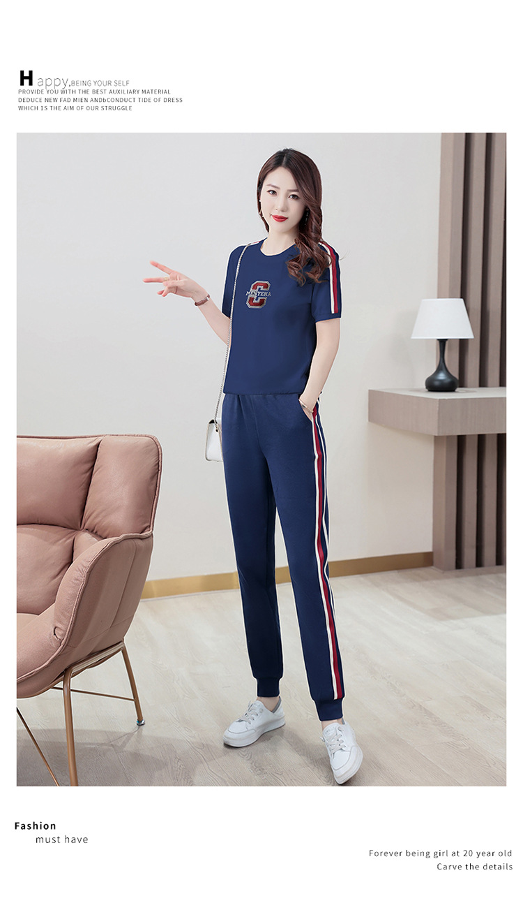 HR MYH911修身显瘦运动套装时尚气质撞色拼接两件套