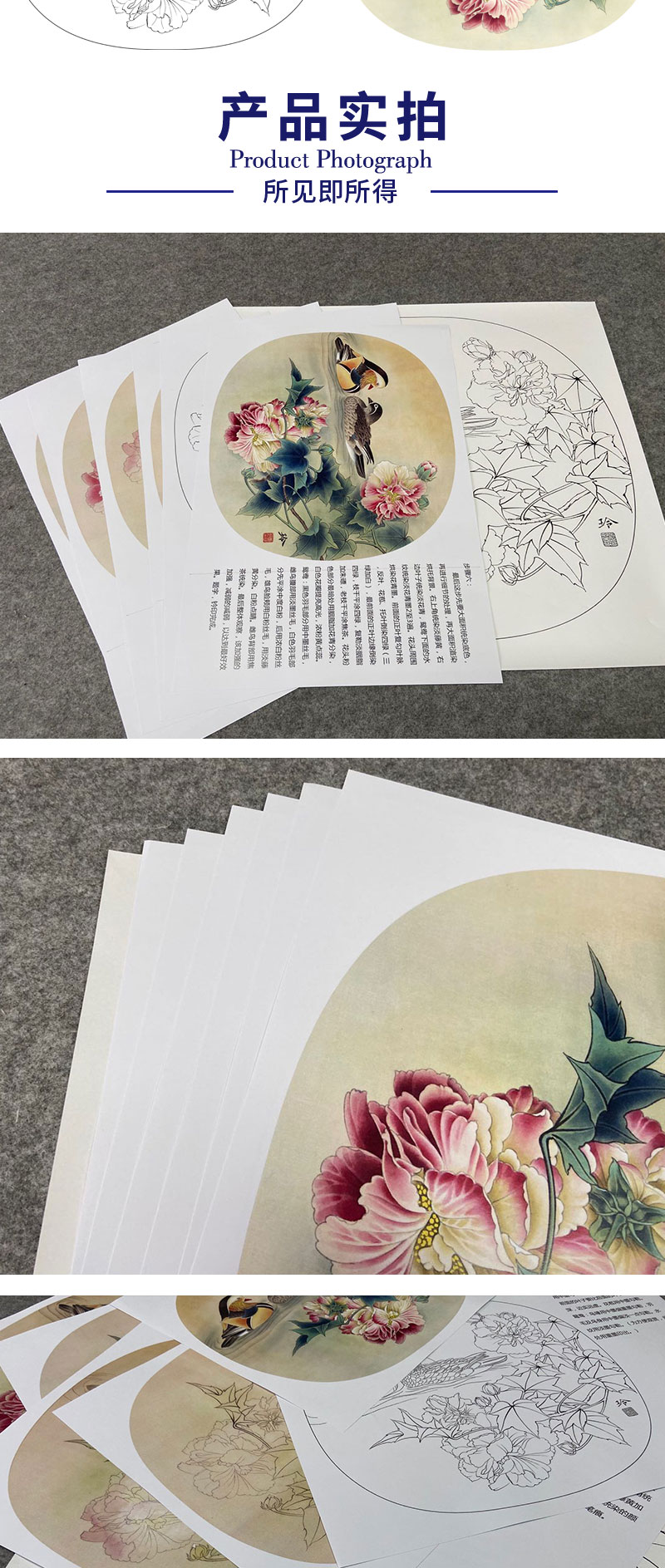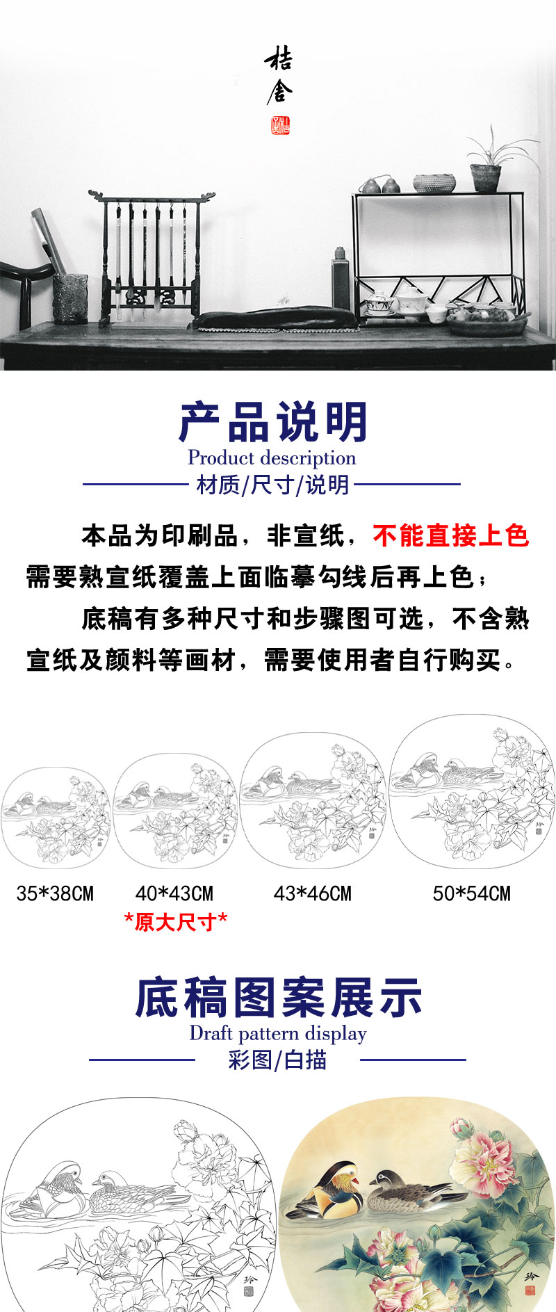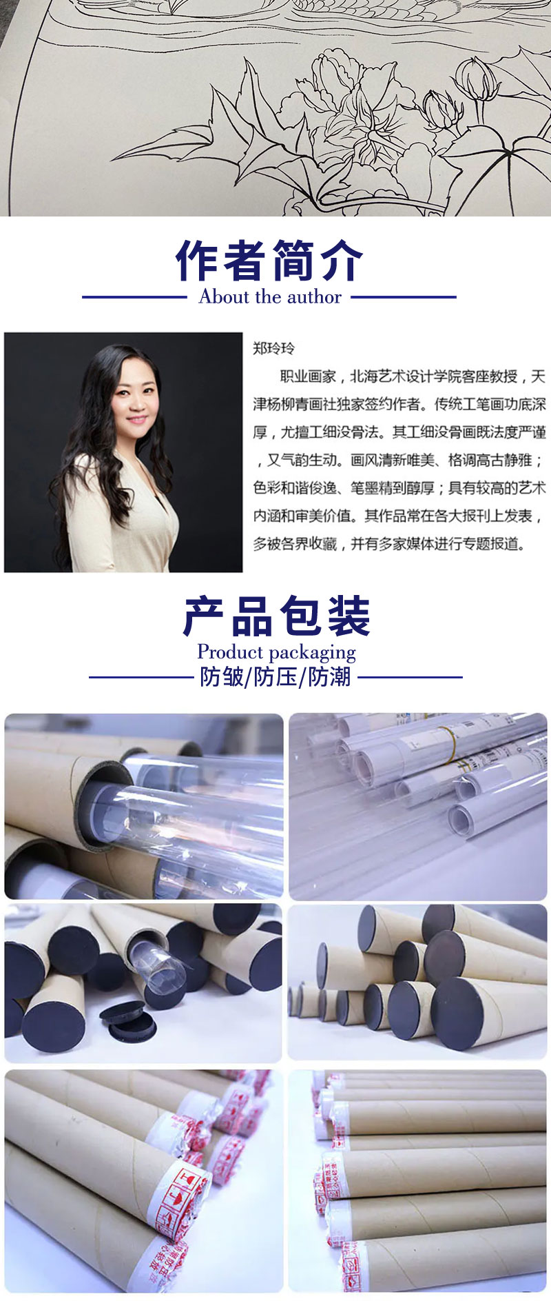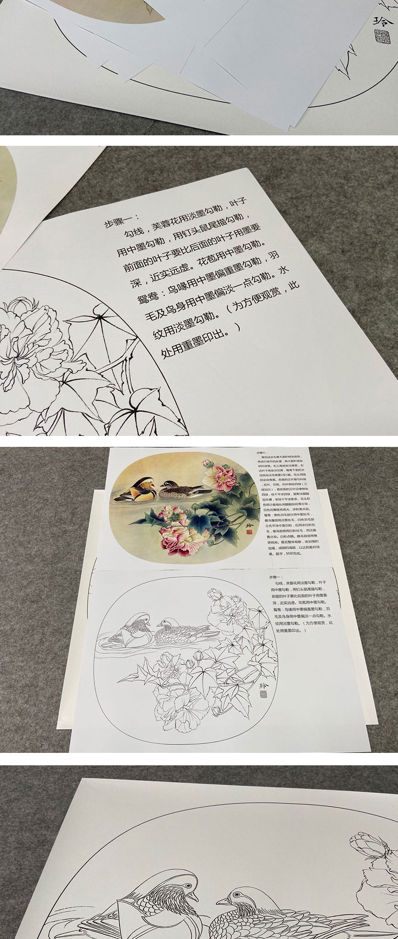 【有步骤、大彩图】郑玲玲工笔画白描底稿小品《芙蓉鸳鸯图》初学者临摹花鸟线稿ZL13