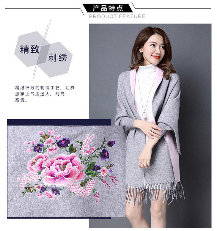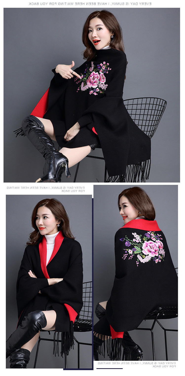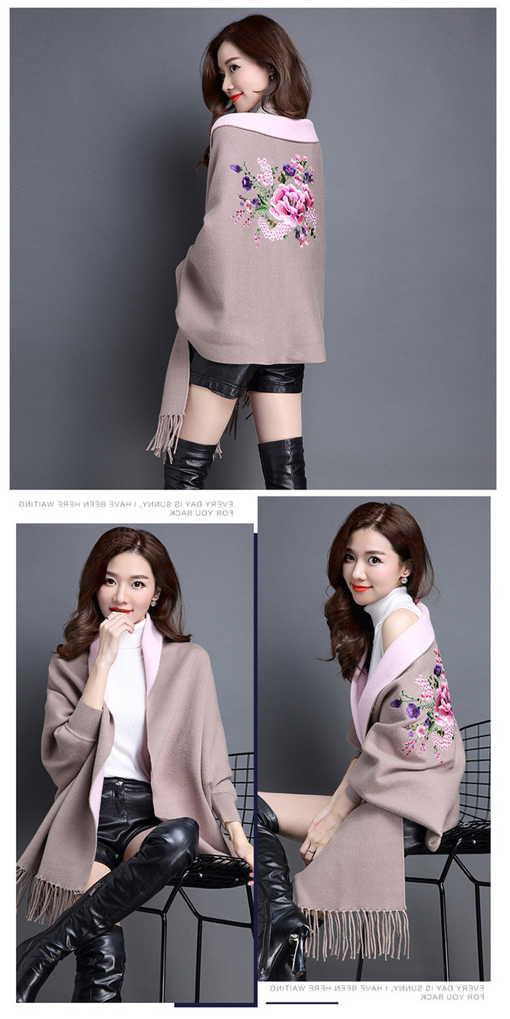 YSFZ新款双面可穿宽松流苏带袖刺绣斗篷披风