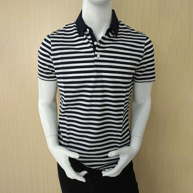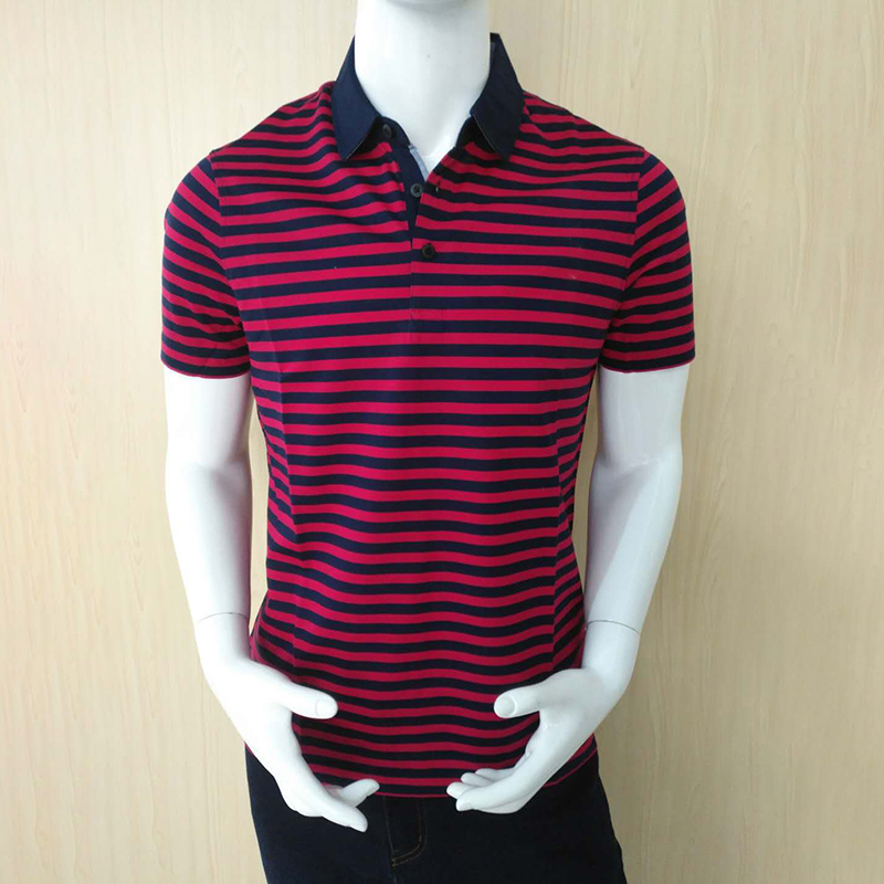 男士间条纯棉翻领短袖恤衫 17WD-12
