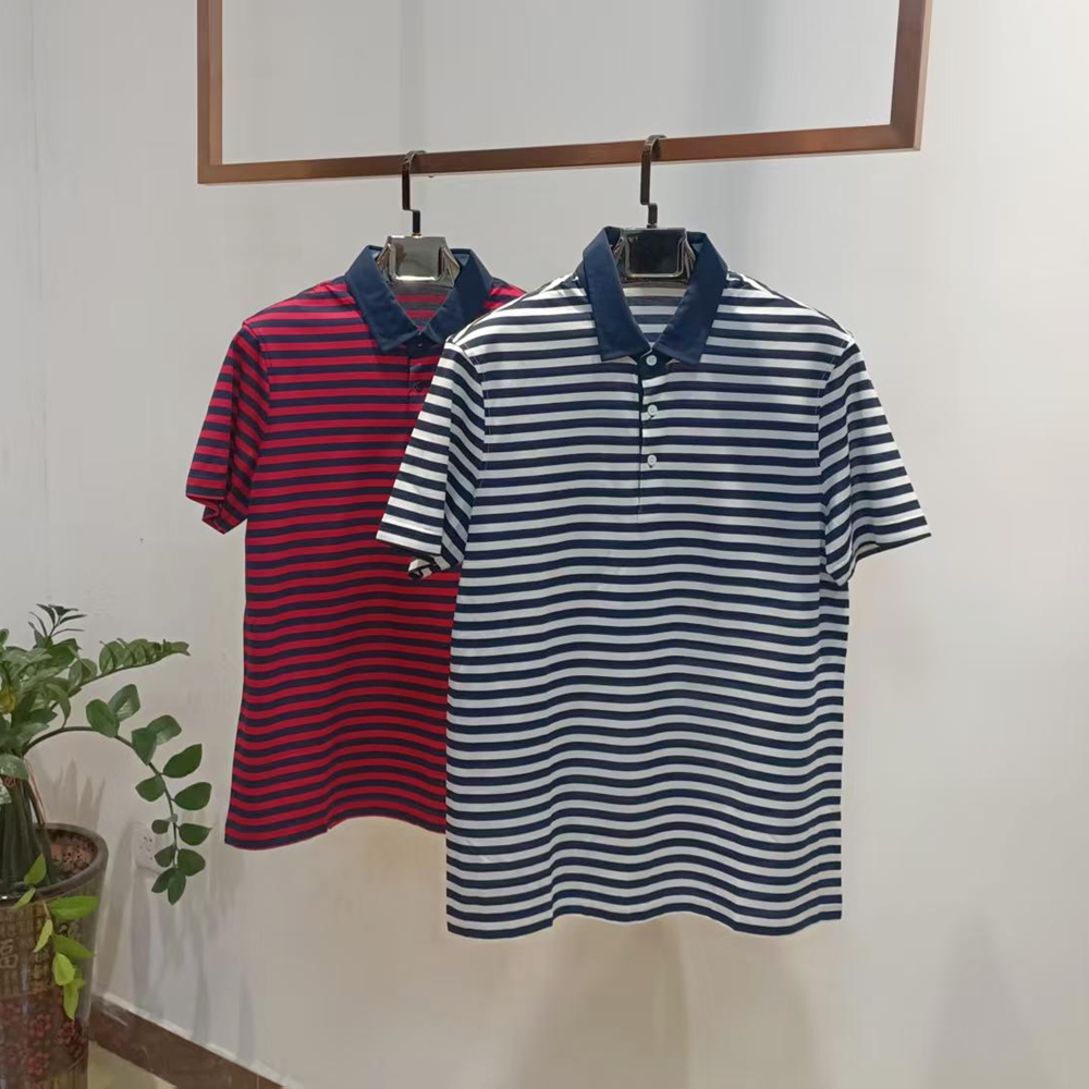 男士间条纯棉翻领短袖恤衫  17WD-12 商品缩略图0 男士间条纯棉翻领短袖恤衫  17WD-12 商品缩略图1