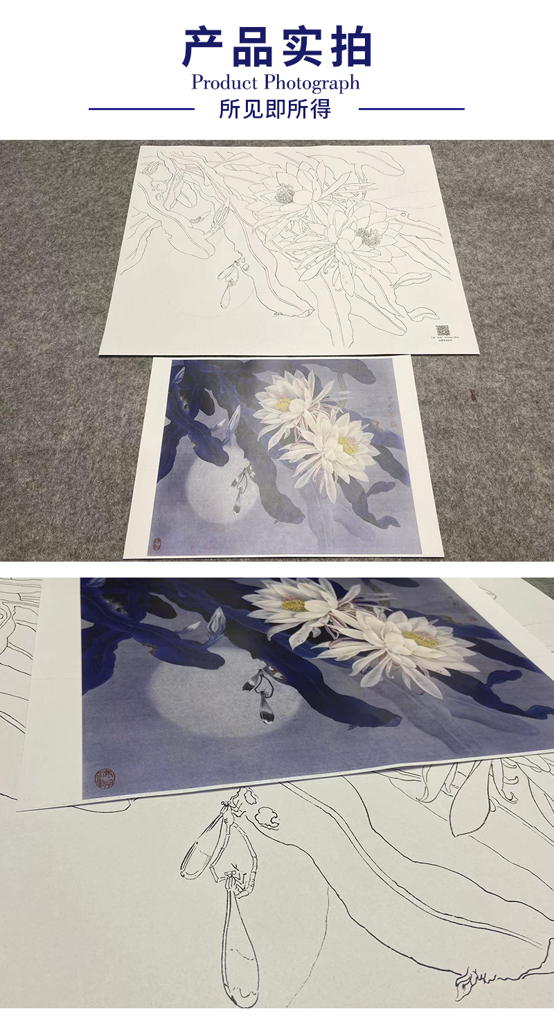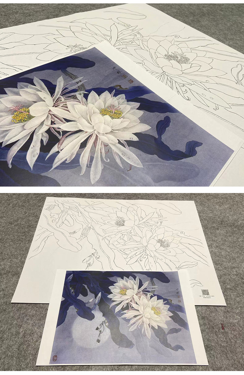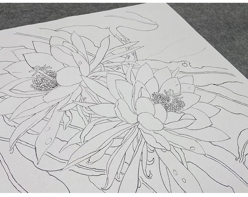 周中耀工笔画白描底稿昙花《影逐情浓》小品临摹勾线高清打印稿ZT17