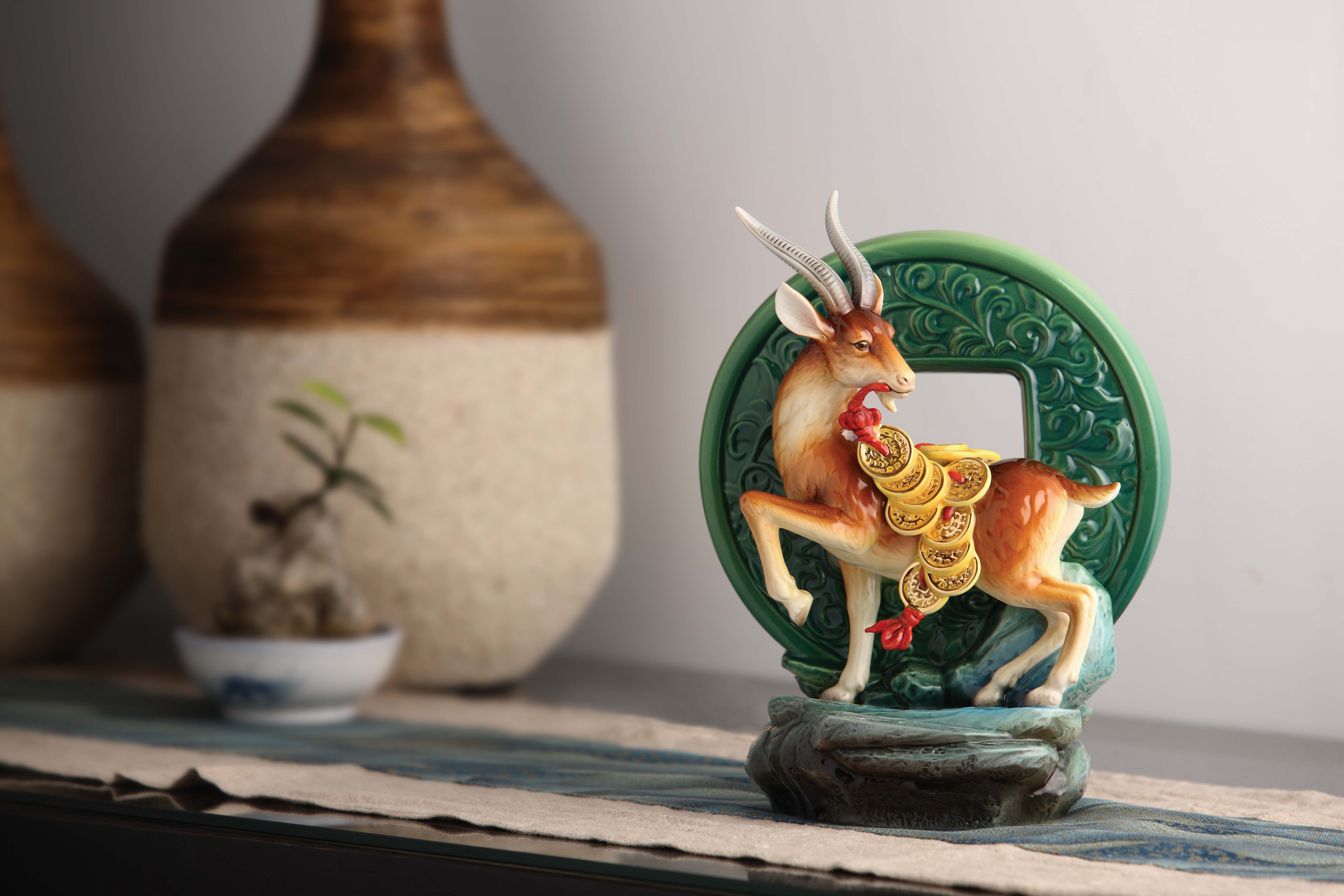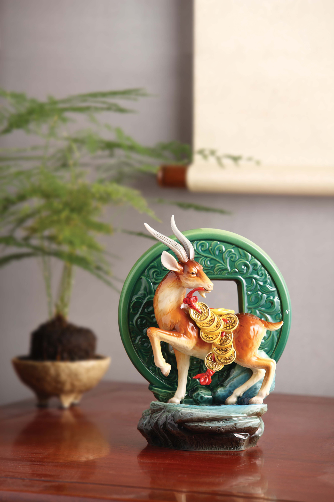 【彼达思】法蓝瓷 FZ03272钱来绵绵 羊摆饰17*10.3*21.8cm