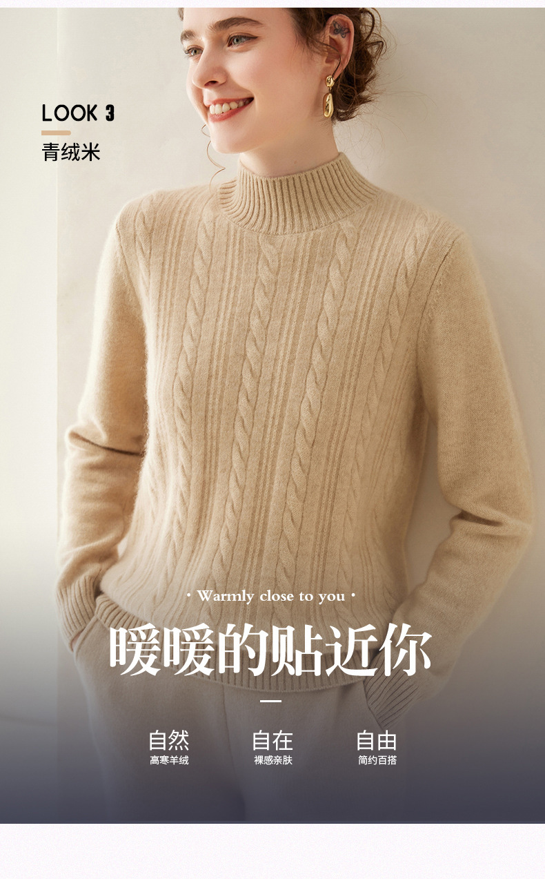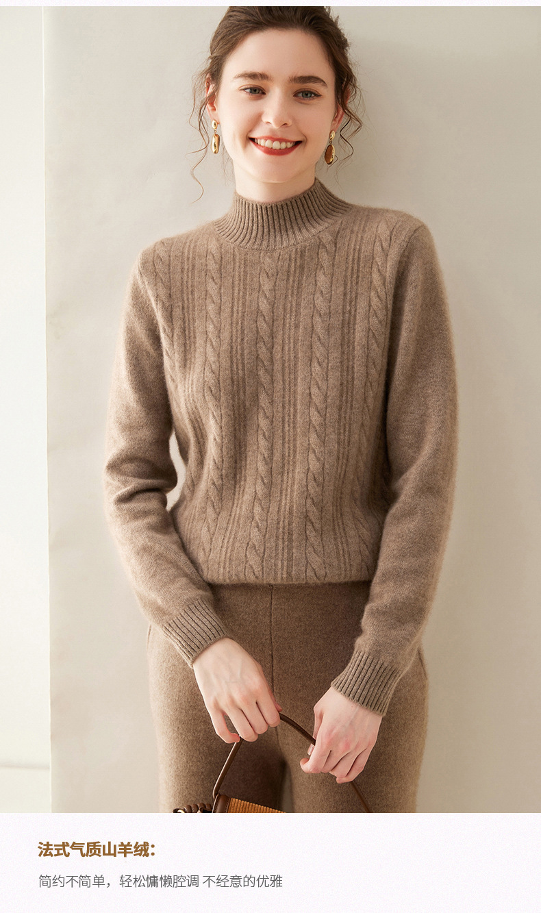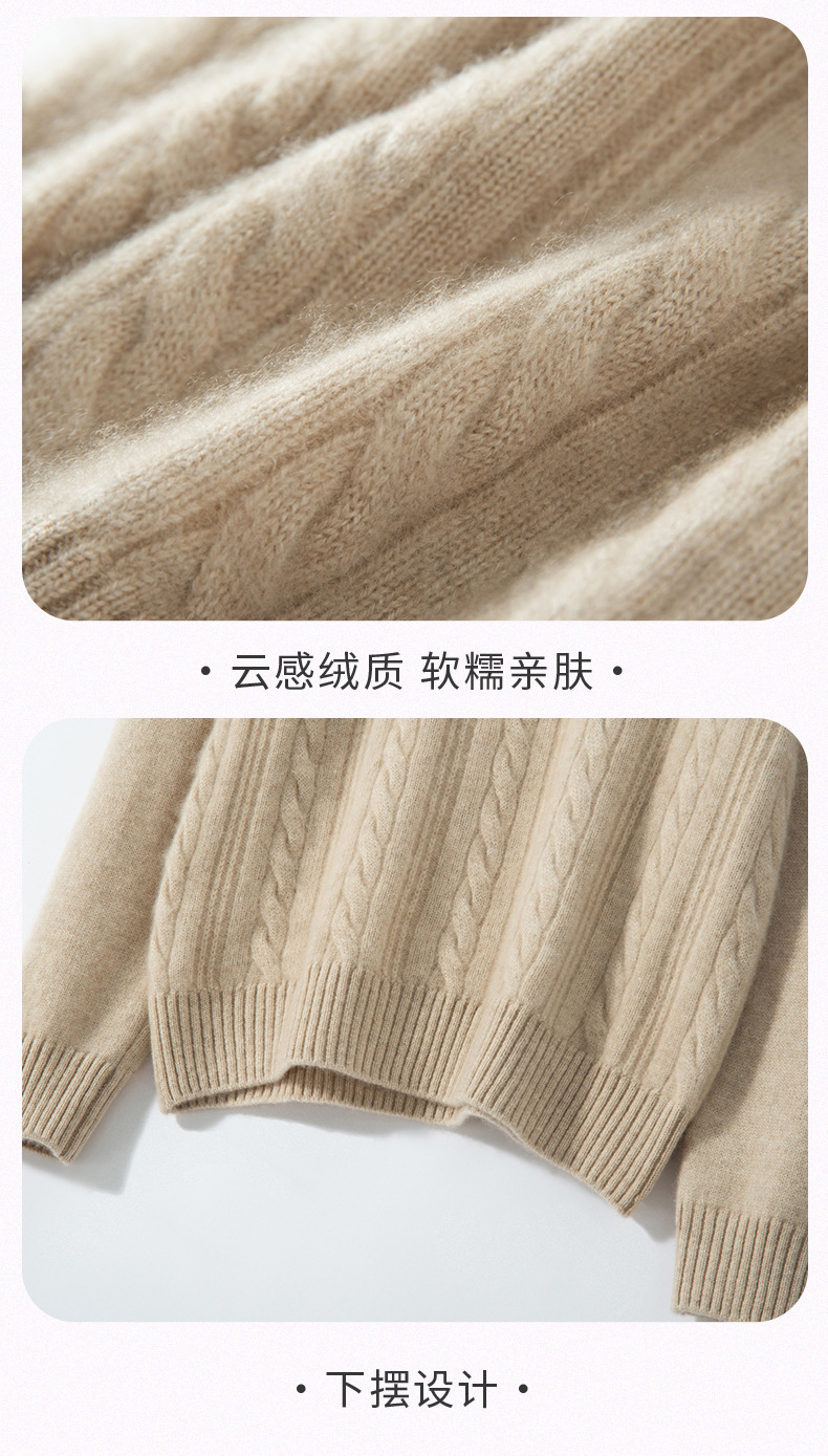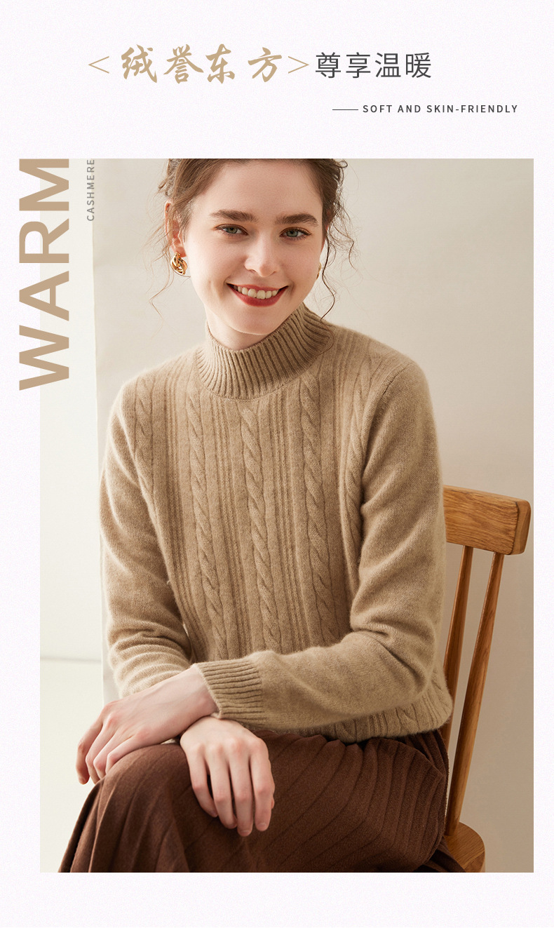【自】全新升级【铂金会员588/天猫799/差价211】(33830) 洛诗琳双股加厚山羊绒衫保暖正肩小麻花长袖套头半高领简约针织打底衫