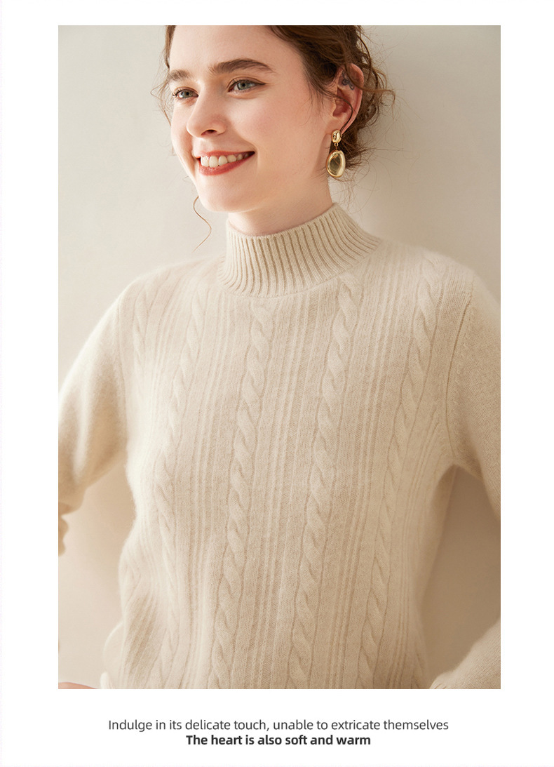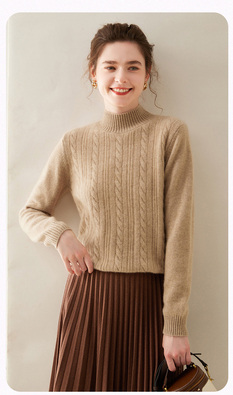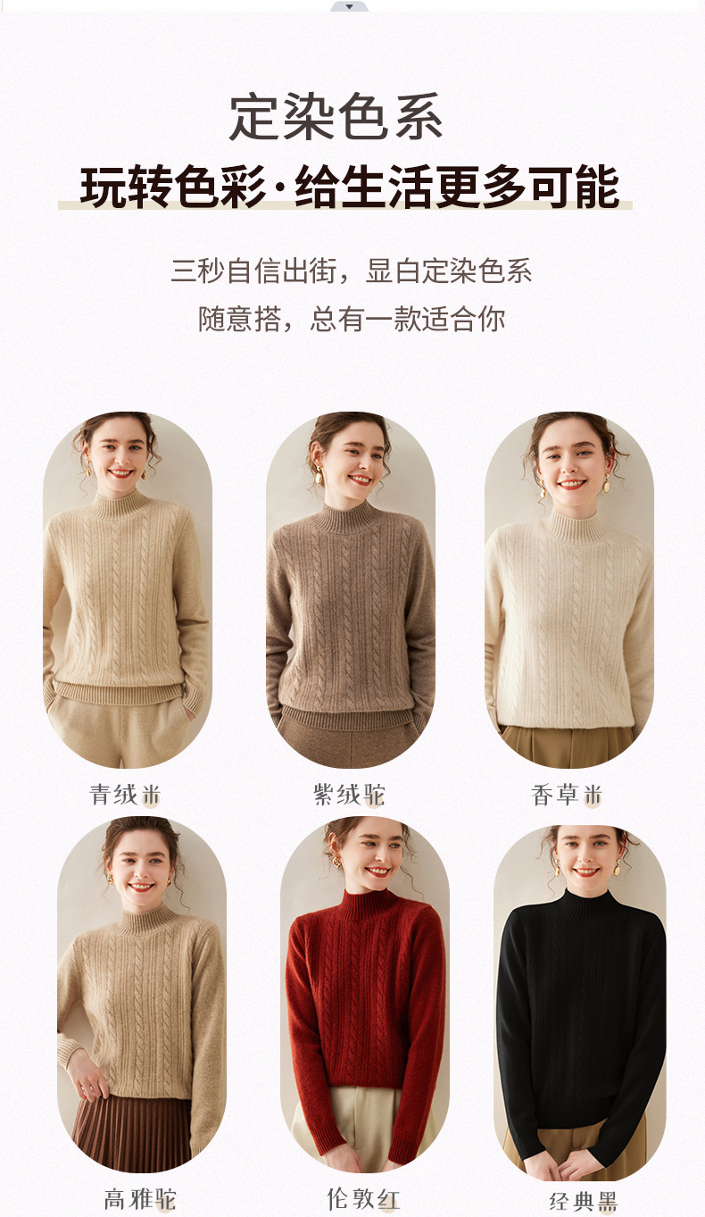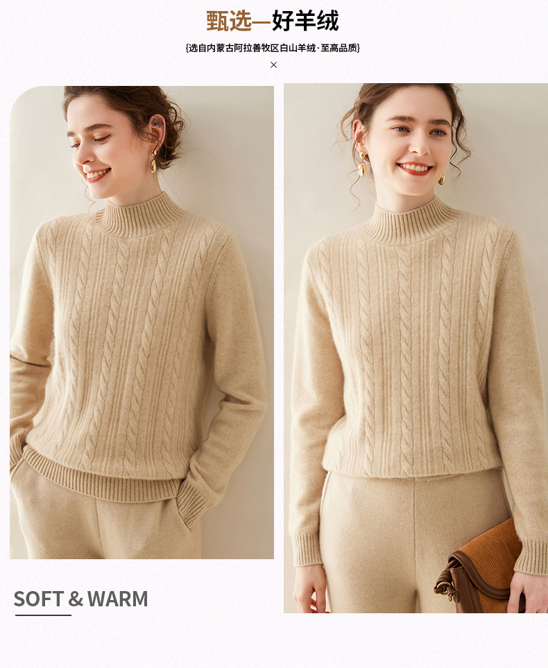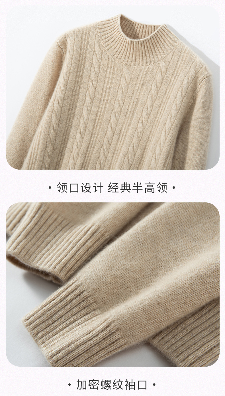 【自】全新升级【铂金会员588/天猫799/差价211】(33830) 洛诗琳双股加厚山羊绒衫保暖正肩小麻花长袖套头半高领简约针织打底衫