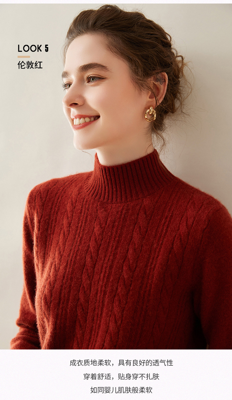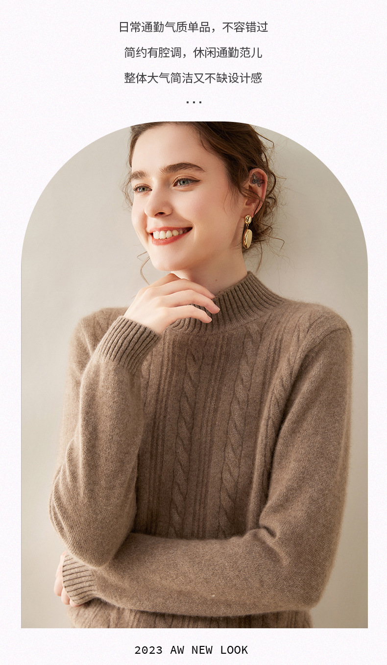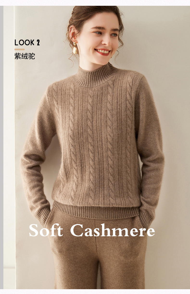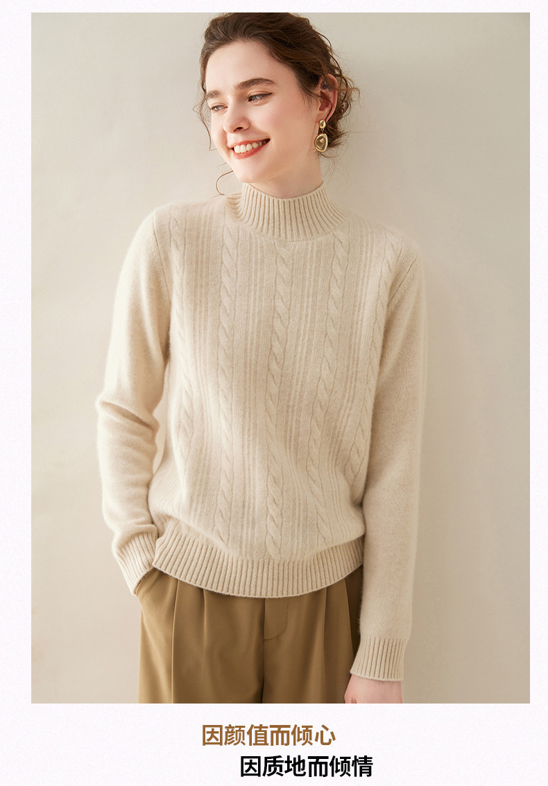 【自】全新升级【铂金会员588/天猫799/差价211】(33830) 洛诗琳双股加厚山羊绒衫保暖正肩小麻花长袖套头半高领简约针织打底衫