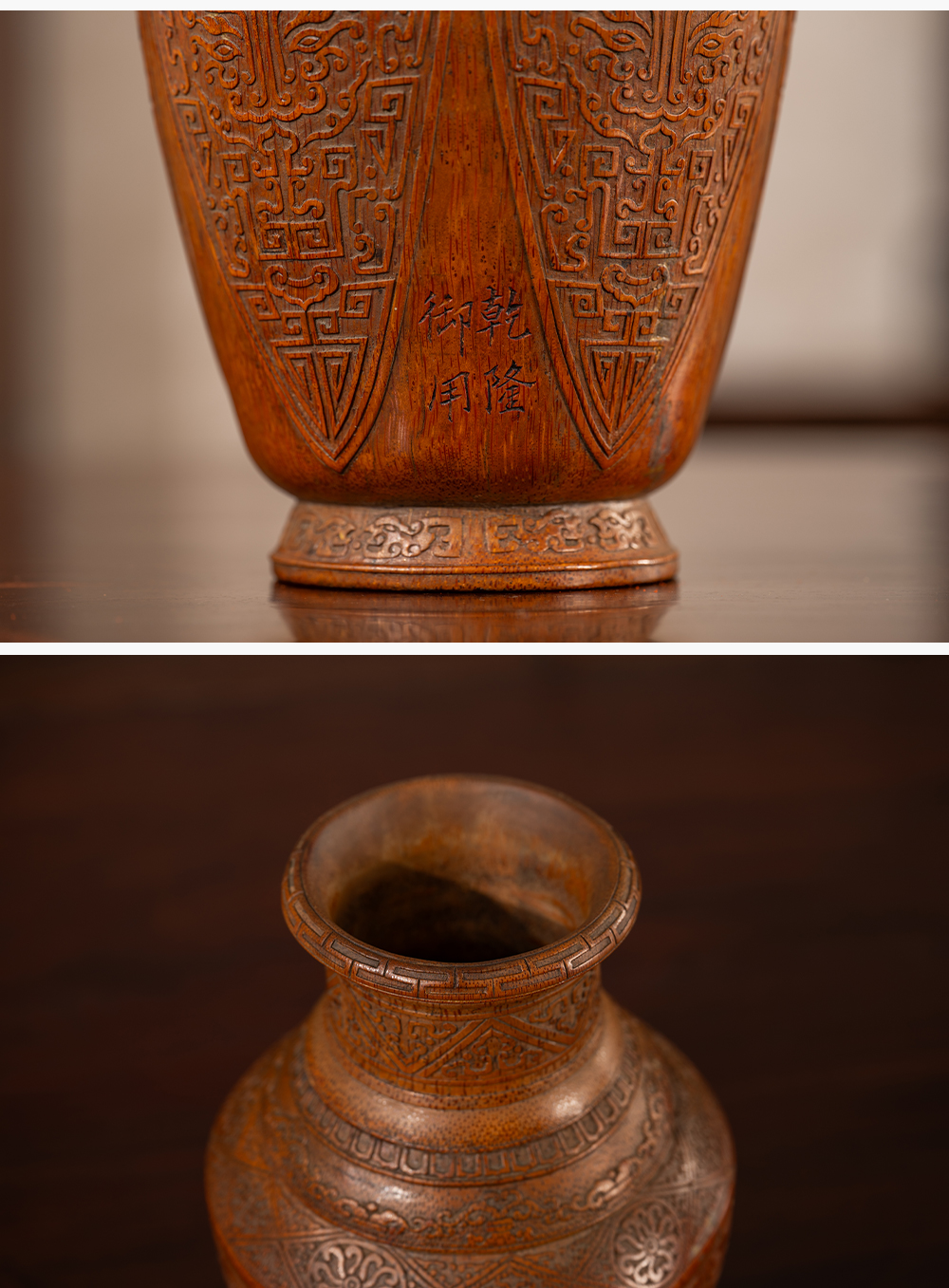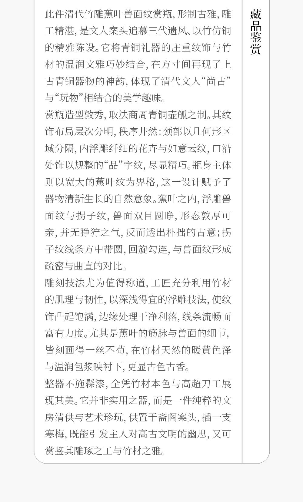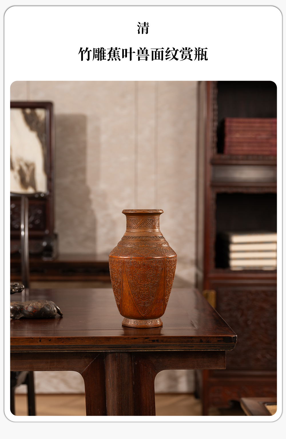 清 竹雕蕉叶兽面纹赏瓶