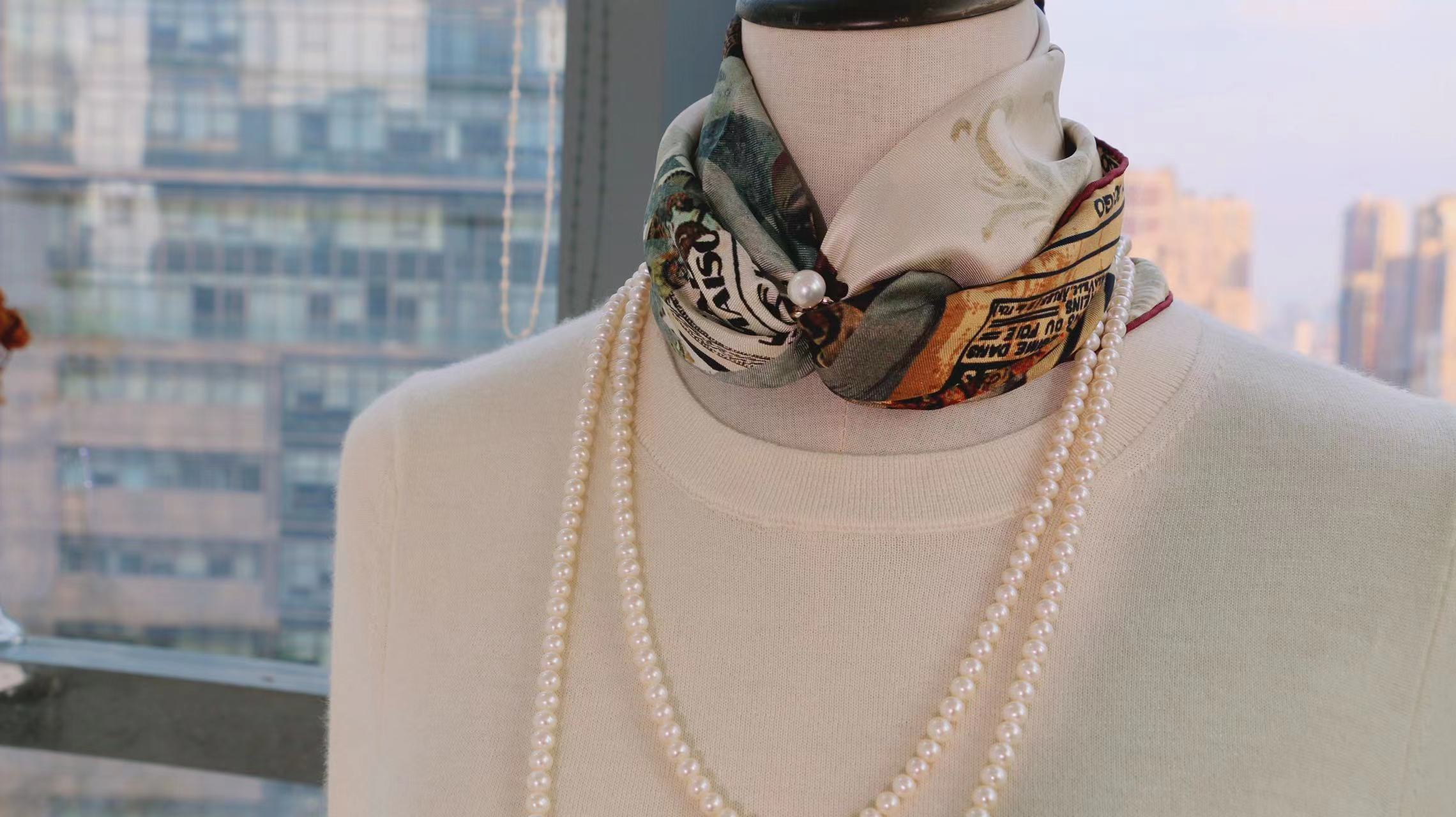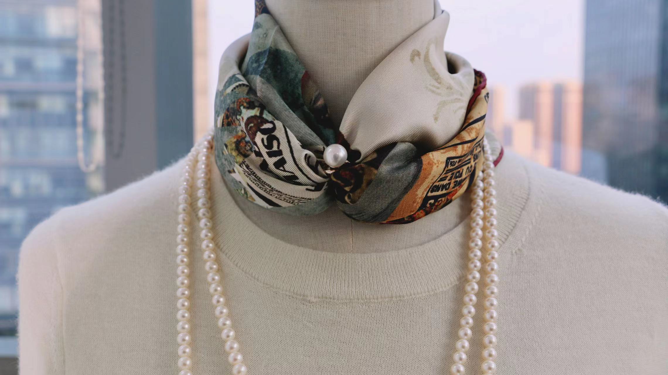 丝巾扣珍珠尺寸:9-10mm,淡水珠