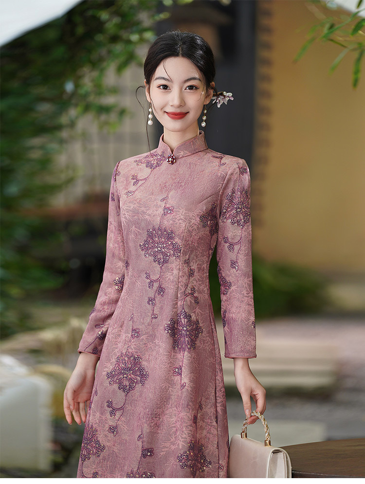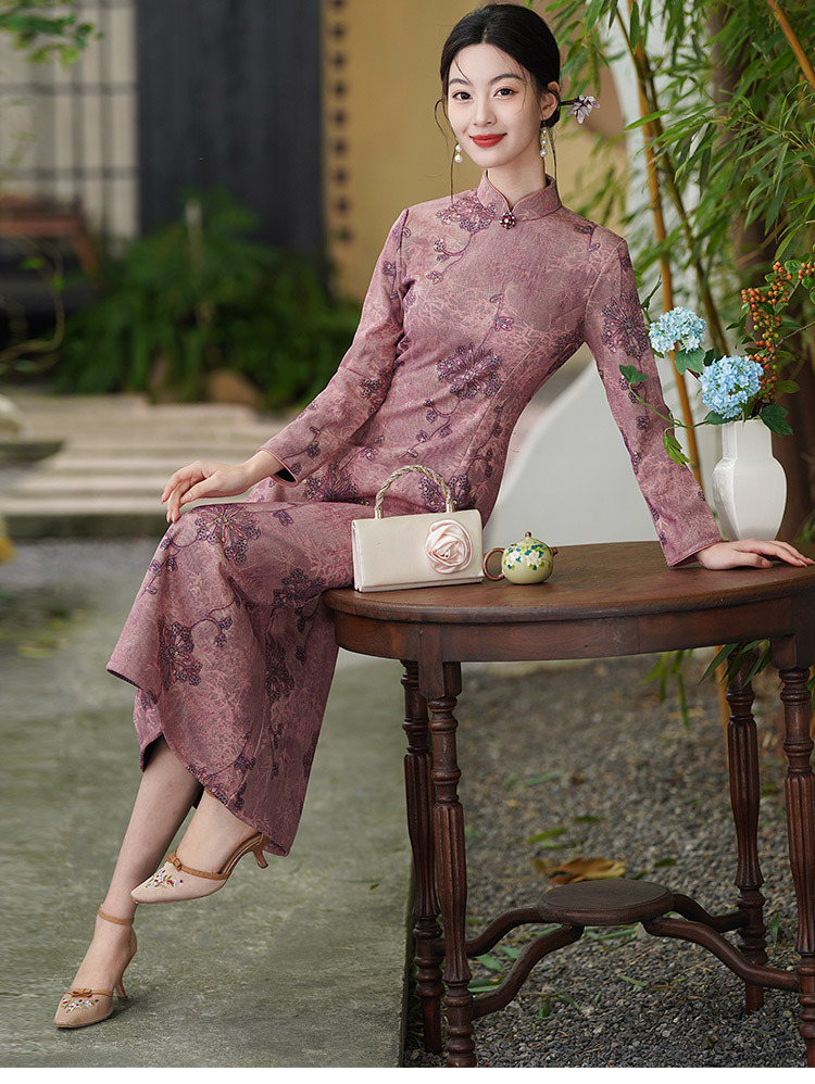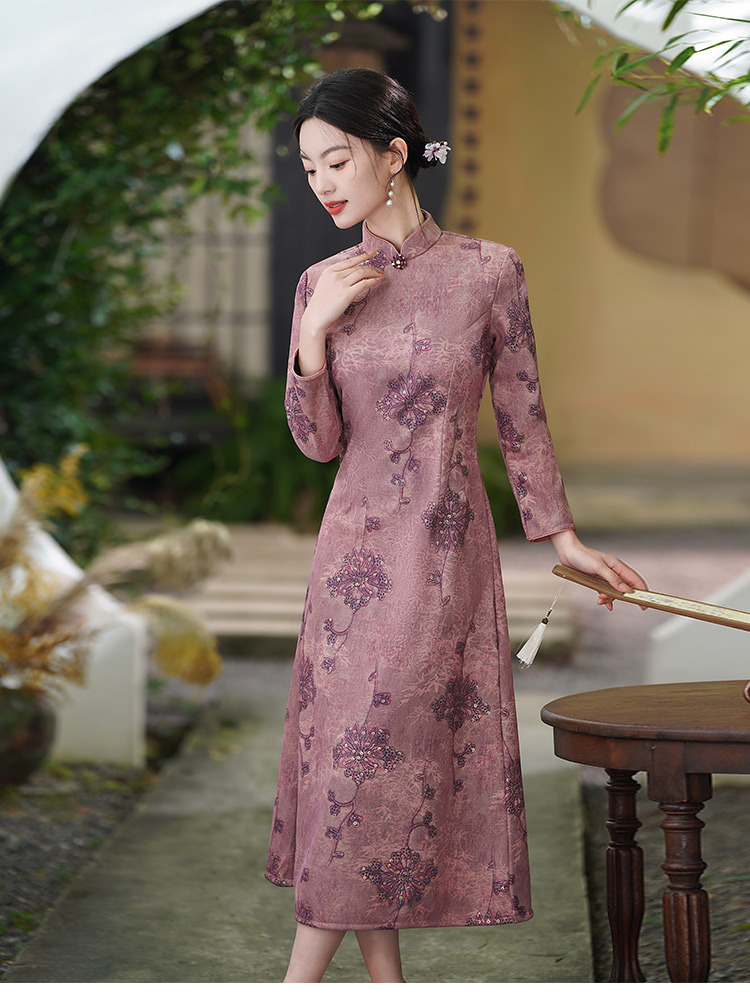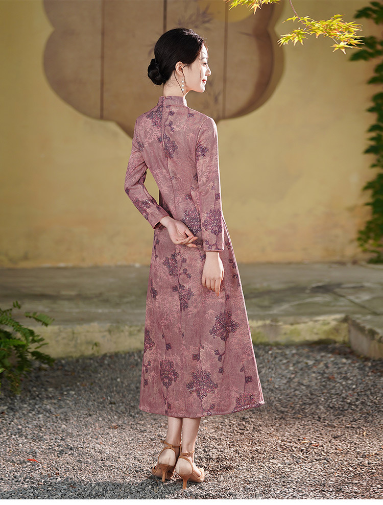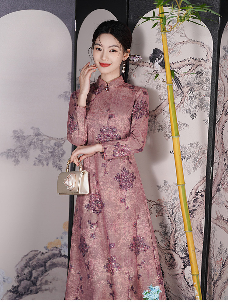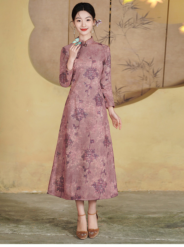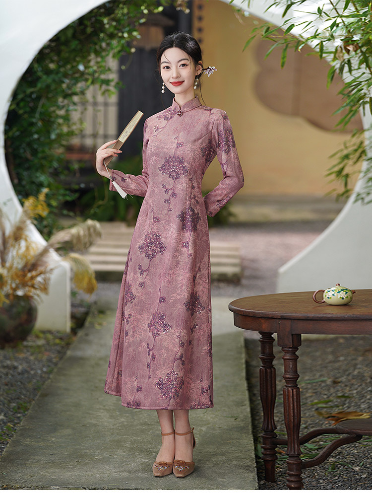 SC22653红色国风新中式秋季长袖改良旗袍2025新款女复古妈妈连衣裙秋冬装