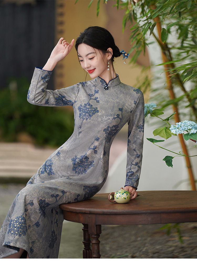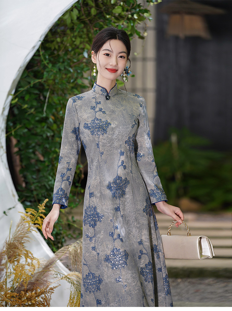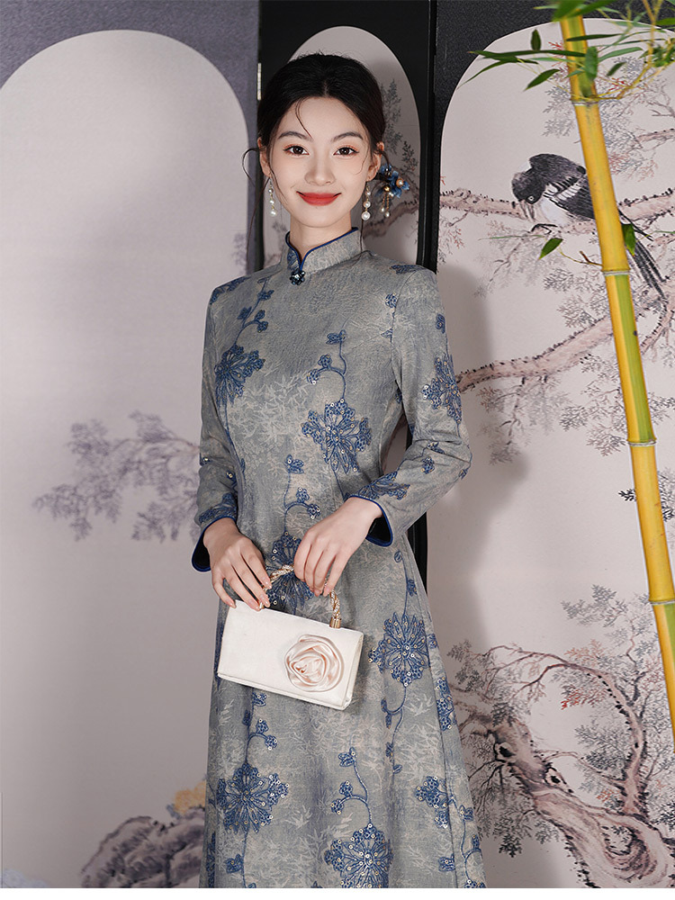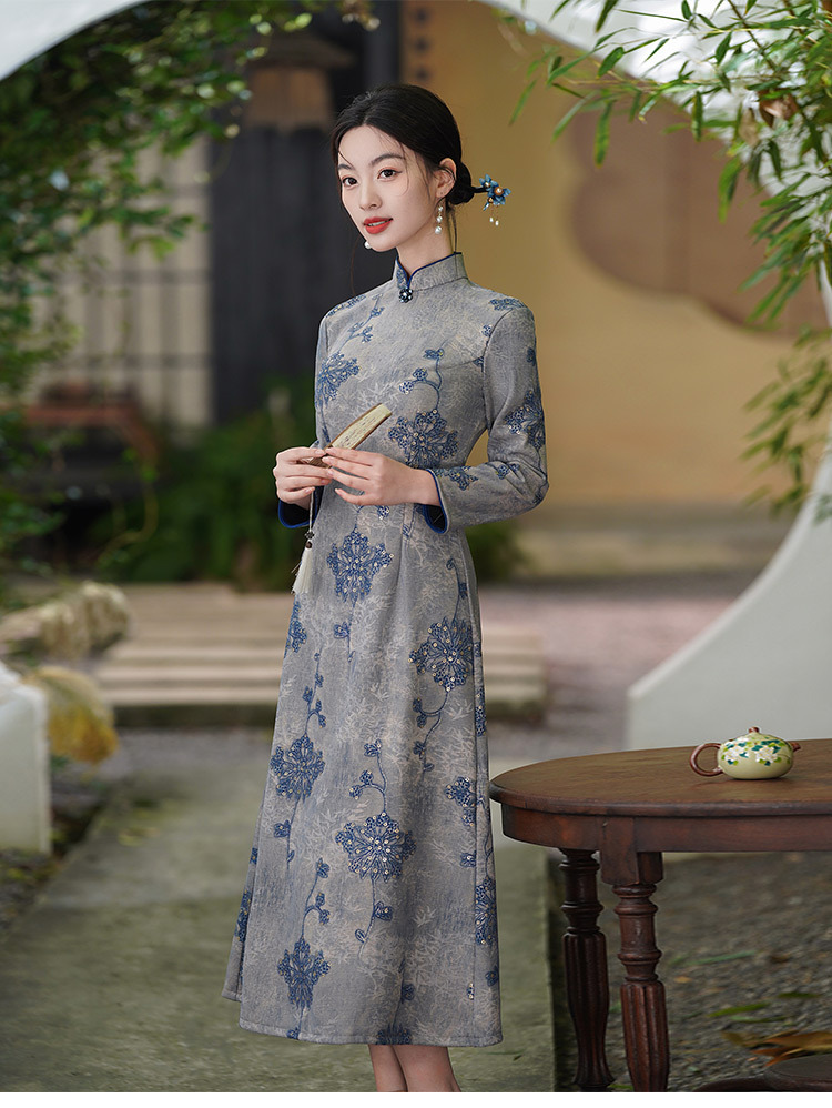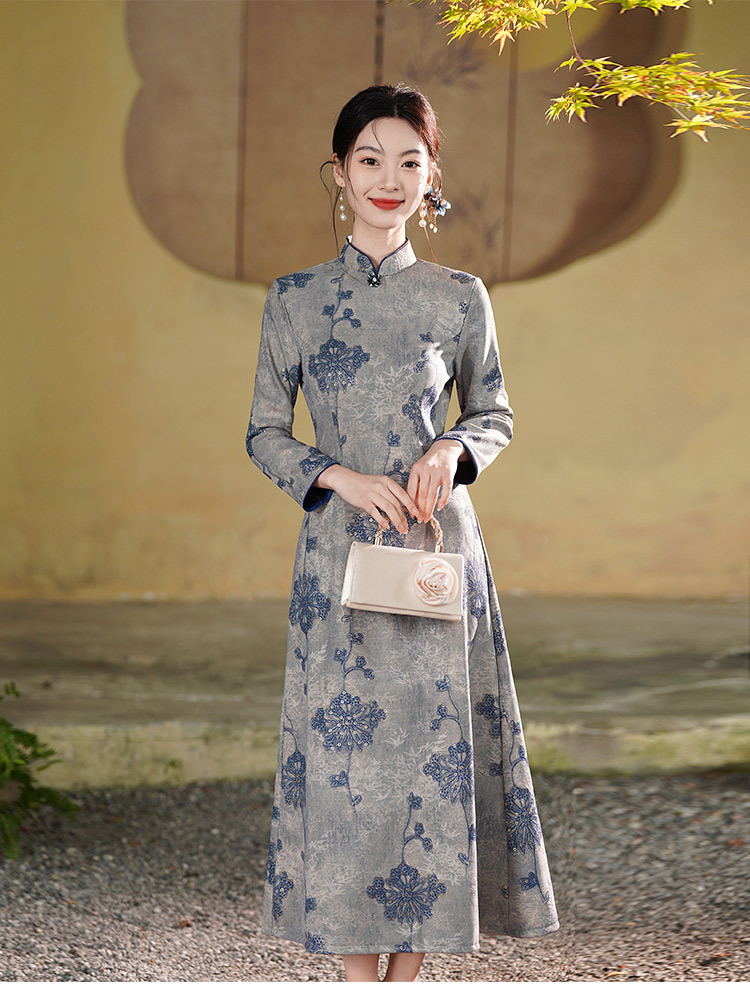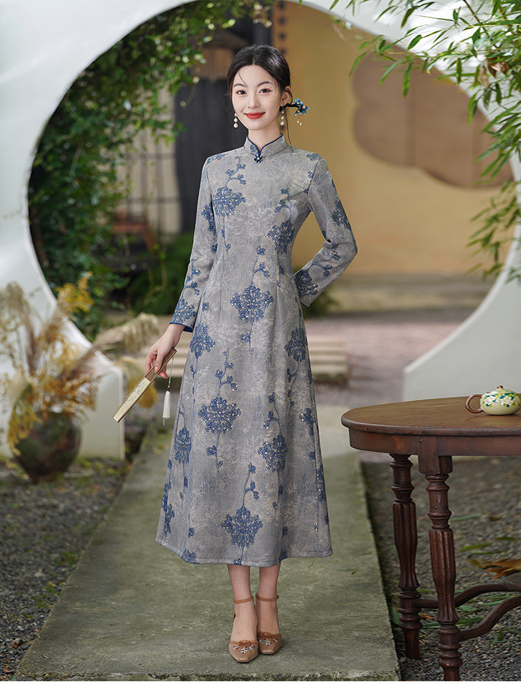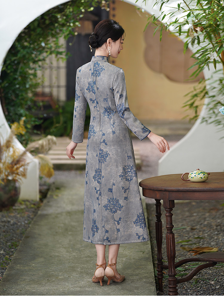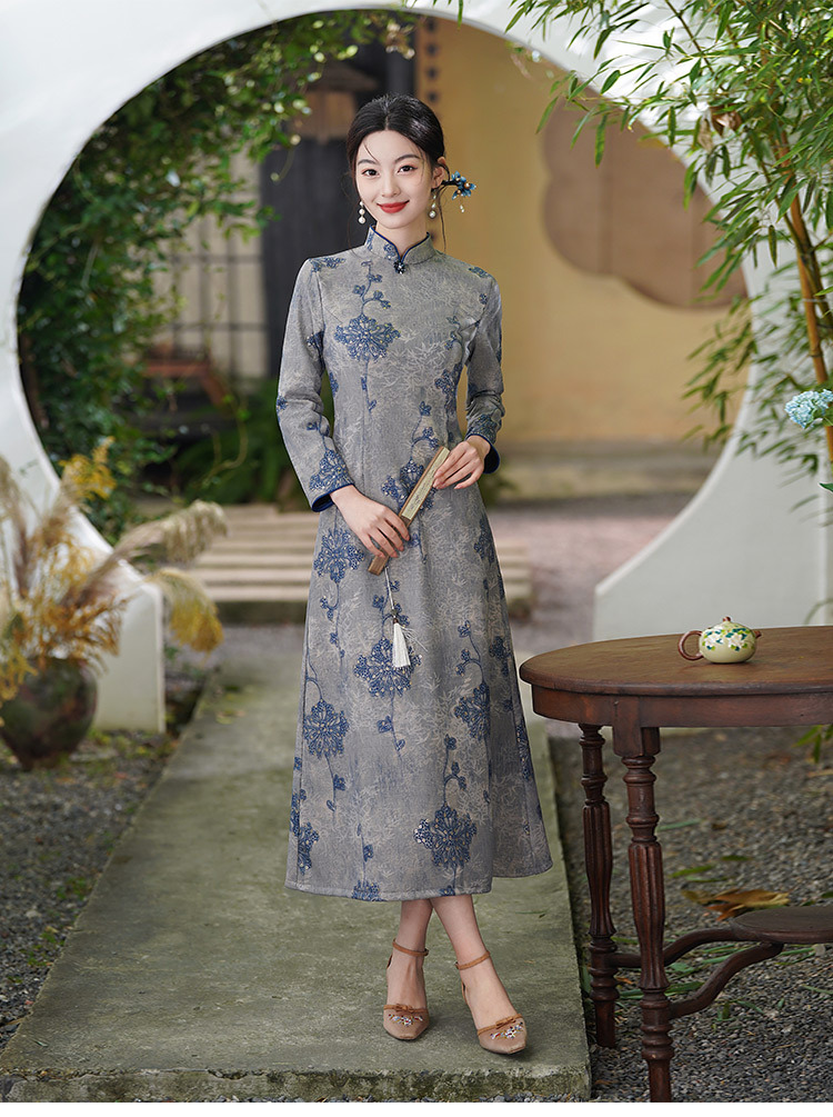SC22653红色国风新中式秋季长袖改良旗袍2025新款女复古妈妈连衣裙秋冬装