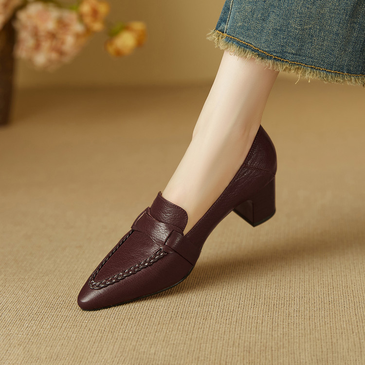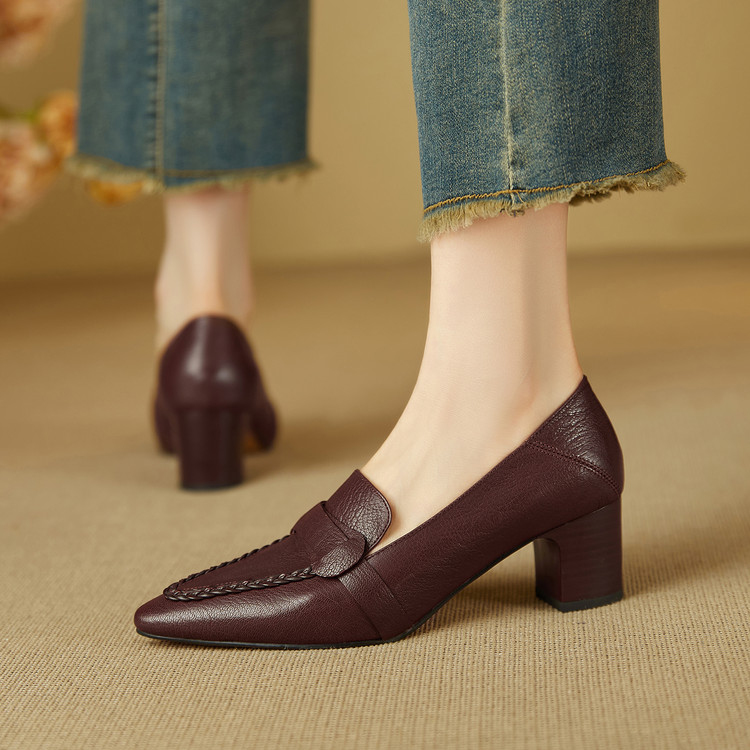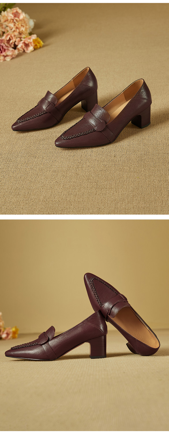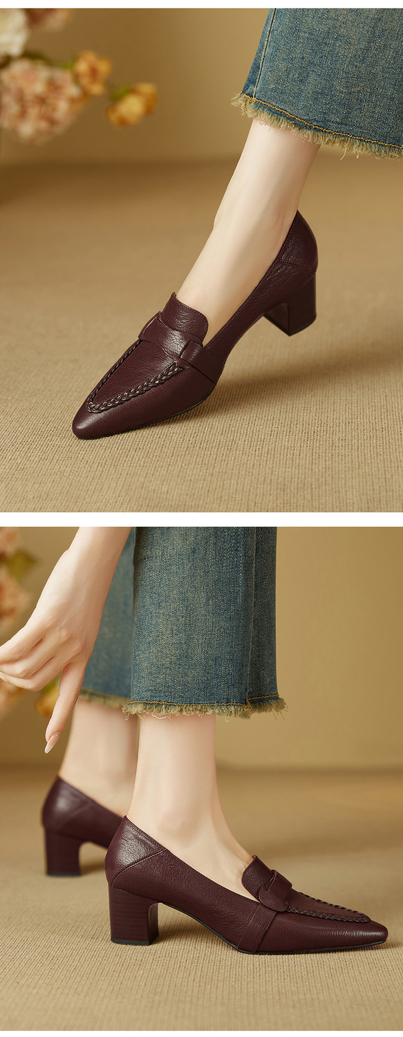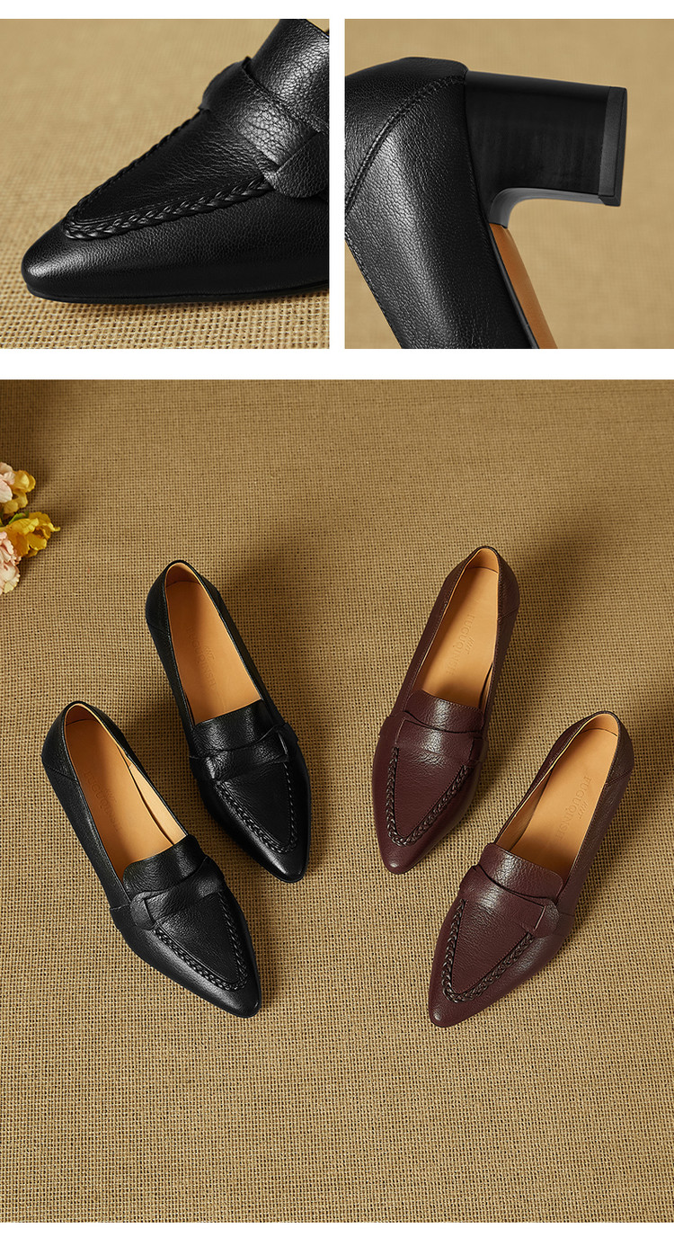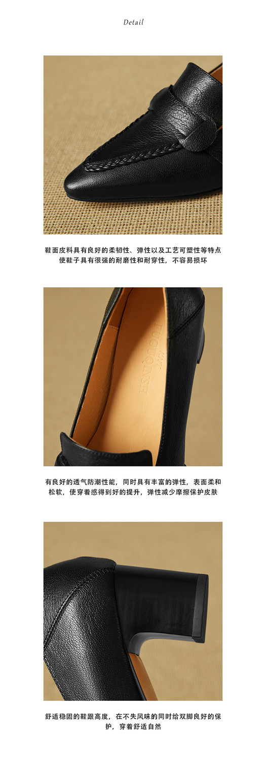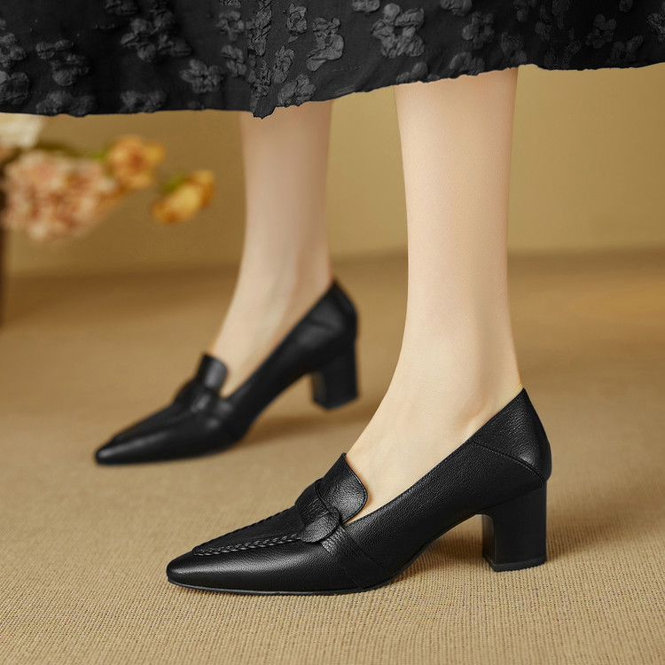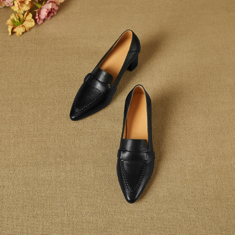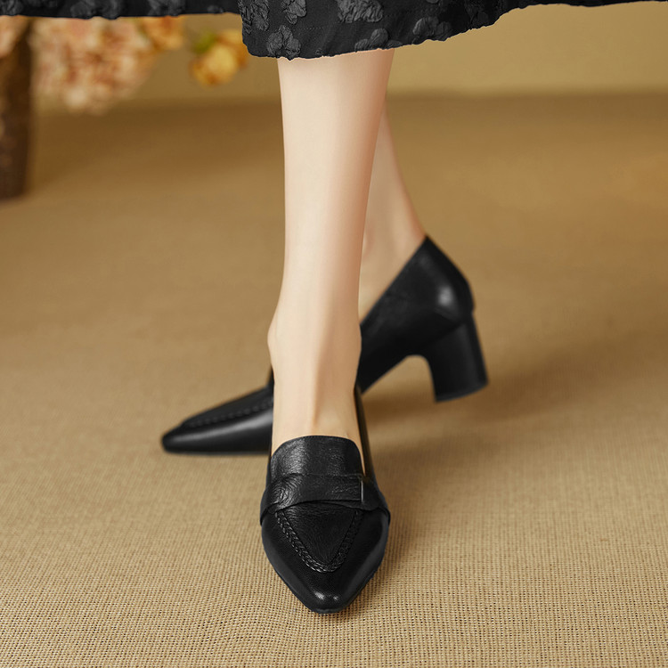 【预售5天】5.5cm复古简约粗跟尖头高跟鞋真皮浅口通勤职业女鞋KNTNX&KT1808