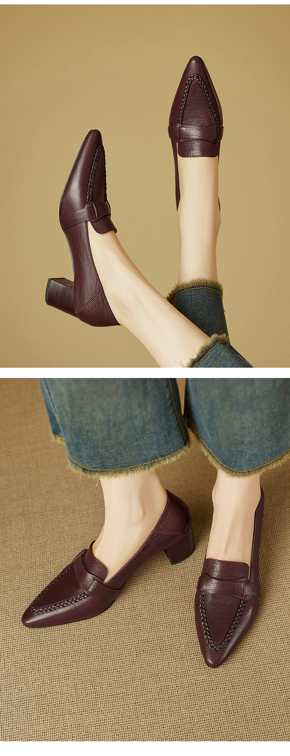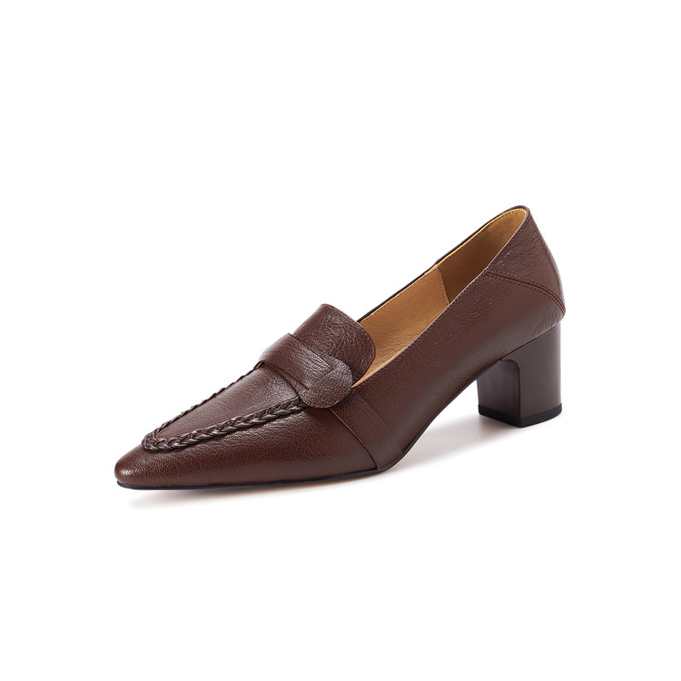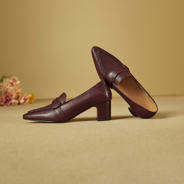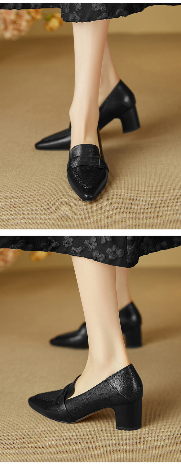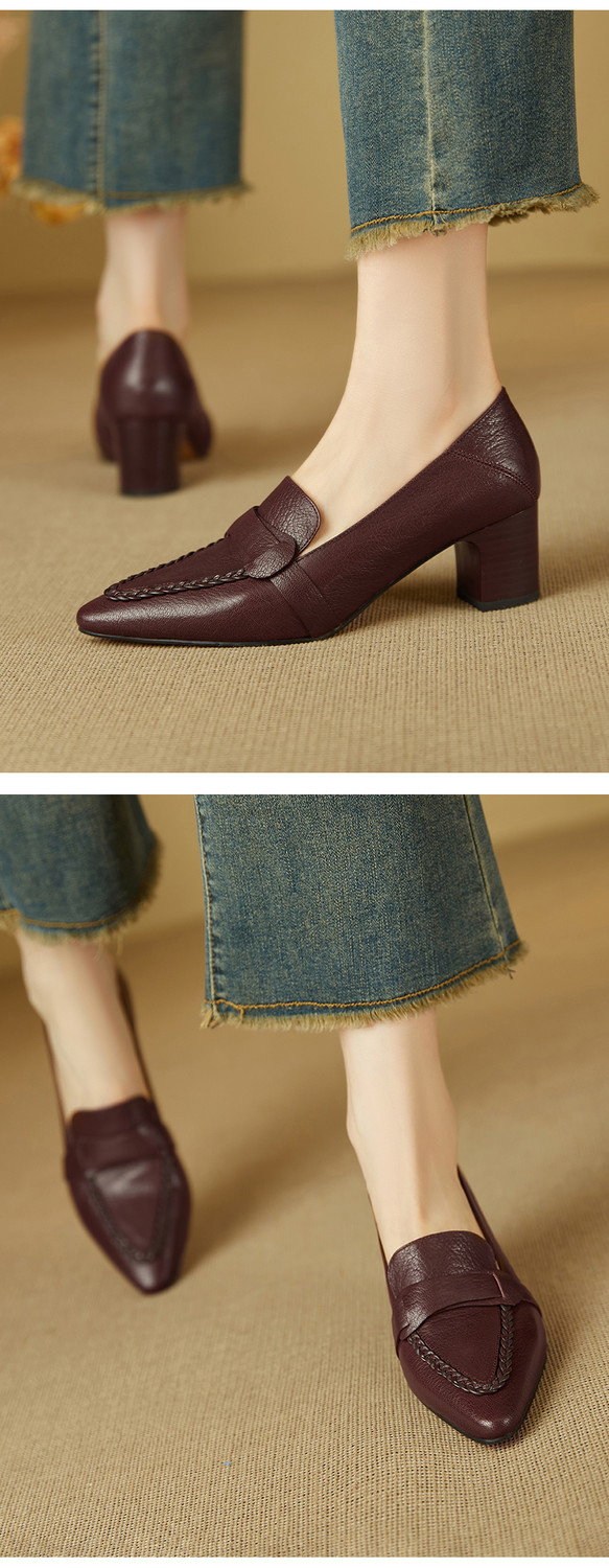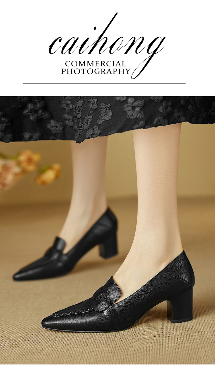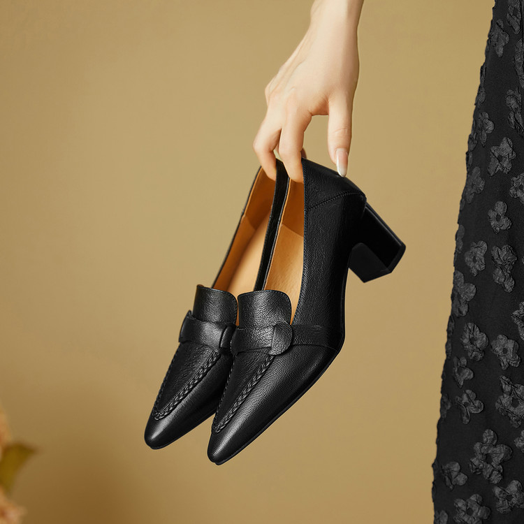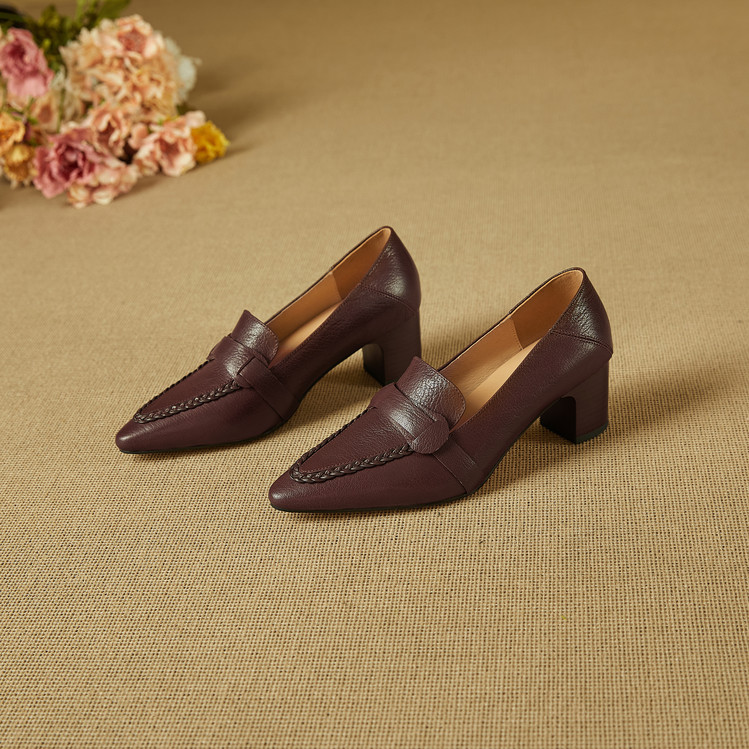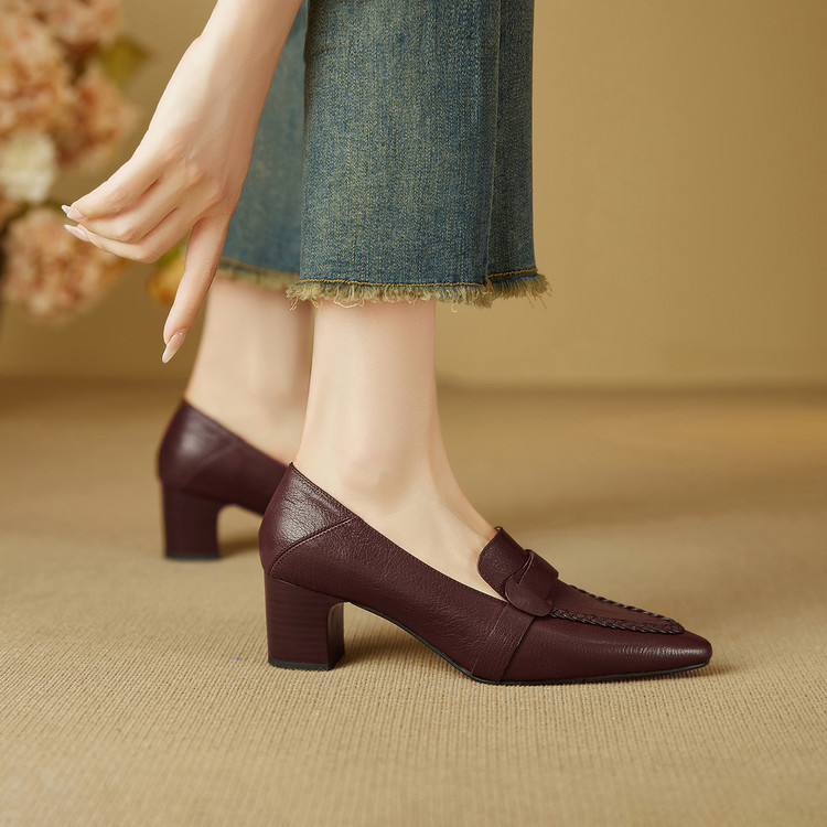 【预售5天】5.5cm复古简约粗跟尖头高跟鞋真皮浅口通勤职业女鞋KNTNX&KT1808
