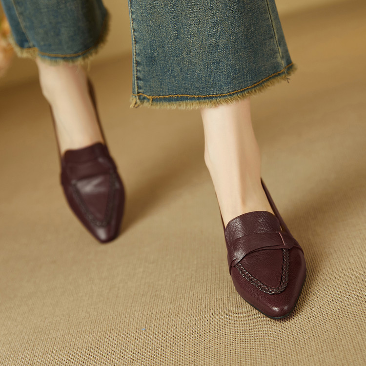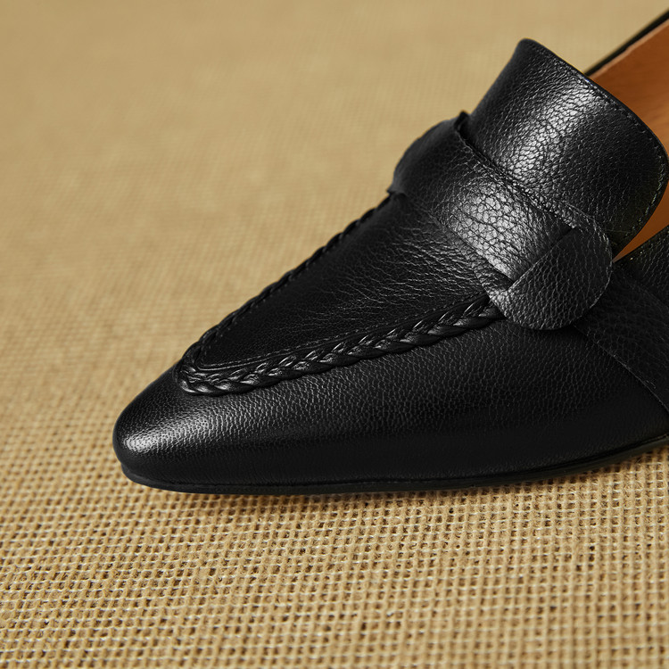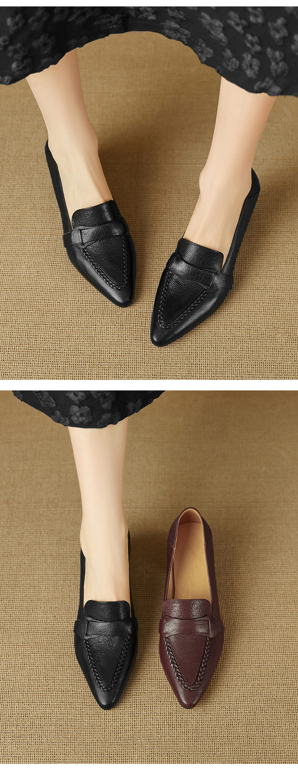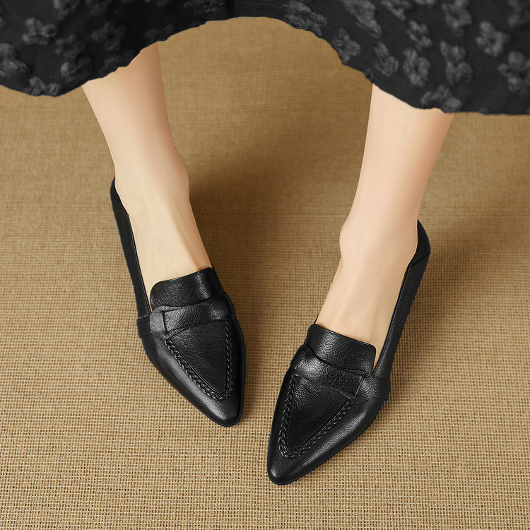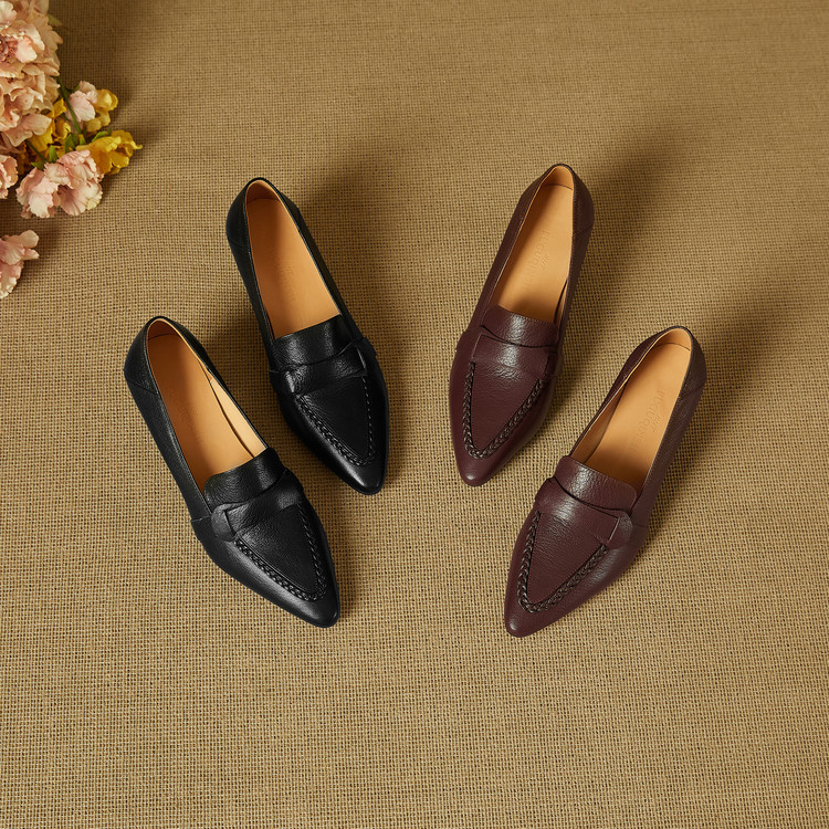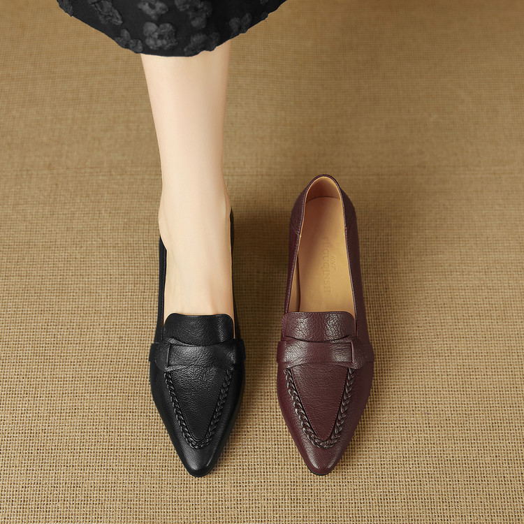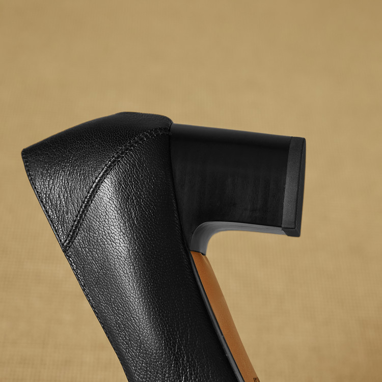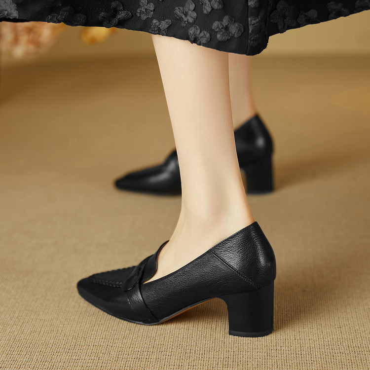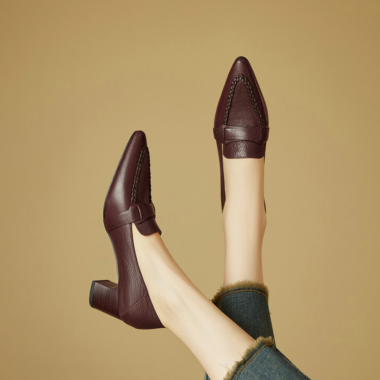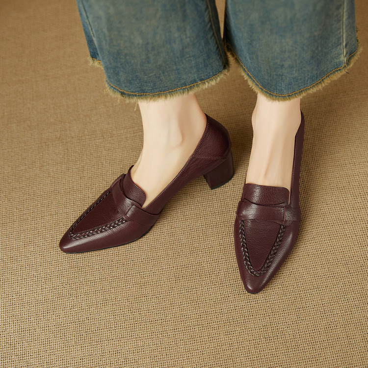 【预售5天】5.5cm复古简约粗跟尖头高跟鞋真皮浅口通勤职业女鞋KNTNX&KT1808